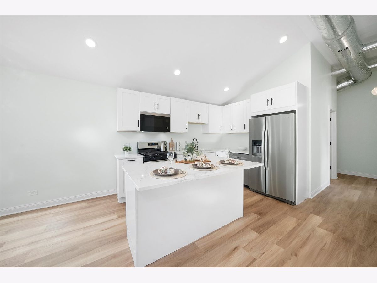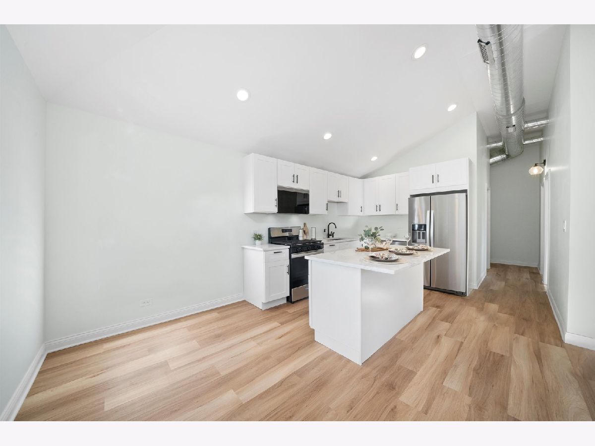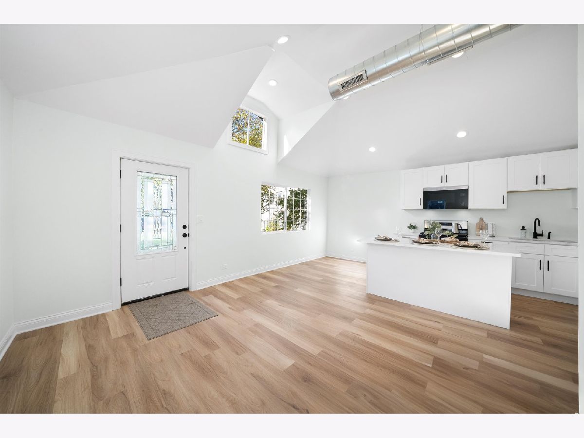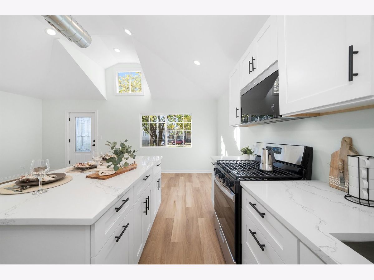 Come take a look at the cutest home on the block, located in the Galewood neighborhood of Chicago. This charming 2-bedroom, 1-bath home has been completely gutted and renovated, offering modern updates throughout. The open-concept layout on the first floor features vaulted ceilings, creating a spacious feel. The kitchen has been thoughtfully redesigned with white shaker cabinets, quartz countertops, and brand-new Whirlpool stainless steel appliances. Large center island for dining and entertainment. The two cozy bedrooms each come with their own closet. The large, modern bathroom features a stylish stand-up shower with contemporary finishes. A private laundry and utility closet is conveniently located towards the back of the home. The lovely back concrete patio is perfect for enjoying summer and fall evenings. Additionally, the large shed in the backyard offers extra storage and can easily be enclosed to create a 3-season room. Recent improvements include all-new electrical throughout the home, brand-new copper plumbing (including a new water heater), new subflooring with reinforced supports and floor joists, as well as new siding and new windows and a brand new AC. Located just a 5-minute walk from the Galewood Metra Station, this home is ideally situated for easy commuting. Perfect for modest homeowners, this cozy, move-in-ready home is ready for its new owners. Don't miss out-schedule your showing today!