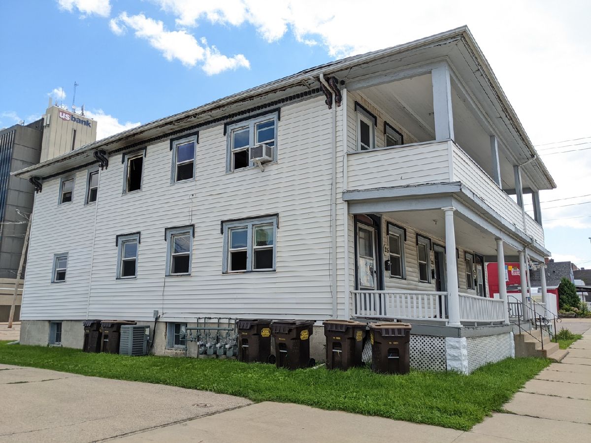 Opportunity abounds and great location. This 4 unit was updated in 2008 with separate water meters, new electric service and boxes, new furnaces, refinished floors, 3 units have new windows, baths and kitchens were done after. Each unit 2 bdrs. Laundry services set up in basement. Parking behind the building and on side of building along the alley. 215.5 had a fire and is fire damaged sold as is. All separate utilities. Current zoning is B2-1 business district and in the Enterprise Zone. Also situated in the Opportunity Zone which can defer or reduce tax gains. City can require a $30,000 bond in order to get a building permit. Agent owned.