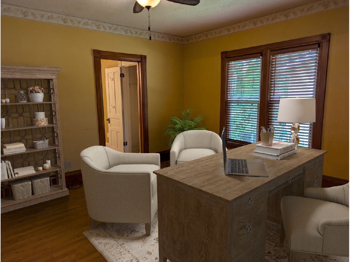 Double entryway brings you into living room or dining room, the floor plan is open for it's era. Main floor features bonus small office, dining room, living room,large office, bedroom, full bath, kitchen, butlers pantry closet with laundry, breezeway attaching oversized 24' x 24' garage with workshop. Upstairs features two walk in closets,bedroom 2 and master bedroom suite with sitting area and 2nd full bath. Large lot and great area!