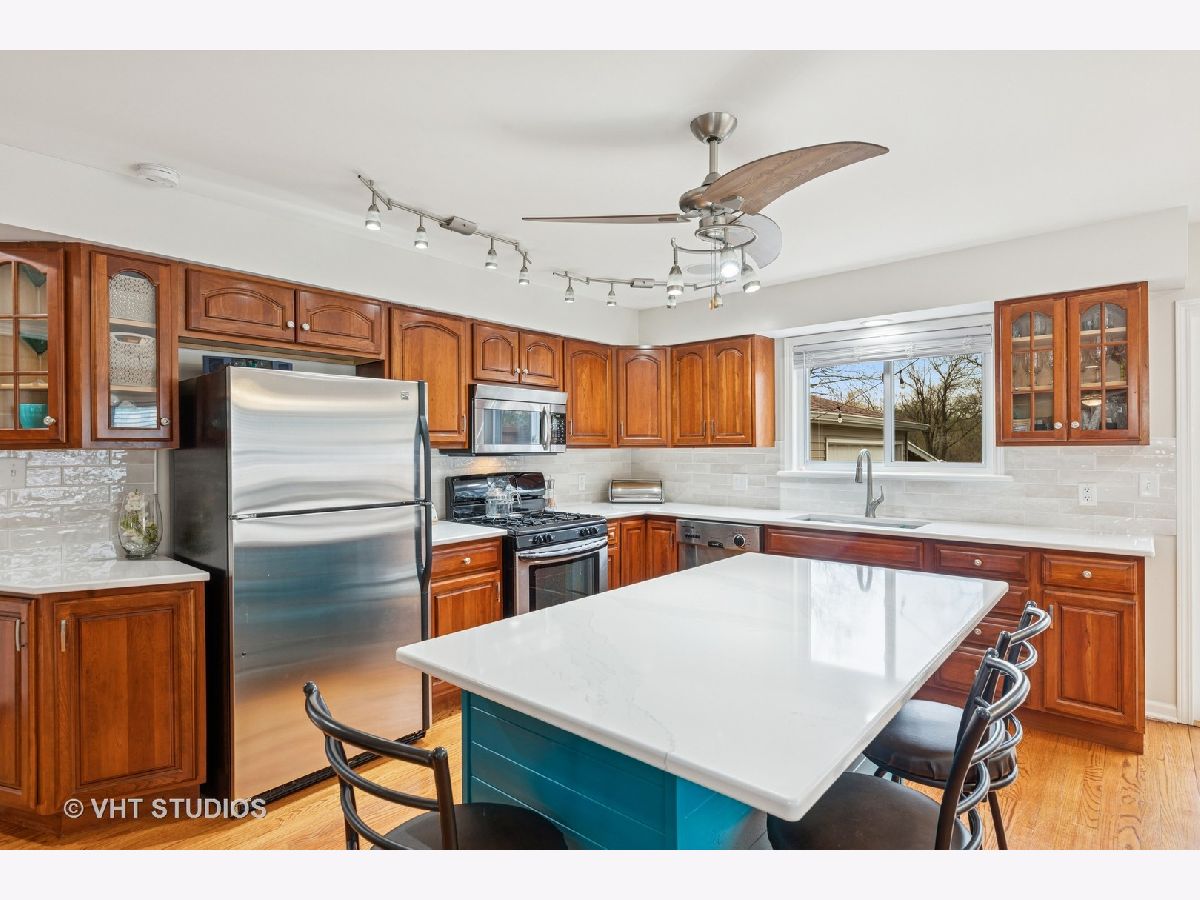 This beautifully maintained home has 3 bedrooms, 2.5 bathrooms and a generous 2,000 square feet of thoughtfully designed space. The main floor has gleaming hardwood floors that flow seamlessly throughout this open concept floor plan. Enter into the family room featuring a fireplace and ample space to entertain. On the main floor you will find the massive eat-in kitchen with stunning quartz countertops, stainless steel appliances and custom cabinets as well as a separate room for an office or den. Venture upstairs and you will find the primary bedroom which boasts an en-suite bathroom and a spacious walk-in closet. Two additional bedrooms and full bathroom with a soothing jetted tub. Laundry room conveniently located on the second floor. You will also discover a finished attic space, perfect for a home office, recreational area or additional storage. The full, unfinished basement offers a workshop as well as endless possibilities for extra storage, or additional living space. Situated on a large corner lot, this property provides ample outdoor space for relaxation and entertainment. You will find a wood fence on the deck and side yard providing the utmost privacy. Detached 1.5 car garage and attached custom carport. The home is in close proximity to Brownell Woods and has views of the scenic Forest preserve. This home is freshly painted throughout and is move-in ready, just waiting for your personal touch!