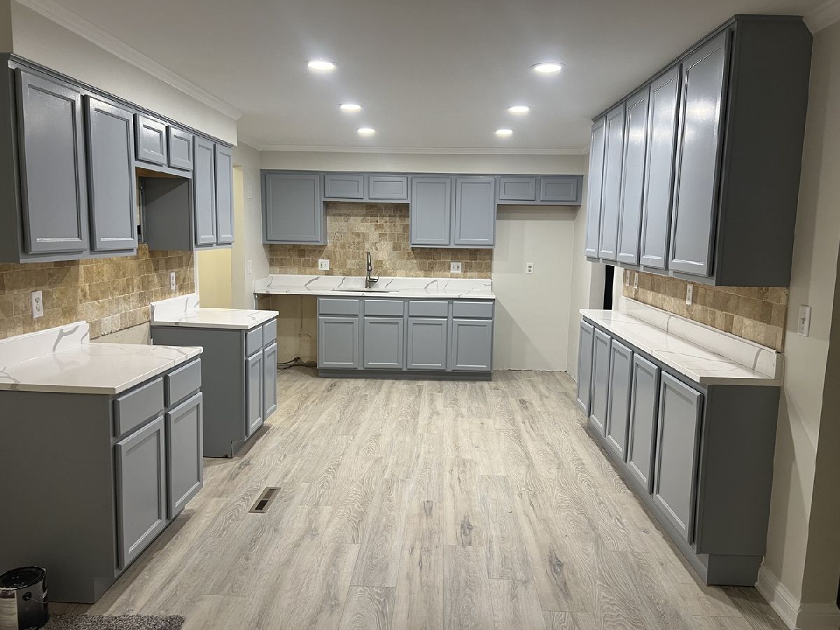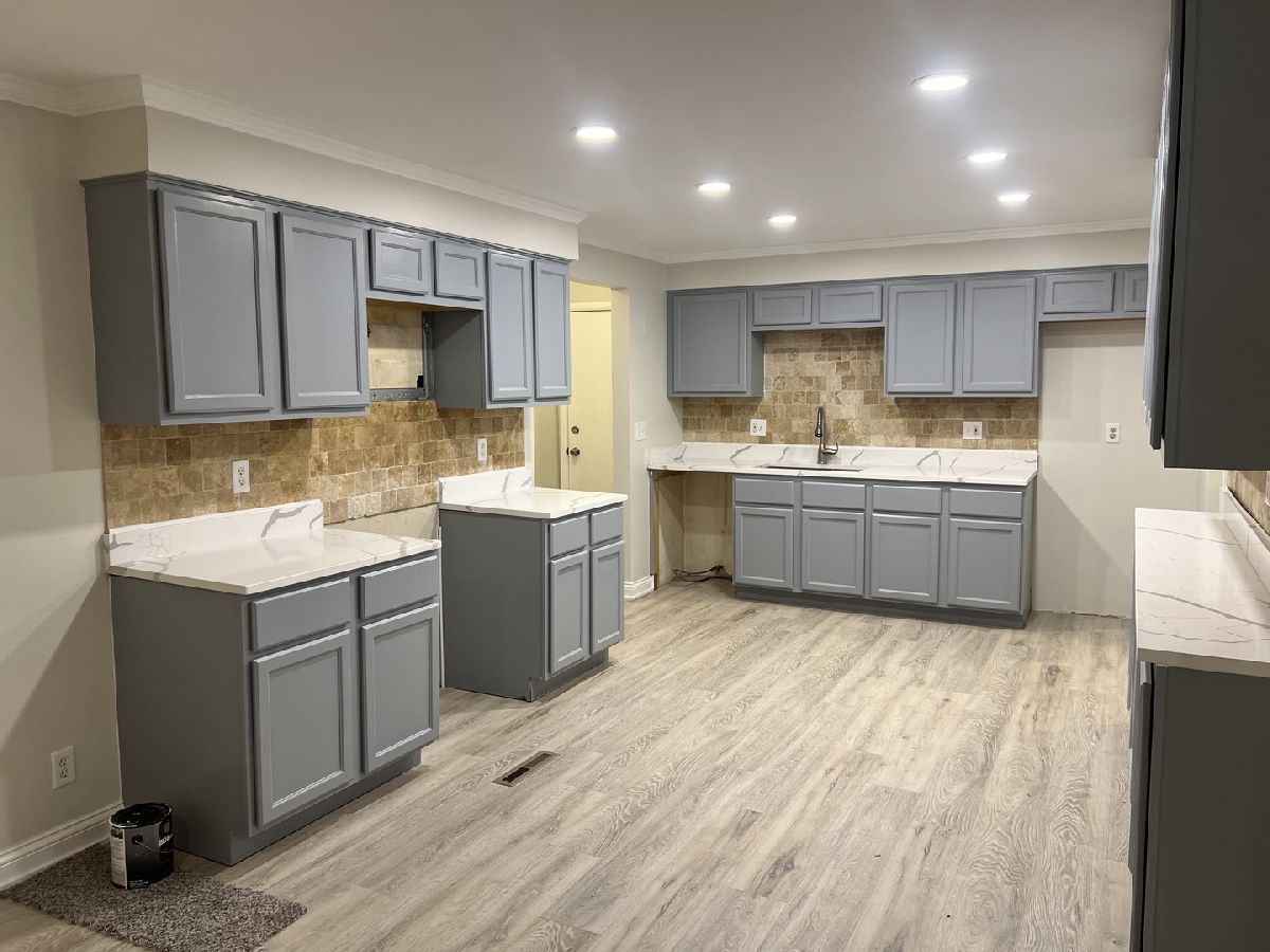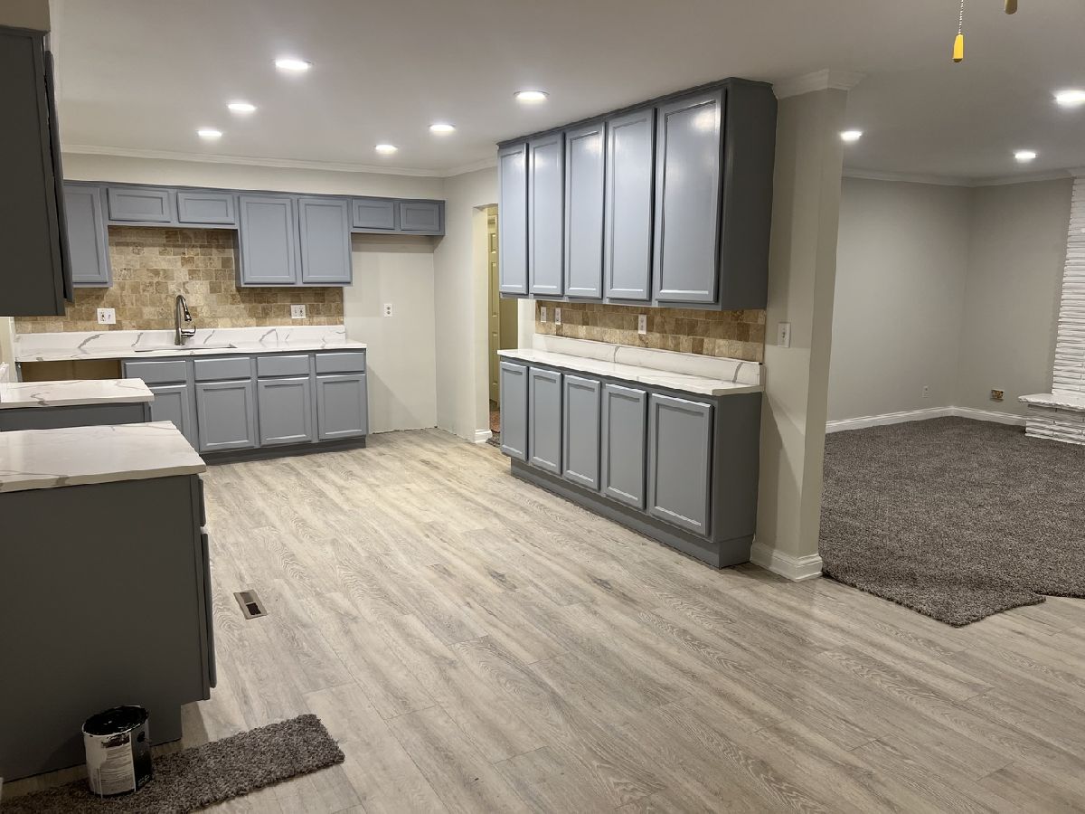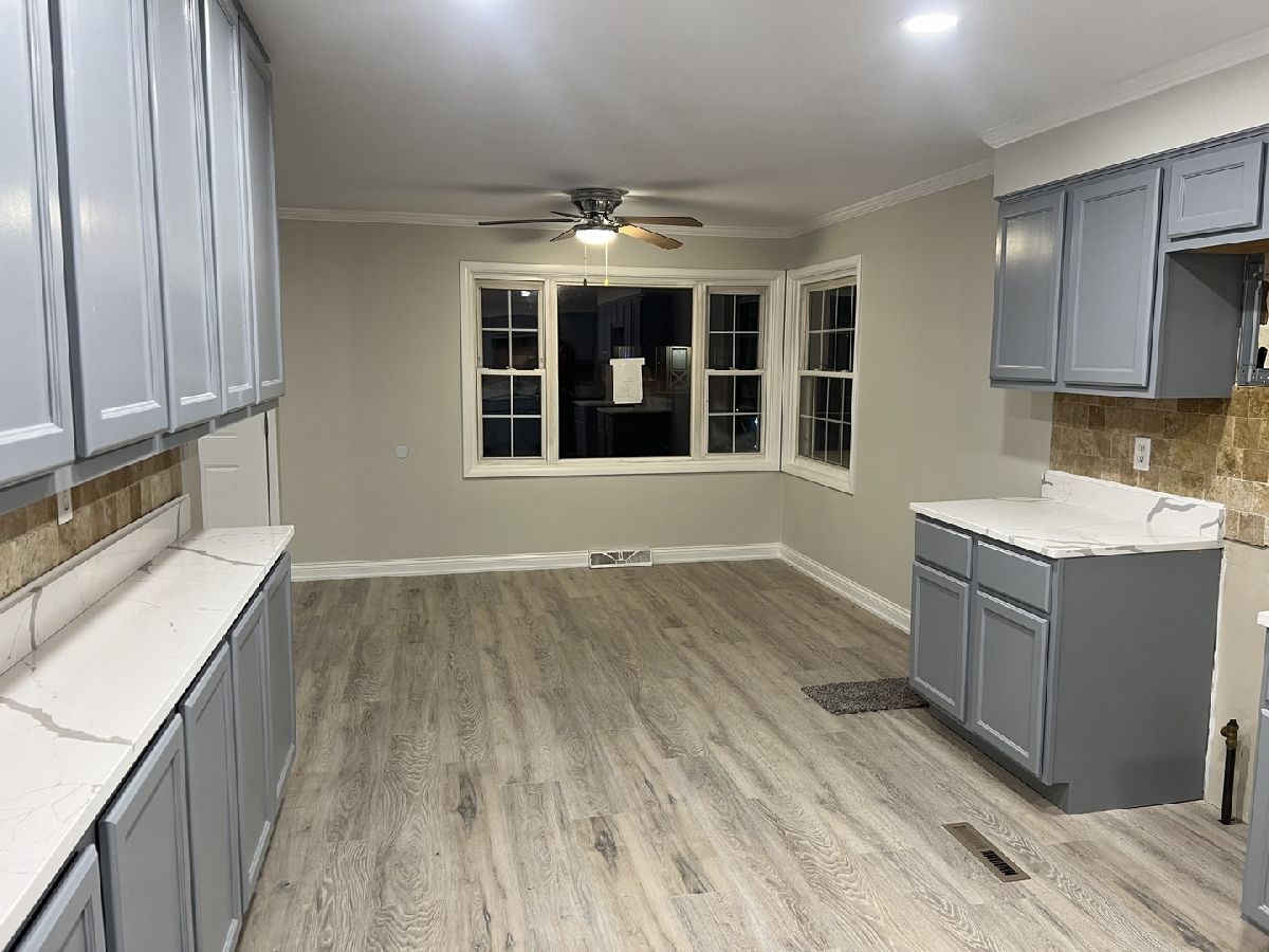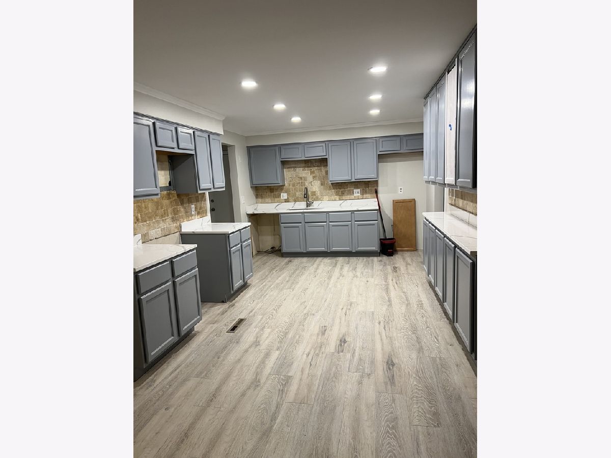 This brick 4 bedroom 3 full bath ranch home is an amazing opportunity and a must-see property. The home sits on a large lot (60'X120') in a nice quiet neighborhood with North Aurora Veterans Memorial Park right next door. The park is perfect for morning walks and has a playground for kids to play. The property is currently being rehabbed and nearly finished. It features 2 wood burning fireplaces, newer roof, and new siding and an attached garage. The master suite features his & her closets a large master bath with his and her sinks and a stand up shower. The main floor has new paint, laminate flooring, & new carpet throughout. The kitchen has new quartz counter tops and new energy efficient stainless steel LG appliances to be installed. The appliances include a French door refrigerator, stainless tub dishwasher, a 5 burner gas stove, & stainless steel microwave. The bones of this home are super solid and the spacious kitchen opens up to a cozy living room with a wood burning fireplace. The spacious eat in kitchen will please the most discriminating cook with abundant cabinet & counter top space, natural stone backsplash, and can lights. The basement features a large cozy family room with a wood burning fireplace, 1 large bedroom, laundry room, storage room, utility room and one full bath with stand up shower. The large (Sunroom) 3-season porch leads to an exterior deck and a spacious (60'X120') back yard. The property is minutes of from shopping, dinning, parks and the expressway. Realtor owned interest.