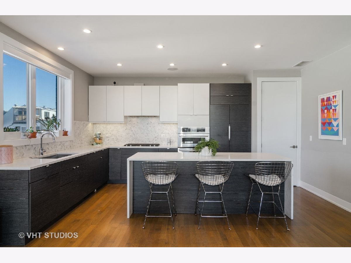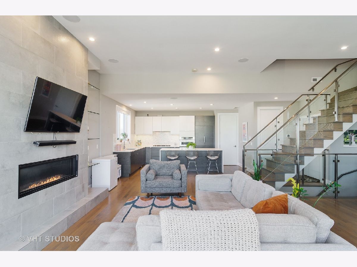 Stunning penthouse, duplex up condo walking distance from Holstein Park! This one of a kind, 2015 construction condo comes with all the bells and whistles. Three bedrooms and two full bathrooms on the main level, including an impressive master suite featuring a walk in closet with custom organizers and a spa like master bath boasting double vanities, heated floors and steam shower. Head to the second floor for the light filled living/dining space which features a floor to ceiling fireplace, open shelving and space for a large dining table. The modern kitchen offers Italian flat panel cabinets with an integrated refrigerator, Jenn Air appliances, Grohe fixtures, a large island and pantry. Direct access to the 1,000 sq ft rooftop deck with a wet bar, TV/AV setup, and outdoor fireplace make this condo the perfect place to entertain. In unit washer/dryer. Two parking spots, one garage and one exterior and additional storage on ground level. Close to the CTA Blue Line, Pulaski School and the highway. 100% owner occupied building. Nothing to do but move in!