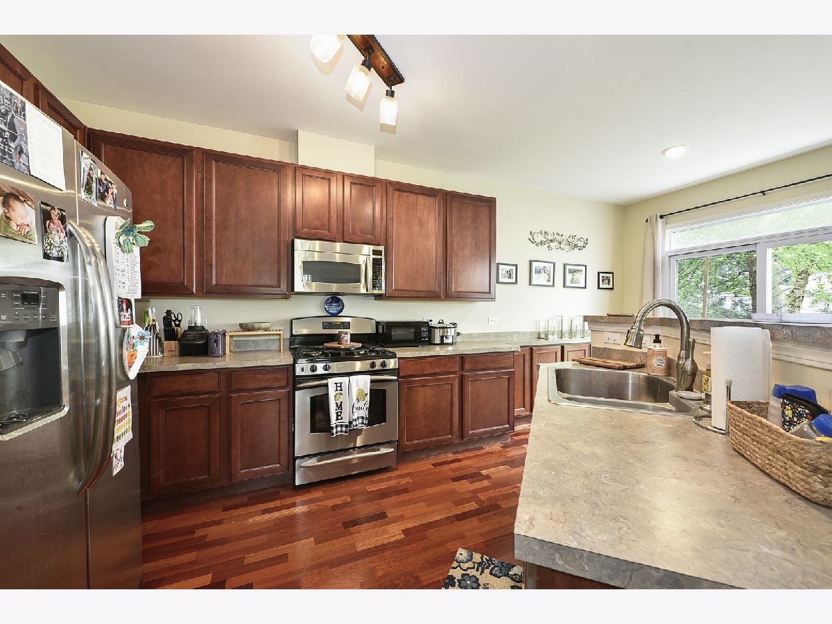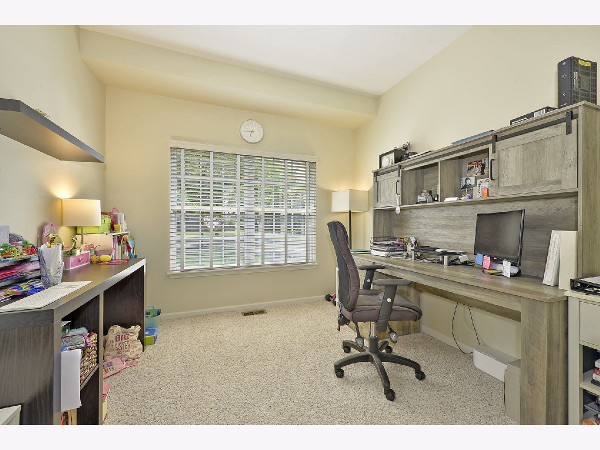 This magnificent two-story end unit townhome with a private side entrance is what you have been waiting for!! Just under 2000 sq ft! 9 ft. ceilings and freshly painted with beautiful white trim finishes throughout! Large foyer with tray ceiling & a perfectly sized 1st-floor office/den with french doors. Large living/family room with gas fireplace and adjoining dining room area. Great sized eat-in kitchen with counter height breakfast bar, engineered hardwood flooring, cherry cabinets and all stainless steel appliances. Eating area with sliders to the outdoor patio and professionally landscaped open area. The second floor features an enormous primary suite with large walk-in closet space, tray ceiling, and deluxe bath with soaker tub, dual sinks, and separate shower. The additional 2 bedrooms are good sized and share a hall bath. Laundry room is also upstairs. Attached two-car garage offers great storage and a huge asphalt driveway. Recent improvements include...Fresh paint (walls, trim, stair railings, fireplace and mantel), LED Can lighting, new furnace (2024), new WH (2023)and new driveway (2024) Award-winning Huntley school district 158! Such a great location! Close to the new Northwestern Hospital campus & Fitness Center, Parks, Dog Park & Walking Trails! Minutes to Shopping, Dining & Transportation! Guest parking across the street from home. A truly spectacular Townhome!! Seller will need possession until they find a house. May be as late as mid August or sooner!