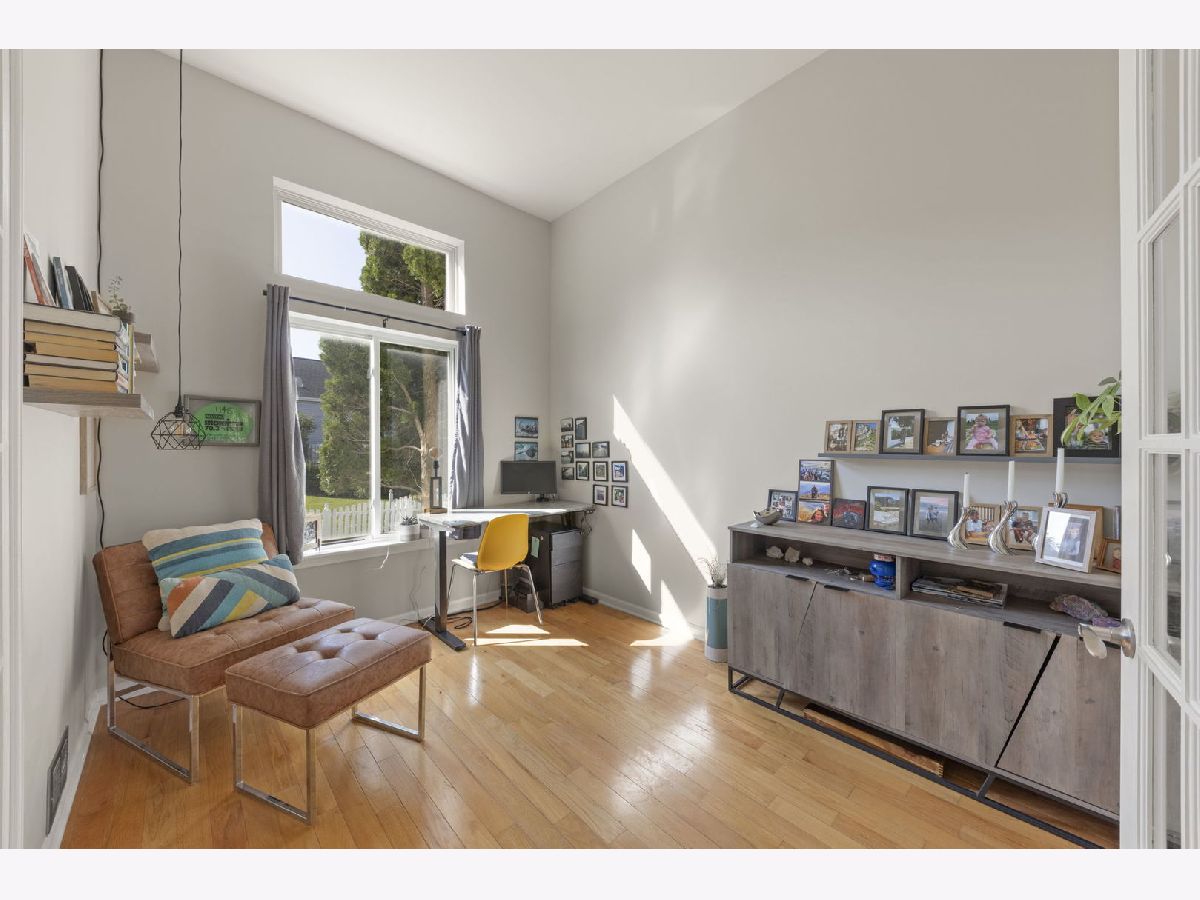 Conveniently-located contemporary two-story with 4 bedrooms, 2.5 baths, and a separate first-floor office. This beautiful property also features a spacious main-floor, multi-purpose bonus room that can be used as a guest bedroom, a craft or art room, a den, or even a second office! Renovations/updates completed between 2017 and 2024 include: roof, HVAC, kitchen backsplash, Kitchen-Aid dishwasher and stove, washer, eye-catching bathroom sinks and hardware, sump pump with electric backup, luxury vinyl tile flooring and lots of recessed lighting in finished basement with lined storage crawl, exterior bricks stained, and landscaping refreshed. Very recent updates are: radiator fan replacement, and renewal of a 1-year VIP contract for all heating and cooling maintenance. This home also features: an expansive Master Suite with vaulted ceiling, whirlpool tub, separate shower, double bowl vanity, lots of natural light, and a huge walk-in closet; an eat-in kitchen with porcelain tile flooring, granite countertops, and stainless steel Kitchen Aid appliances; breathtaking LR and DR tall windows with custom drapery staying; hardwood flooring throughout most of the main floor; and a prime location close to shopping, restaurants, entertainment, train, and highways. Although this property has many amenities, it is being sold AS IS.