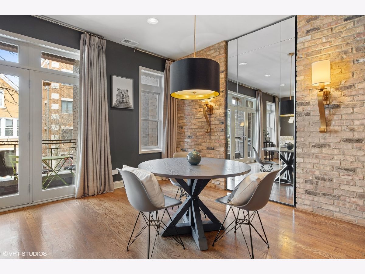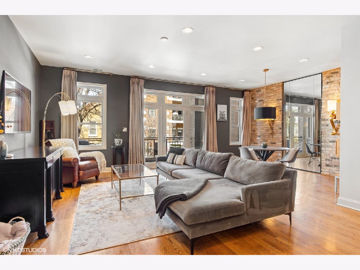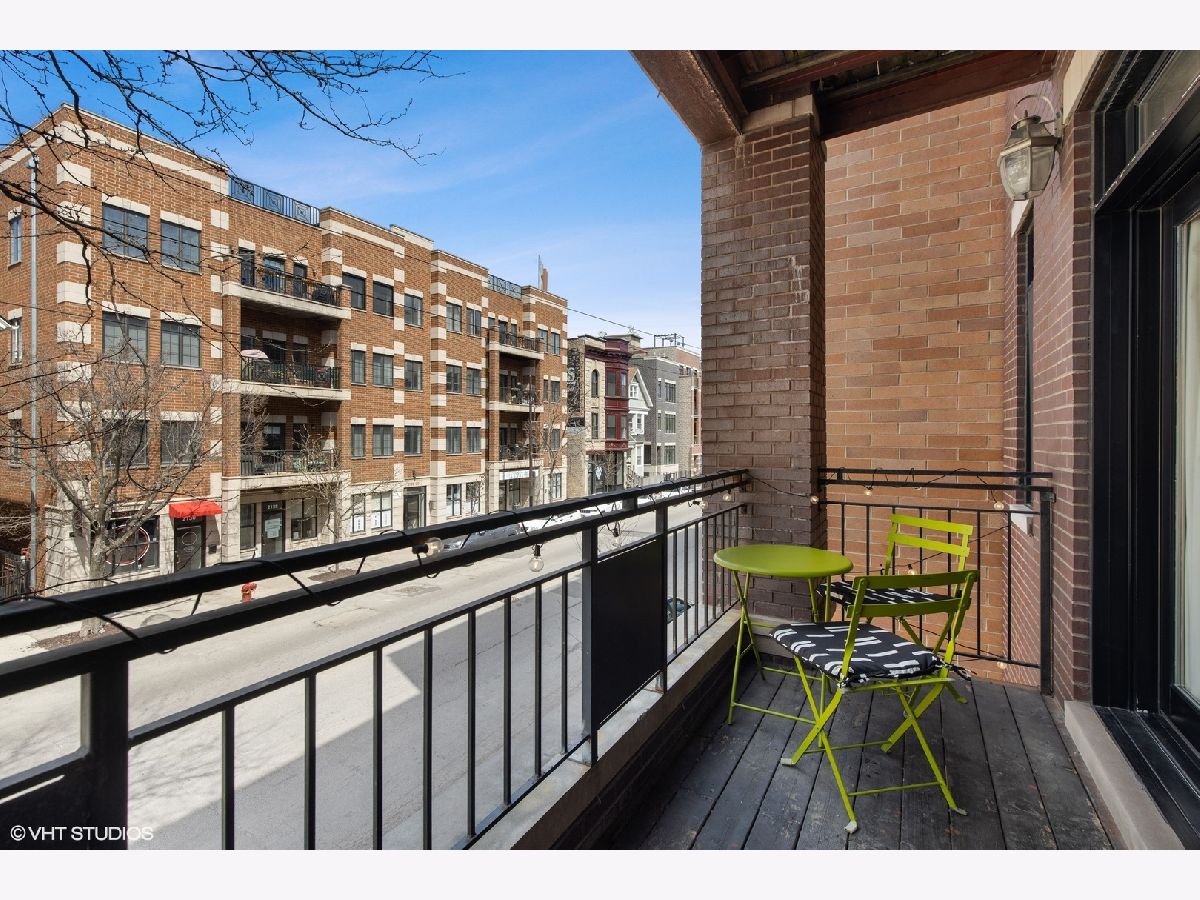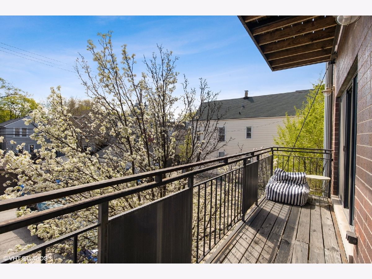 Multiple offers received; Highest and best due by 6pm on Sunday, 4/25. This spacious and bright unit features a modern floor plan with custom finishes and fixtures throughout. The kitchen boasts Italian cabinetry with soft-close drawers and organizers, black granite counters, tile flooring and an over-sized breakfast bar. Along the exposed brick wall is a floor length mirror and designer sconces with ample space for a dining table. The airy living room has high ceilings and floor-to-ceiling windows that lead out to a large terrace - the perfect space to entertain or enjoy a relaxing evening. A spacious primary bedroom boasts a professionally organized walk-in closet and ensuite spa-like bath with a marble vessel sink, whirlpool tub and separate shower. The second bedroom features custom built-ins and ample closet space; both bedrooms have access to a large back terrace that overlooks a small garden. The 2nd bath has a walk-in shower and ceramic vessel sink while the laundry closet provides enough space for a full-size washer/dryer and additional storage; 2 tandem exterior parking spaces and 2 storage closets included. Just a short walk to Hamlin Park and the shops and restaurants on Roscoe St such as Same Same, Dip & Sip, Cuba 312, and more; Right off the Belmont bus and easy access to the brown/red/purple lines. Do not miss out...schedule your showing today!