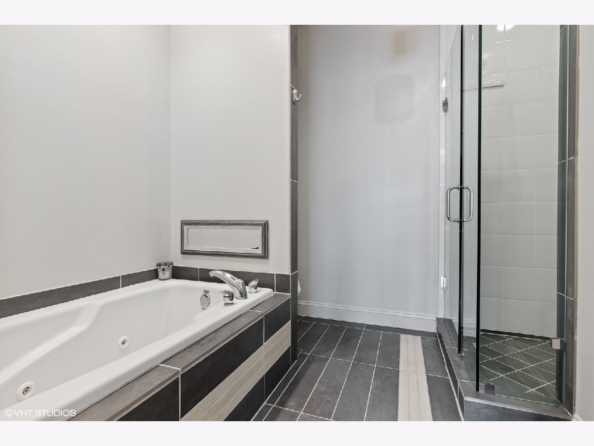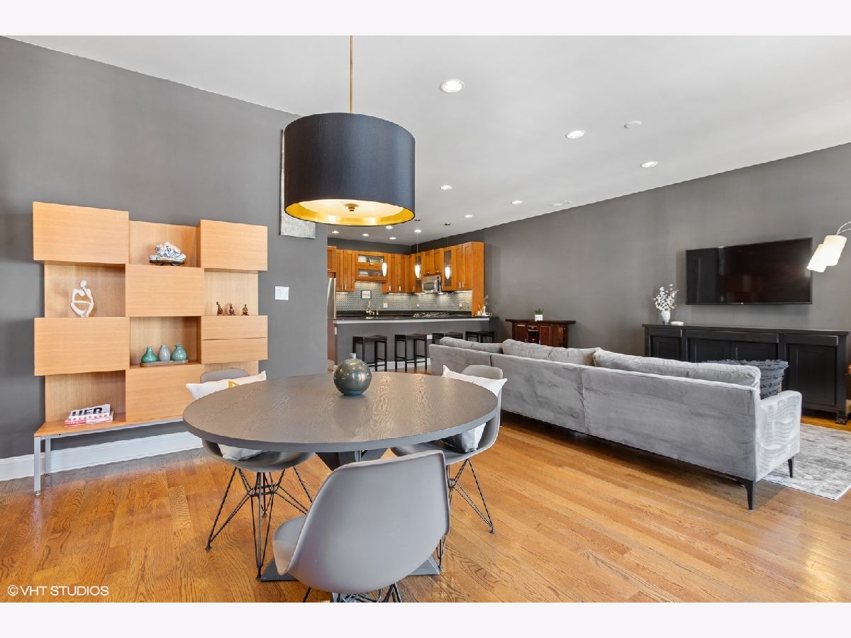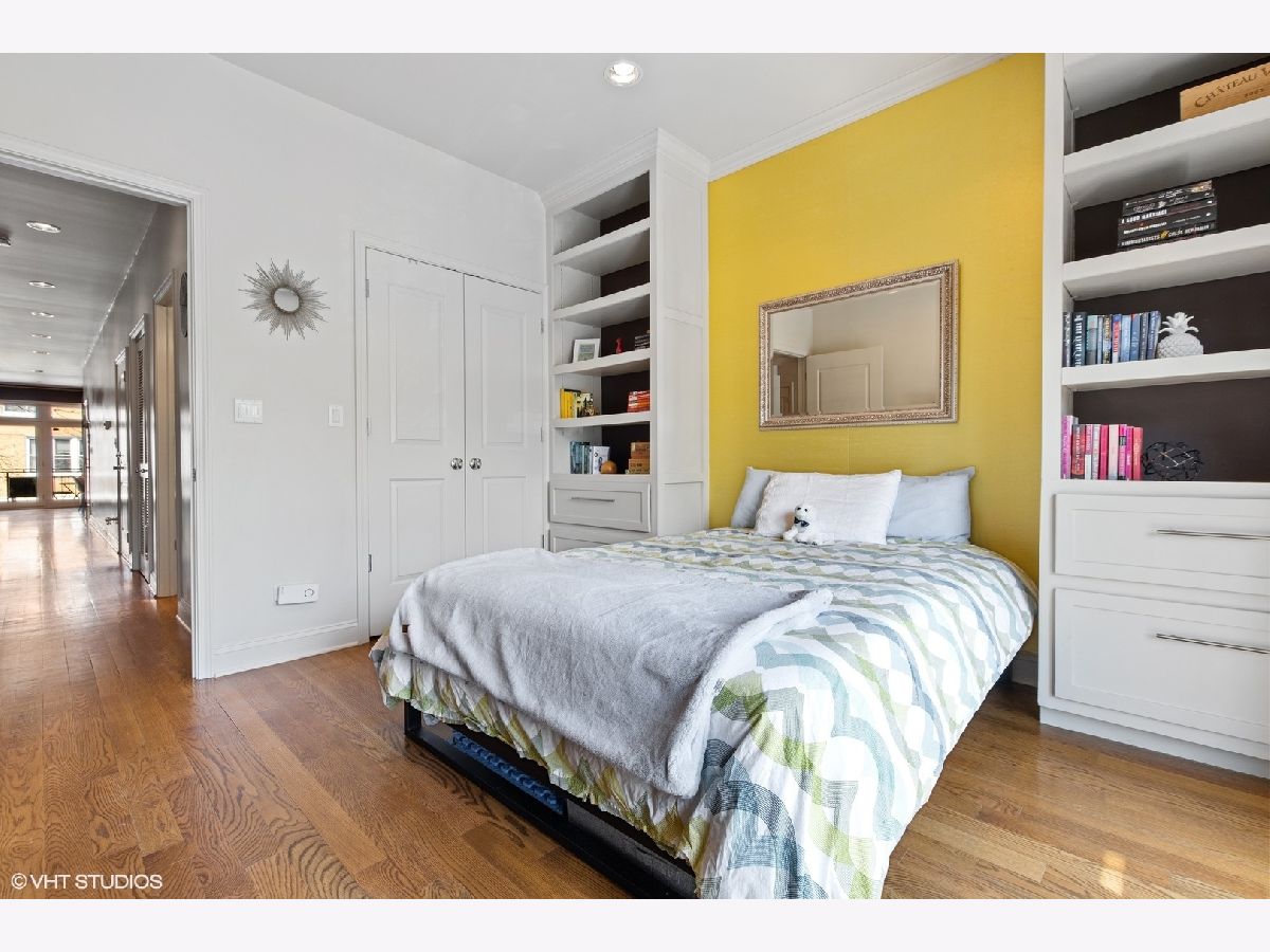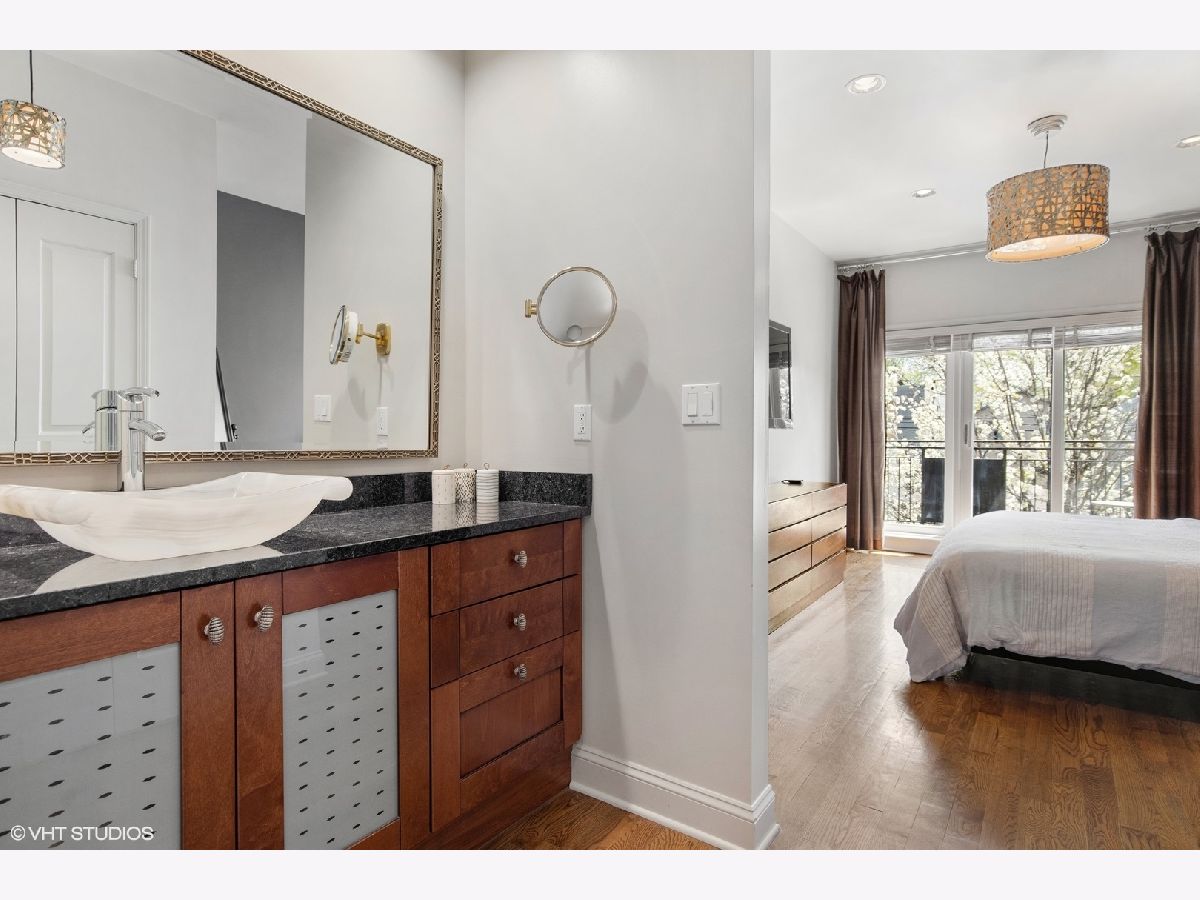 Multiple offers received; Highest and best due by 6pm on Sunday, 4/25. This spacious and bright unit features a modern floor plan with custom finishes and fixtures throughout. The kitchen boasts Italian cabinetry with soft-close drawers and organizers, black granite counters, tile flooring and an over-sized breakfast bar. Along the exposed brick wall is a floor length mirror and designer sconces with ample space for a dining table. The airy living room has high ceilings and floor-to-ceiling windows that lead out to a large terrace - the perfect space to entertain or enjoy a relaxing evening. A spacious primary bedroom boasts a professionally organized walk-in closet and ensuite spa-like bath with a marble vessel sink, whirlpool tub and separate shower. The second bedroom features custom built-ins and ample closet space; both bedrooms have access to a large back terrace that overlooks a small garden. The 2nd bath has a walk-in shower and ceramic vessel sink while the laundry closet provides enough space for a full-size washer/dryer and additional storage; 2 tandem exterior parking spaces and 2 storage closets included. Just a short walk to Hamlin Park and the shops and restaurants on Roscoe St such as Same Same, Dip & Sip, Cuba 312, and more; Right off the Belmont bus and easy access to the brown/red/purple lines. Do not miss out...schedule your showing today!