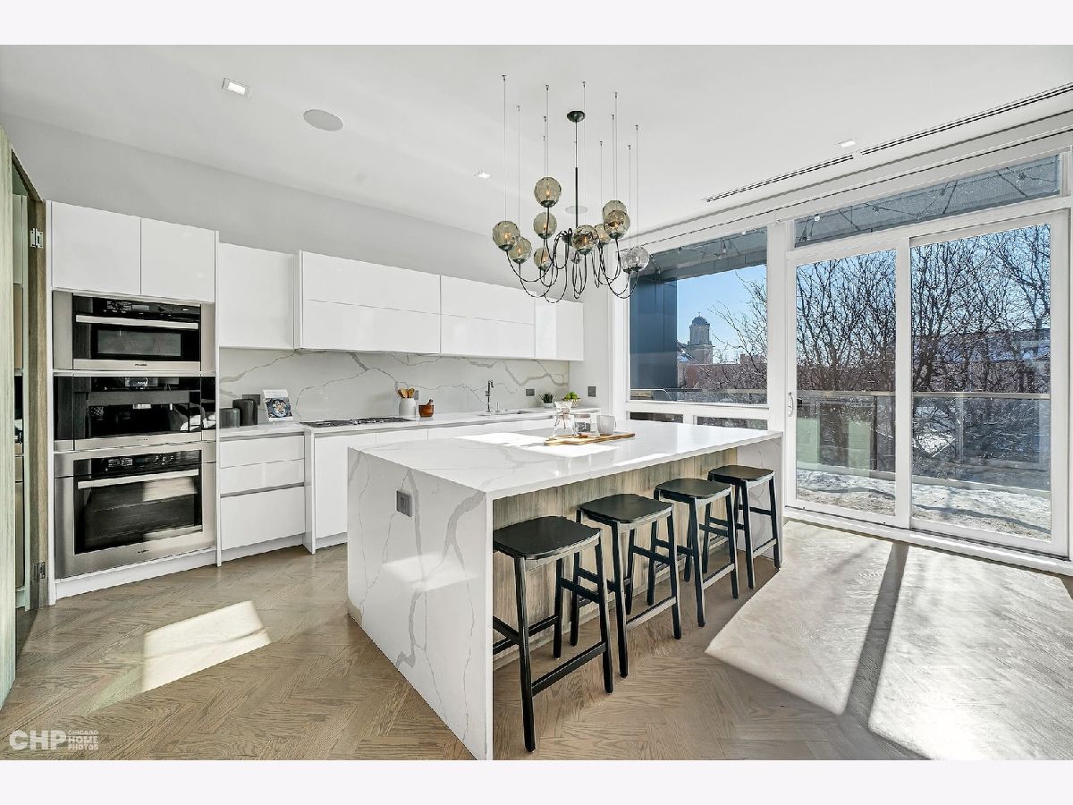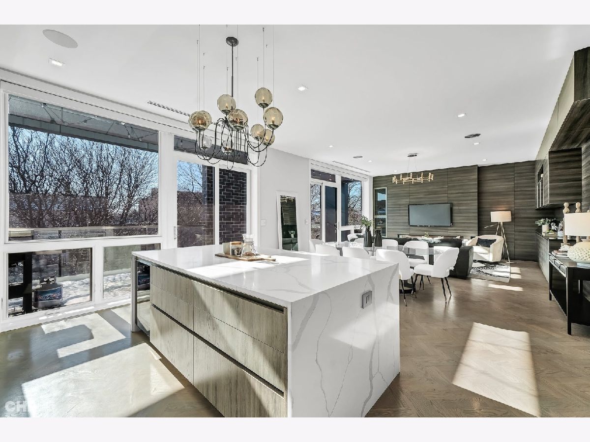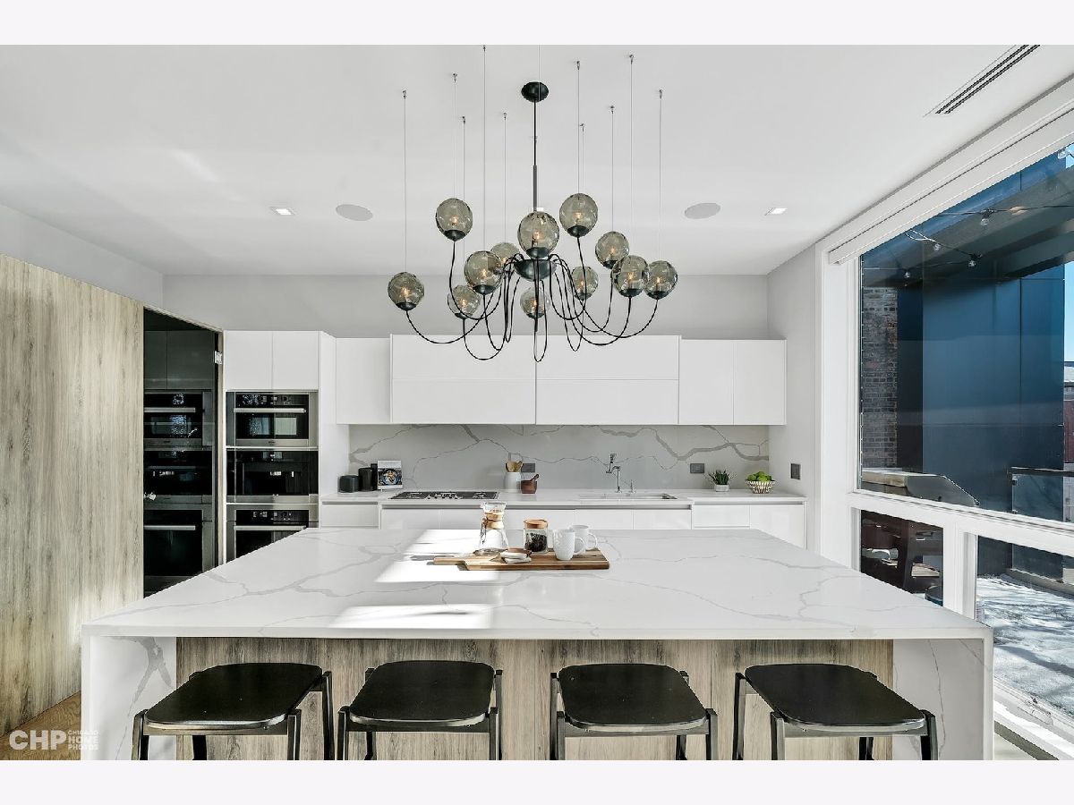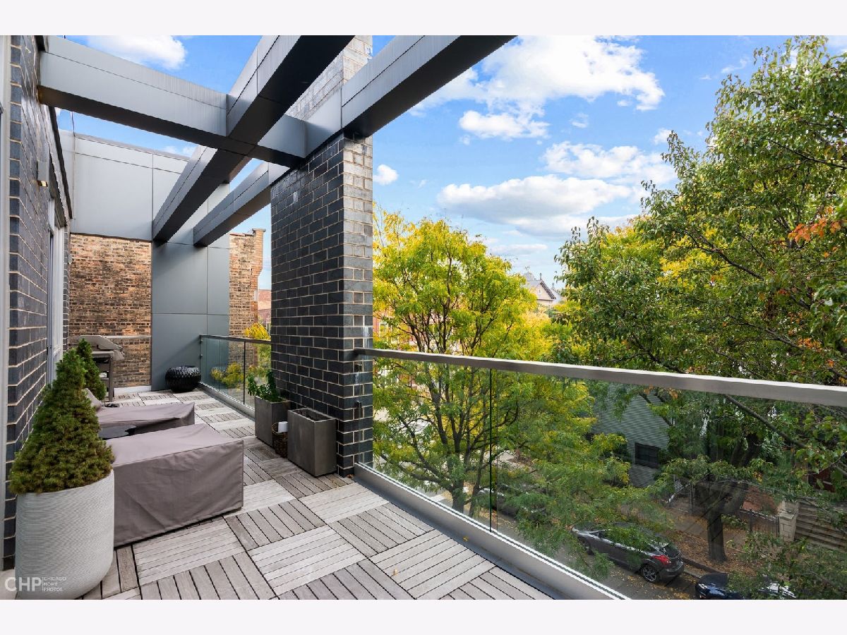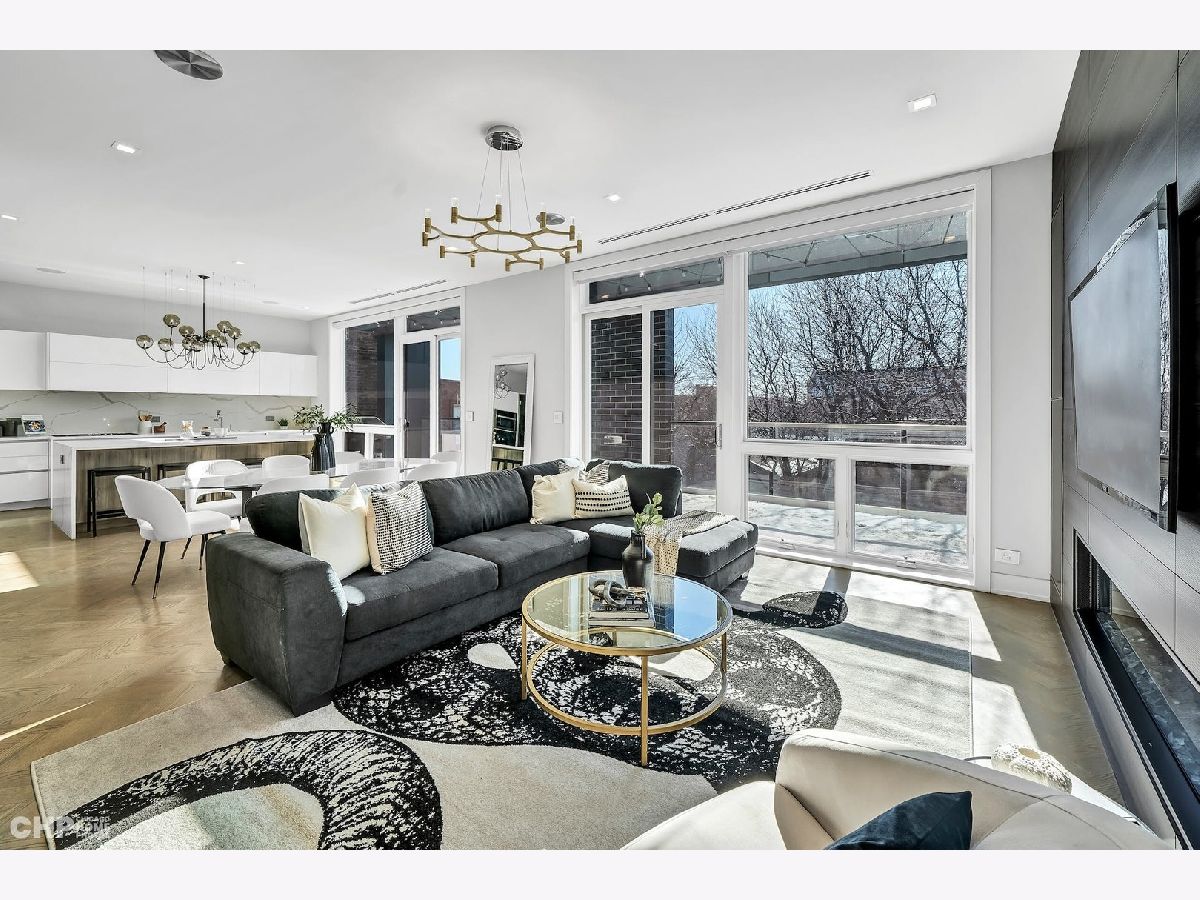 Luxury in Bucktown at 2136 Lyndale's Penthouse boasting a private roof deck accessible from a statement - all glass- staircase. Exceptional construction, thoughtfulness & attention to detail is evident the moment you approach the building. The Property is two lots combined to create an extra wide floor plan with attention to detail one doesn't see every day. You'll appreciate serene entertainment due to the brick on block construction + the commercial grade windows & doors. The home has windows for days - light pours in the entire front, south facing tree-lined street. Not only does 2136 Lyndale enjoy superior craftsmanship, it's dripping in luxurious details, finishes and selections. The pent house boasts: chevron hardwood floors stained in a greige hue, paired with chocolate paneled walls and built-ins. Beautiful chandeliers, like jewelry, adorn the ceilings, motorized shades and draperies cover the windows. Panel-front Miele appliances complete with a convection microwave, full size oven, built-in coffee maker fully vented hood to the exterior and a wine fridge in the kitchen are sure to please the chef of the home. The home features 3 well sized beds + 2 baths, spanning 40' across, affording equally flexible living & dining spaces. The Primary bedroom has two closets, a balcony, bed area large enough King Bed plus a sitting area. The primary bath is a stunner - heated floors, soaking tub, vintage mirror, and split vanities. A 2 car PRIVATE garage is included with the home. Recent building improvements include: all the window flashing changed to steel, spot tuck-pointed, and waterproof sealed brick for 10 years in 2020. All owner occupied - no restrictions. Taxes: $17,087.69, Assessments: $380, Reserves: $6,100. No specials.