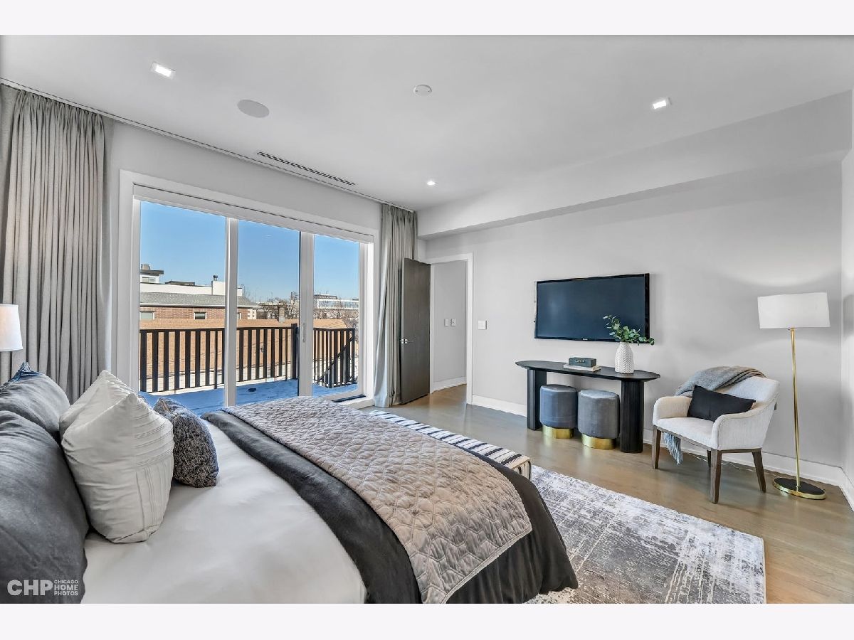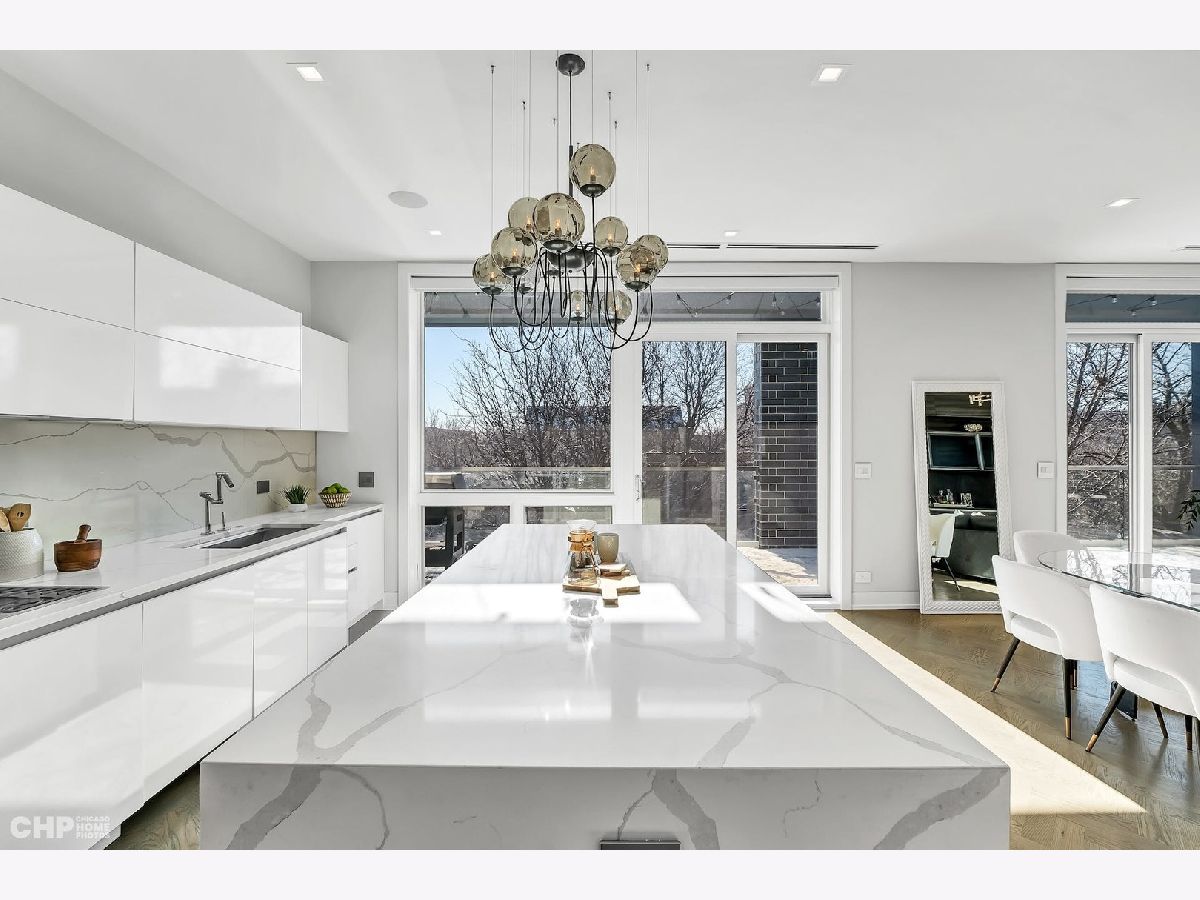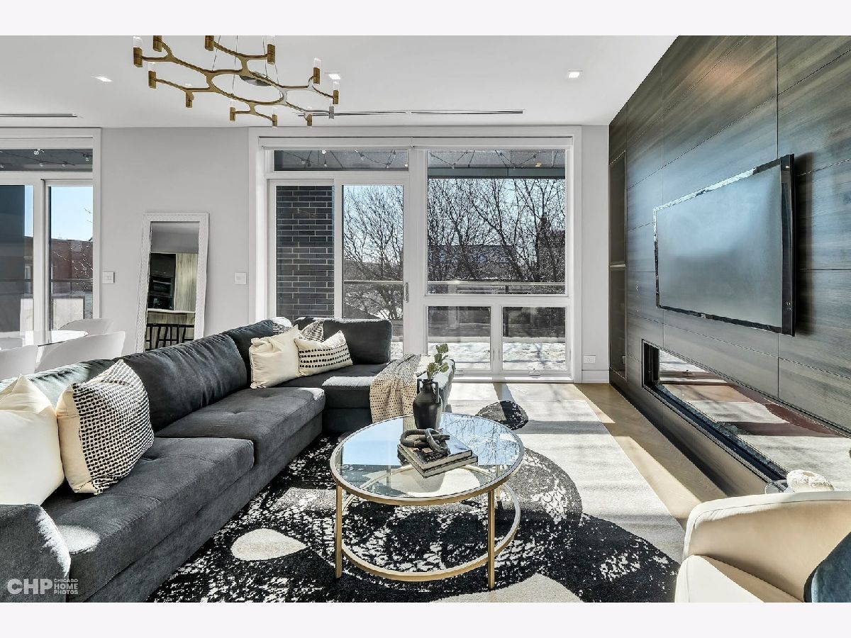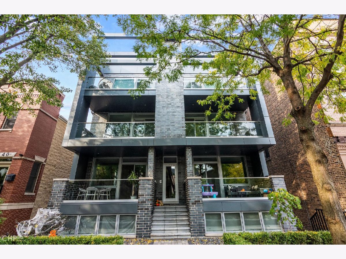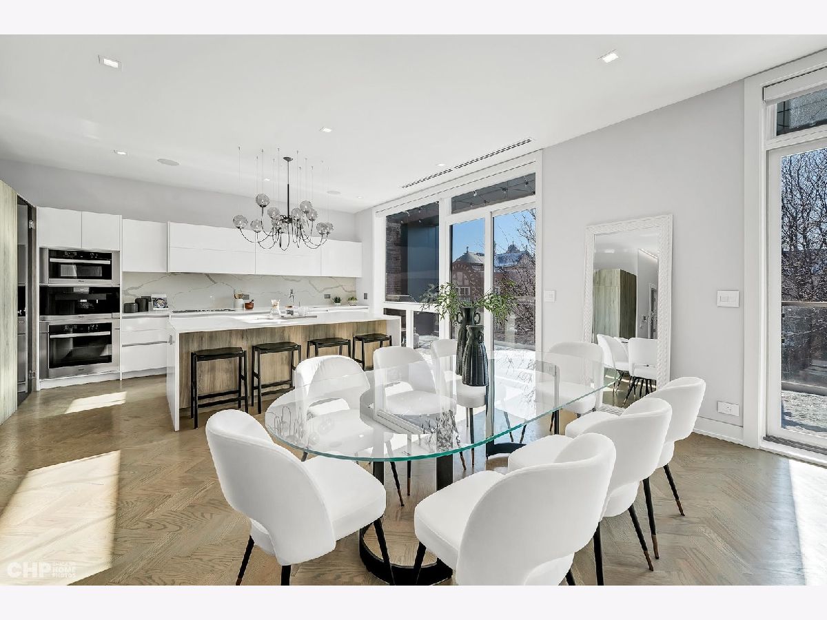 Luxury in Bucktown at 2136 Lyndale's Penthouse boasting a private roof deck accessible from a statement - all glass- staircase. Exceptional construction, thoughtfulness & attention to detail is evident the moment you approach the building. The Property is two lots combined to create an extra wide floor plan with attention to detail one doesn't see every day. You'll appreciate serene entertainment due to the brick on block construction + the commercial grade windows & doors. The home has windows for days - light pours in the entire front, south facing tree-lined street. Not only does 2136 Lyndale enjoy superior craftsmanship, it's dripping in luxurious details, finishes and selections. The pent house boasts: chevron hardwood floors stained in a greige hue, paired with chocolate paneled walls and built-ins. Beautiful chandeliers, like jewelry, adorn the ceilings, motorized shades and draperies cover the windows. Panel-front Miele appliances complete with a convection microwave, full size oven, built-in coffee maker fully vented hood to the exterior and a wine fridge in the kitchen are sure to please the chef of the home. The home features 3 well sized beds + 2 baths, spanning 40' across, affording equally flexible living & dining spaces. The Primary bedroom has two closets, a balcony, bed area large enough King Bed plus a sitting area. The primary bath is a stunner - heated floors, soaking tub, vintage mirror, and split vanities. A 2 car PRIVATE garage is included with the home. Recent building improvements include: all the window flashing changed to steel, spot tuck-pointed, and waterproof sealed brick for 10 years in 2020. All owner occupied - no restrictions. Taxes: $17,087.69, Assessments: $380, Reserves: $6,100. No specials.