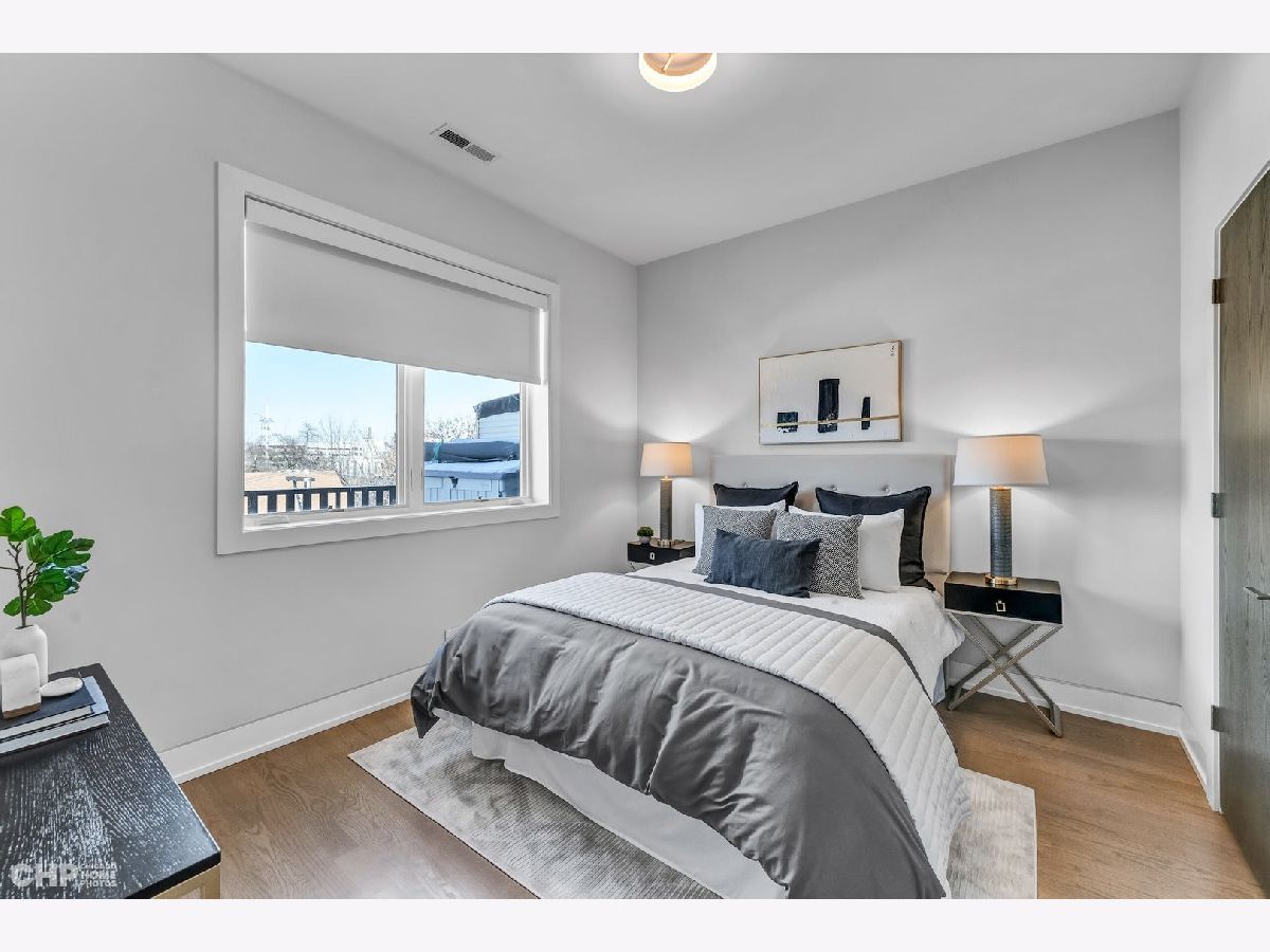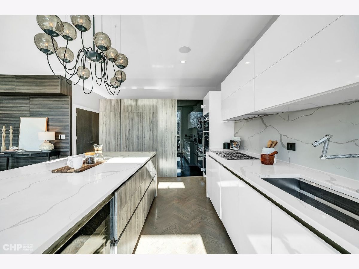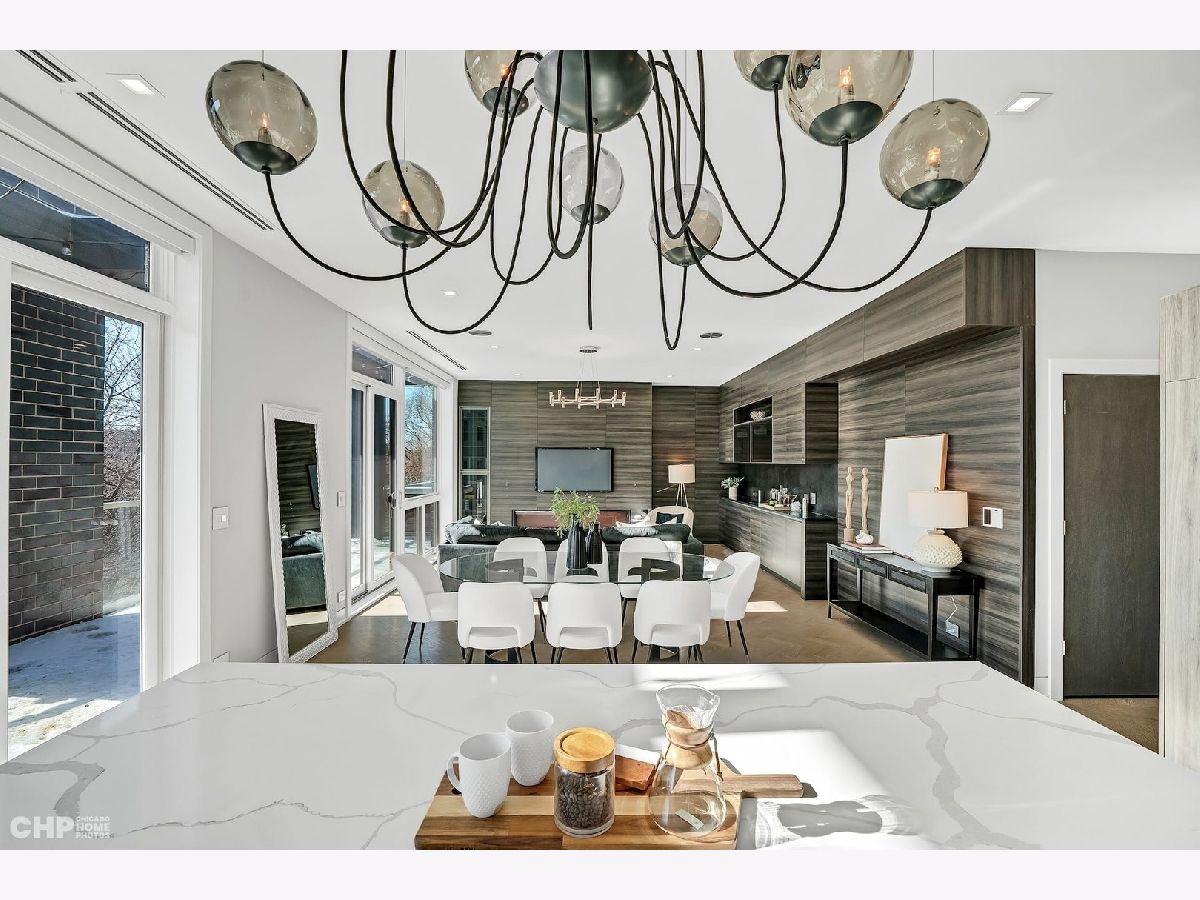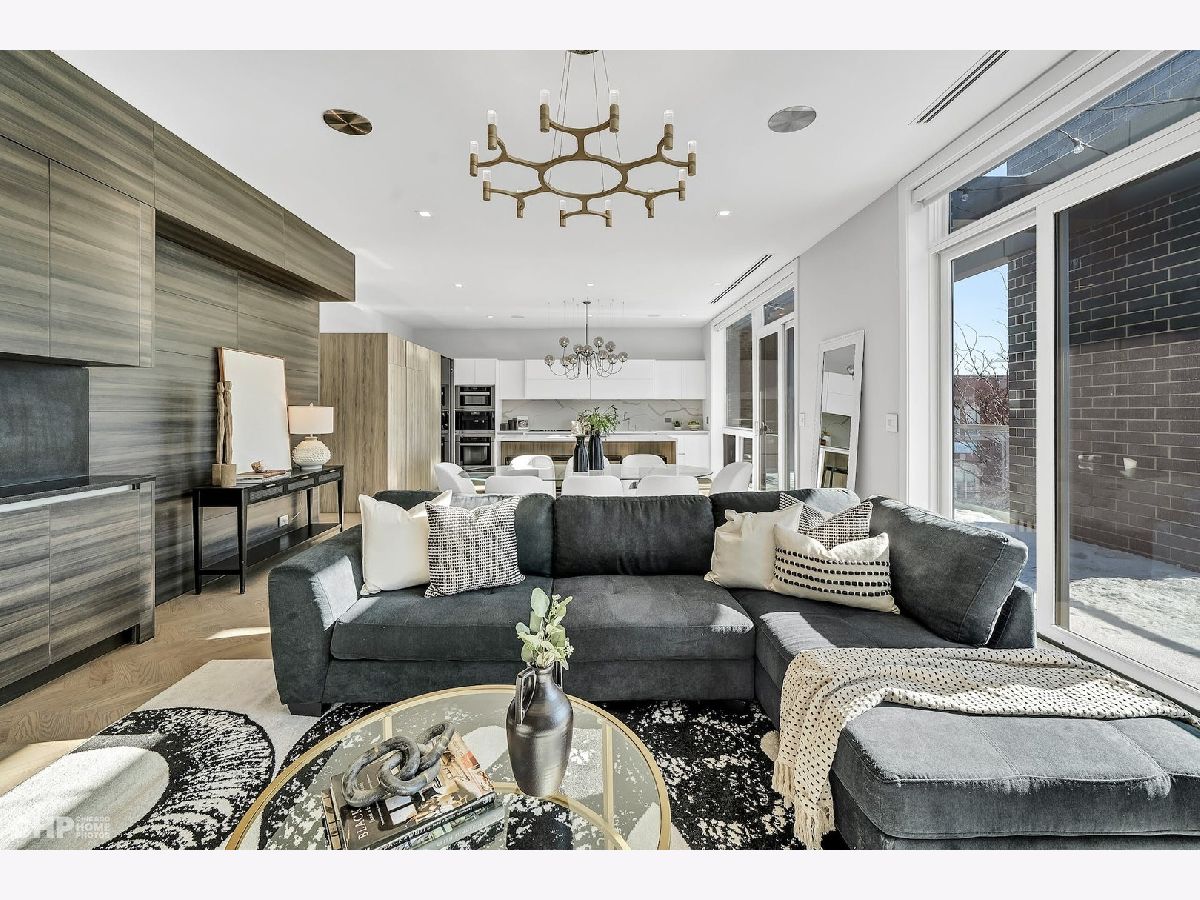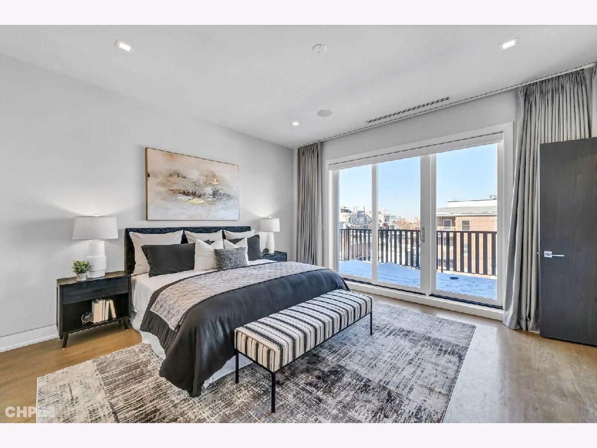 Luxury in Bucktown at 2136 Lyndale's Penthouse boasting a private roof deck accessible from a statement - all glass- staircase. Exceptional construction, thoughtfulness & attention to detail is evident the moment you approach the building. The Property is two lots combined to create an extra wide floor plan with attention to detail one doesn't see every day. You'll appreciate serene entertainment due to the brick on block construction + the commercial grade windows & doors. The home has windows for days - light pours in the entire front, south facing tree-lined street. Not only does 2136 Lyndale enjoy superior craftsmanship, it's dripping in luxurious details, finishes and selections. The pent house boasts: chevron hardwood floors stained in a greige hue, paired with chocolate paneled walls and built-ins. Beautiful chandeliers, like jewelry, adorn the ceilings, motorized shades and draperies cover the windows. Panel-front Miele appliances complete with a convection microwave, full size oven, built-in coffee maker fully vented hood to the exterior and a wine fridge in the kitchen are sure to please the chef of the home. The home features 3 well sized beds + 2 baths, spanning 40' across, affording equally flexible living & dining spaces. The Primary bedroom has two closets, a balcony, bed area large enough King Bed plus a sitting area. The primary bath is a stunner - heated floors, soaking tub, vintage mirror, and split vanities. A 2 car PRIVATE garage is included with the home. Recent building improvements include: all the window flashing changed to steel, spot tuck-pointed, and waterproof sealed brick for 10 years in 2020. All owner occupied - no restrictions. Taxes: $17,087.69, Assessments: $380, Reserves: $6,100. No specials.