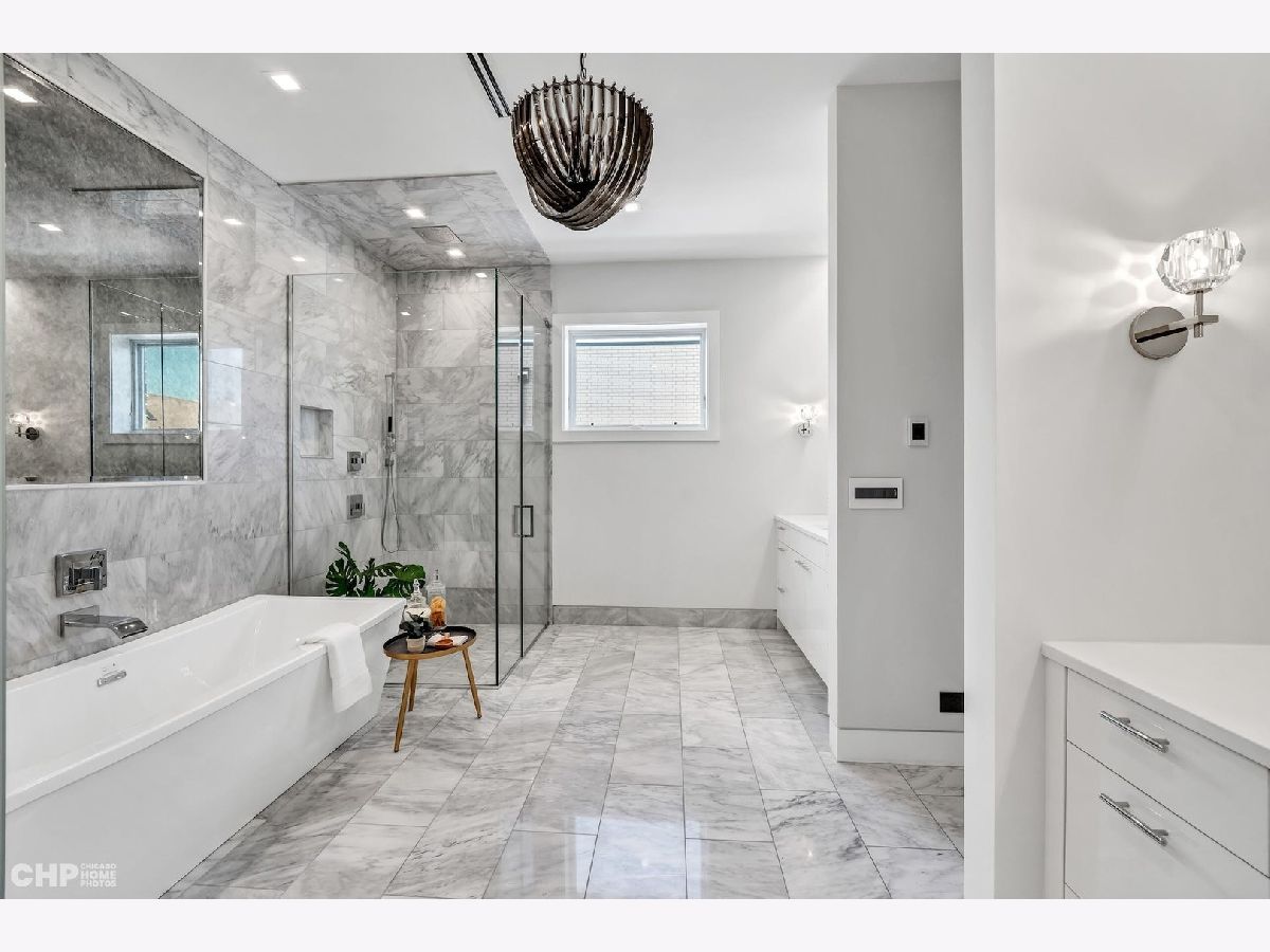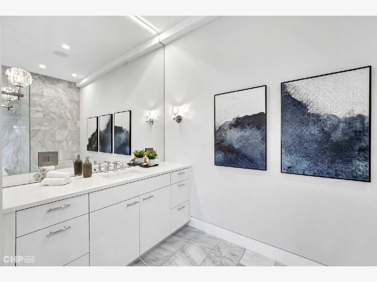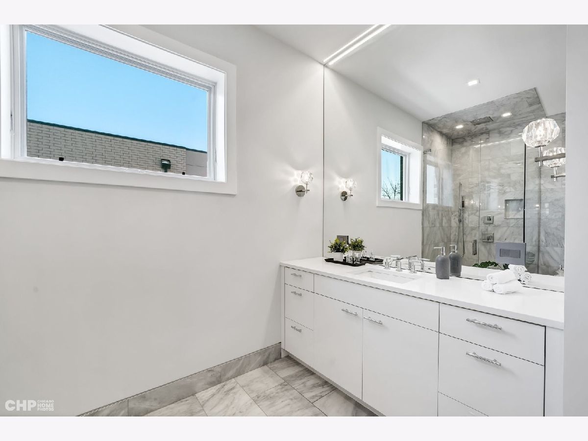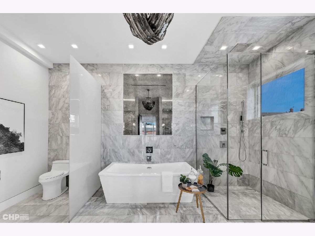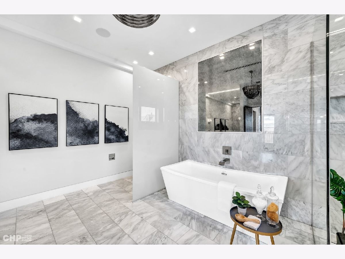 Luxury in Bucktown at 2136 Lyndale's Penthouse boasting a private roof deck accessible from a statement - all glass- staircase. Exceptional construction, thoughtfulness & attention to detail is evident the moment you approach the building. The Property is two lots combined to create an extra wide floor plan with attention to detail one doesn't see every day. You'll appreciate serene entertainment due to the brick on block construction + the commercial grade windows & doors. The home has windows for days - light pours in the entire front, south facing tree-lined street. Not only does 2136 Lyndale enjoy superior craftsmanship, it's dripping in luxurious details, finishes and selections. The pent house boasts: chevron hardwood floors stained in a greige hue, paired with chocolate paneled walls and built-ins. Beautiful chandeliers, like jewelry, adorn the ceilings, motorized shades and draperies cover the windows. Panel-front Miele appliances complete with a convection microwave, full size oven, built-in coffee maker fully vented hood to the exterior and a wine fridge in the kitchen are sure to please the chef of the home. The home features 3 well sized beds + 2 baths, spanning 40' across, affording equally flexible living & dining spaces. The Primary bedroom has two closets, a balcony, bed area large enough King Bed plus a sitting area. The primary bath is a stunner - heated floors, soaking tub, vintage mirror, and split vanities. A 2 car PRIVATE garage is included with the home. Recent building improvements include: all the window flashing changed to steel, spot tuck-pointed, and waterproof sealed brick for 10 years in 2020. All owner occupied - no restrictions. Taxes: $17,087.69, Assessments: $380, Reserves: $6,100. No specials.