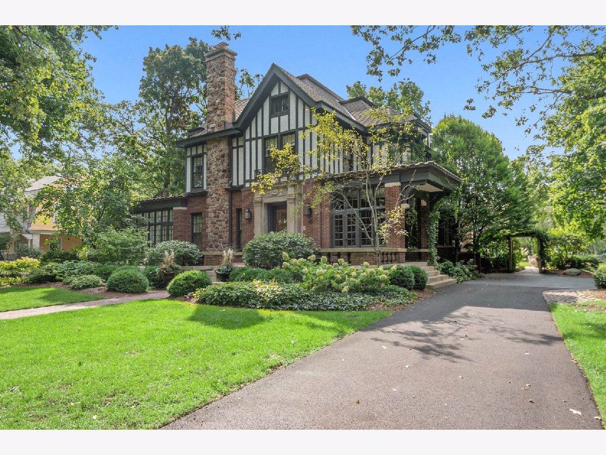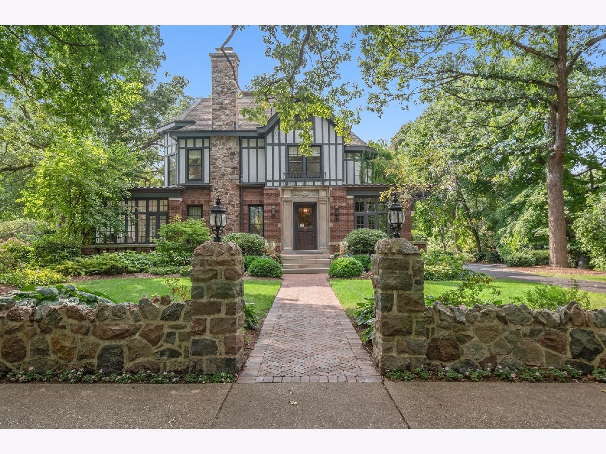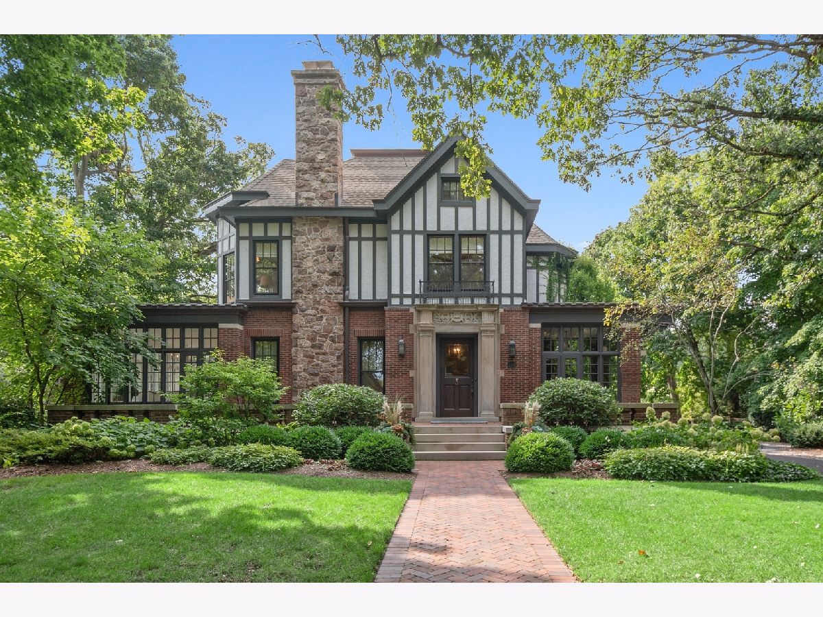 Welcome to 214 Greenwood, Evanston, Illinois. This landmark 1897 Tudor was originally designed by Harvey L. Page which has been lovingly restored by the current owners to seamlessly blend original historic architectural details with modern luxury amenities throughout. This stunning residence sits on two thirds of an acre parcel located on one of Evanston's most sought-after locations, east of Sheridan Road, steps off of the lake. This spectacular residence exudes warmth and luxurious comfort from the minute you enter. Light pours in the grand foyer and gorgeous staircase accentuated with custom wrought iron handrails and leaded glass windows. The spacious living room and dining room is appointed with hand crafted wood floors, fibrous ceilings and marble fireplace. Early morning light showers in from the sunroom and sitting room with tile fireplace. The family room adjacent the kitchen, featuring wood ceiling beams and separate fireplace. There is a cozy wood paneled library leading you from the side entry to kitchen. The kitchen with custom cabinetry, stainless steel appliances, heated floors with a separate eat-in area with wrap around windows. The expansive second floor features a large landing with sitting room; spacious primary bedroom with fireplace and luxury bath. Four additional bedrooms and three bathrooms for a total five (5) beds and four (4) baths on the 2nd floor. The third floor offers a media/recreation room, prewired for surround sound with built-in speakers. The historic design is not lost with the original diachronic art glass skylights. There is an additional guest room and office with a full bath at this level. The historic coach house/horse barn and stable located in the back of the property serviced by a paved driveway has been completely renovated. Many of the original building components were repurposed and used in the renovation. Entering thru the coach house original barn door, there is a kitchen and entertaining area designed for both indoor/outdoor living. The original "Tac" closet has been repurposed as the 1st floor powder room. The coach house 2nd floor features a one bedroom apartment with separate entrance above the two and half car heated garage. Just outside of the coach house in the rear yard, there is an inviting, 10' round, outdoor gas, stone firepit great for entertaining year around. The professionally landscaped yard features a separate stone patio and grill just outside the primary kitchen and rear entrance to the back yard. The rear yard features raised vegetable garden containers, as well as an outdoor shower and basketball hoop.