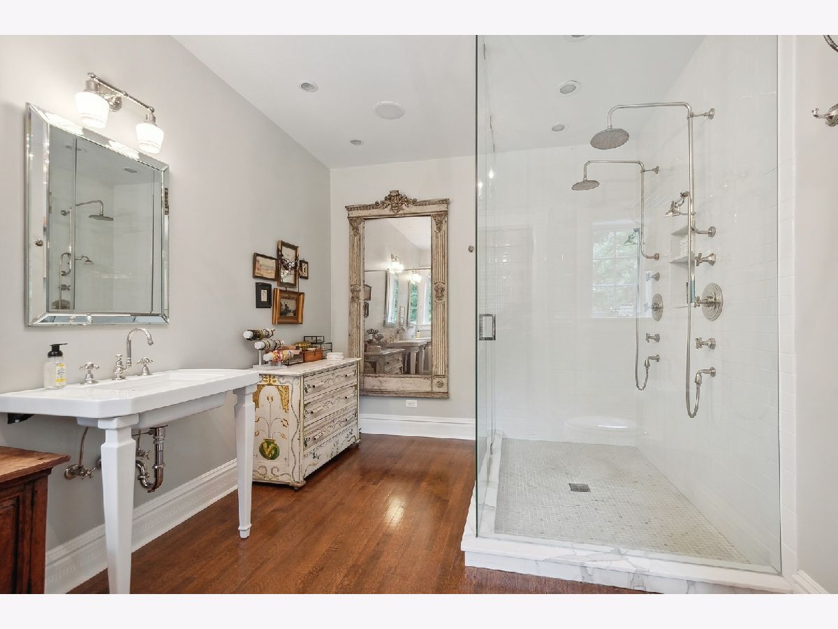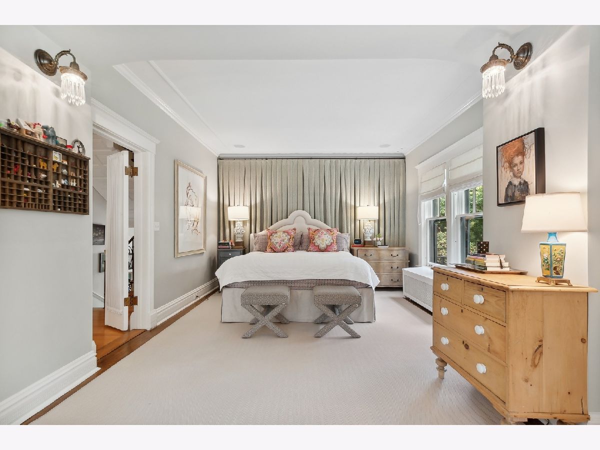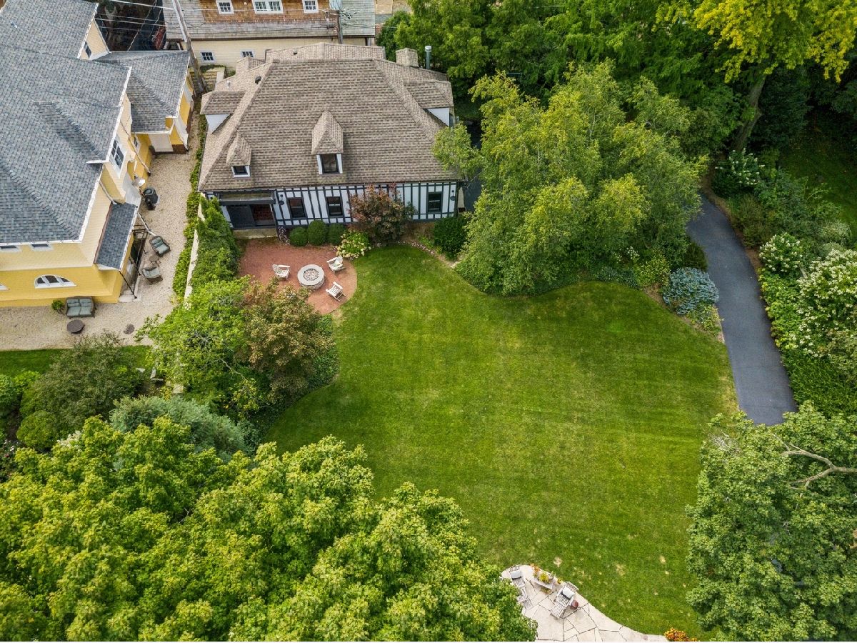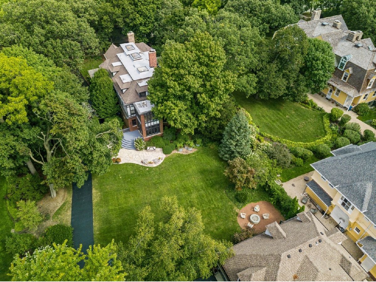 Welcome to 214 Greenwood, Evanston, Illinois. This landmark 1897 Tudor was originally designed by Harvey L. Page which has been lovingly restored by the current owners to seamlessly blend original historic architectural details with modern luxury amenities throughout. This stunning residence sits on two thirds of an acre parcel located on one of Evanston's most sought-after locations, east of Sheridan Road, steps off of the lake. This spectacular residence exudes warmth and luxurious comfort from the minute you enter. Light pours in the grand foyer and gorgeous staircase accentuated with custom wrought iron handrails and leaded glass windows. The spacious living room and dining room is appointed with hand crafted wood floors, fibrous ceilings and marble fireplace. Early morning light showers in from the sunroom and sitting room with tile fireplace. The family room adjacent the kitchen, featuring wood ceiling beams and separate fireplace. There is a cozy wood paneled library leading you from the side entry to kitchen. The kitchen with custom cabinetry, stainless steel appliances, heated floors with a separate eat-in area with wrap around windows. The expansive second floor features a large landing with sitting room; spacious primary bedroom with fireplace and luxury bath. Four additional bedrooms and three bathrooms for a total five (5) beds and four (4) baths on the 2nd floor. The third floor offers a media/recreation room, prewired for surround sound with built-in speakers. The historic design is not lost with the original diachronic art glass skylights. There is an additional guest room and office with a full bath at this level. The historic coach house/horse barn and stable located in the back of the property serviced by a paved driveway has been completely renovated. Many of the original building components were repurposed and used in the renovation. Entering thru the coach house original barn door, there is a kitchen and entertaining area designed for both indoor/outdoor living. The original "Tac" closet has been repurposed as the 1st floor powder room. The coach house 2nd floor features a one bedroom apartment with separate entrance above the two and half car heated garage. Just outside of the coach house in the rear yard, there is an inviting, 10' round, outdoor gas, stone firepit great for entertaining year around. The professionally landscaped yard features a separate stone patio and grill just outside the primary kitchen and rear entrance to the back yard. The rear yard features raised vegetable garden containers, as well as an outdoor shower and basketball hoop.