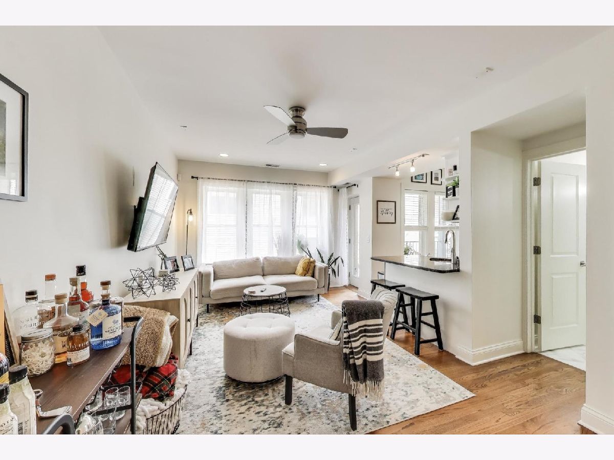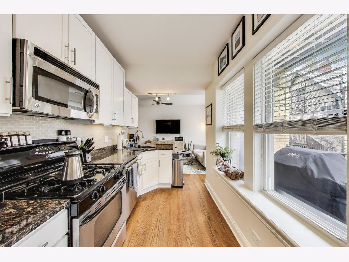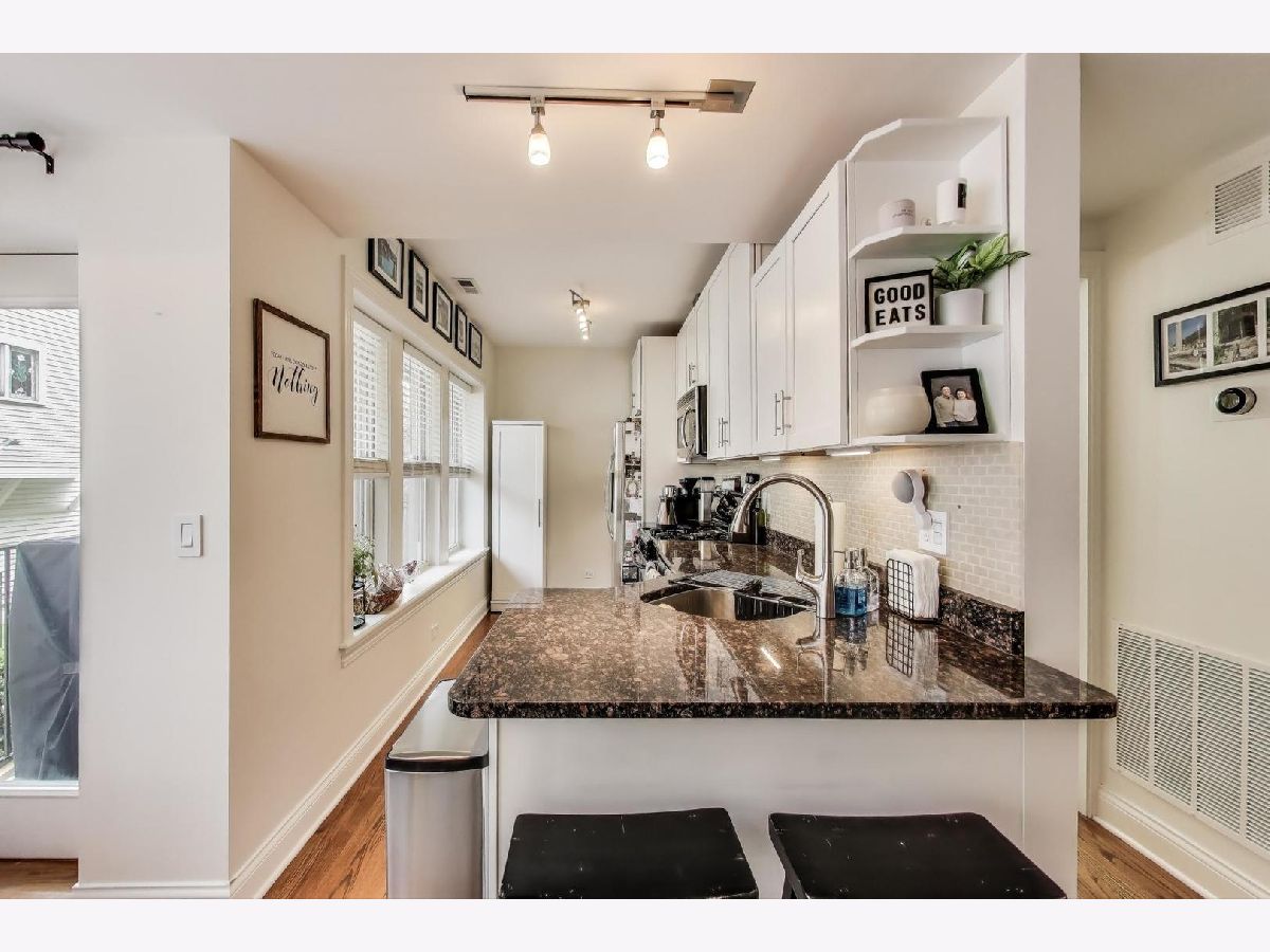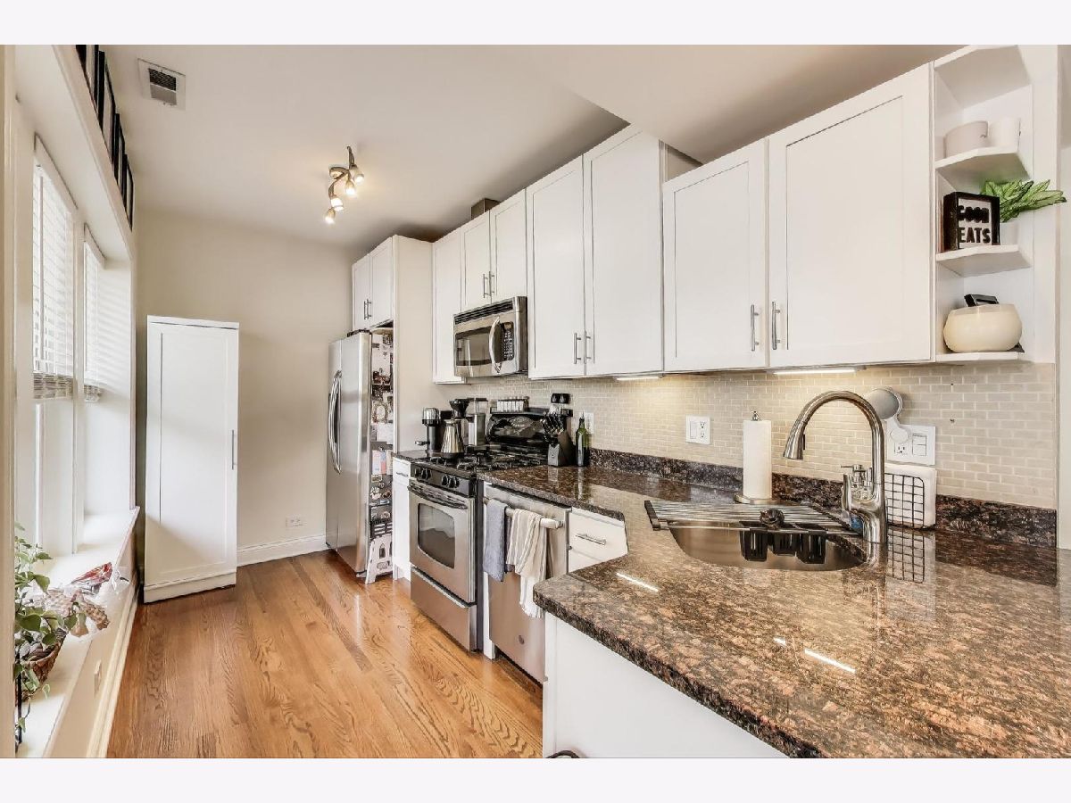 Welcome home to the vibrant North Center/Roscoe Village neighborhood! This charming and quiet two-bedroom, two-bathroom condominium is tucked away from and does not face Addison. The home invites you in with its warm hardwood floors and open-concept living space-ideal for hosting gatherings to watch the big game or simply unwind. The kitchen is a chef's delight with sleek white shaker-style cabinets and stainless steel appliances, making meal prep a breeze. Enjoy the convenience of an in-unit washer/dryer and stay comfortable year-round with central AC and a Nest thermostat. Step out onto your private balcony with Trex decking, where you can savor a morning coffee overlooking the beautifully landscaped courtyard. The HUGE private storage unit in the basement ensures ample space for all your belongings, and additional storage options are available too. This classic all-brick lowrise building offers a bike room and common storage. You'll appreciate the easy access to the 'El' train, as well as the delightful shops and restaurants along Roscoe Street and Lincoln Avenue-all just a stone's throw away. With free and easy street parking on Hamilton and Leavitt Streets, this home truly has it all. Make your move to this fantastic community today!