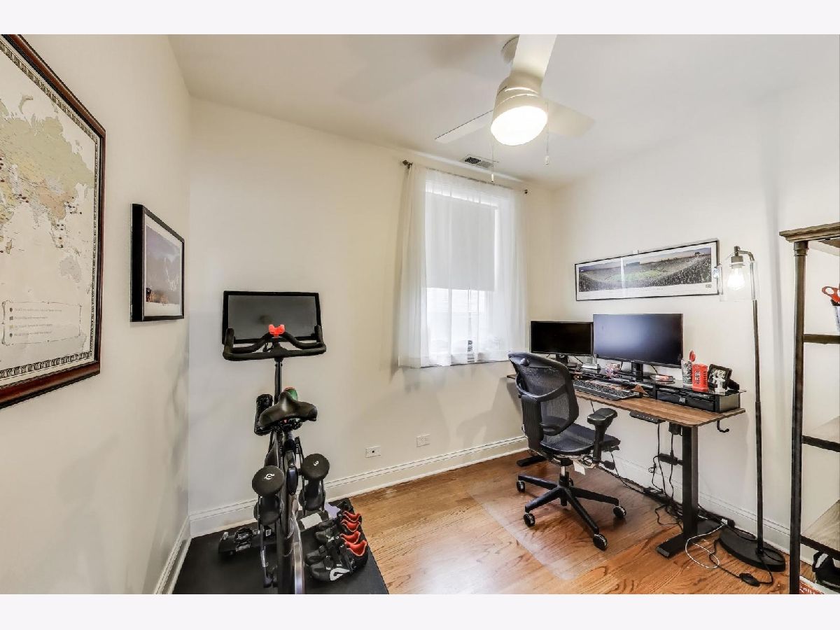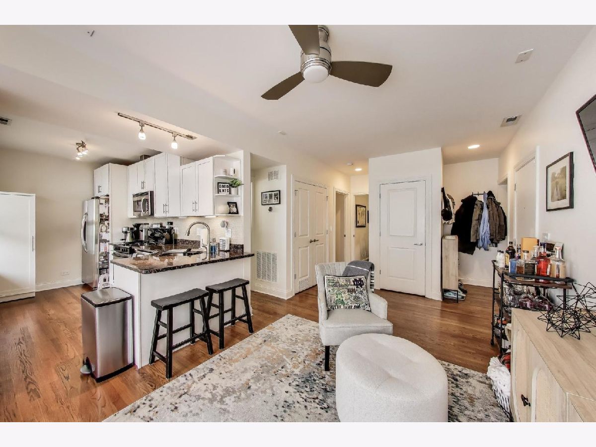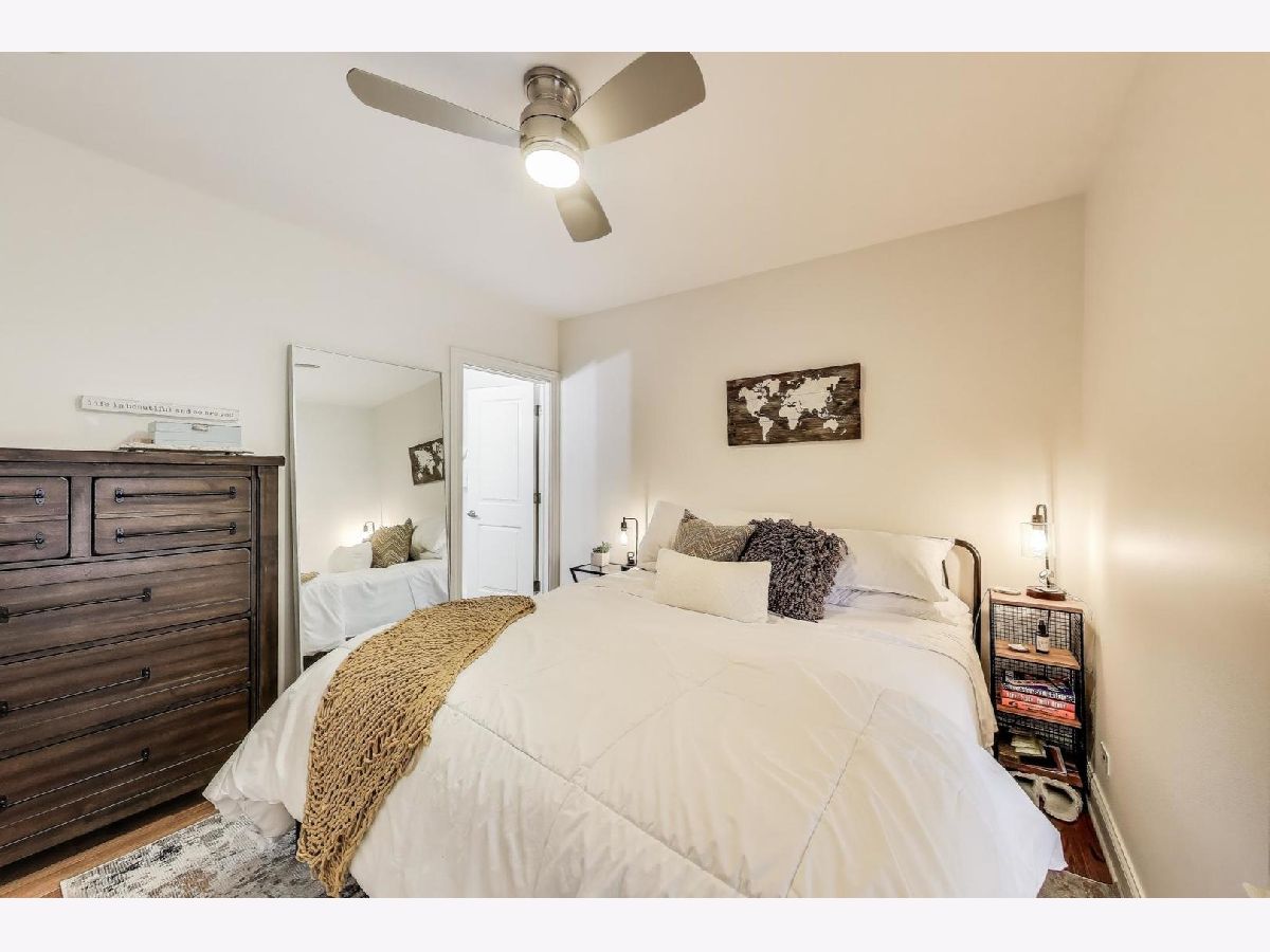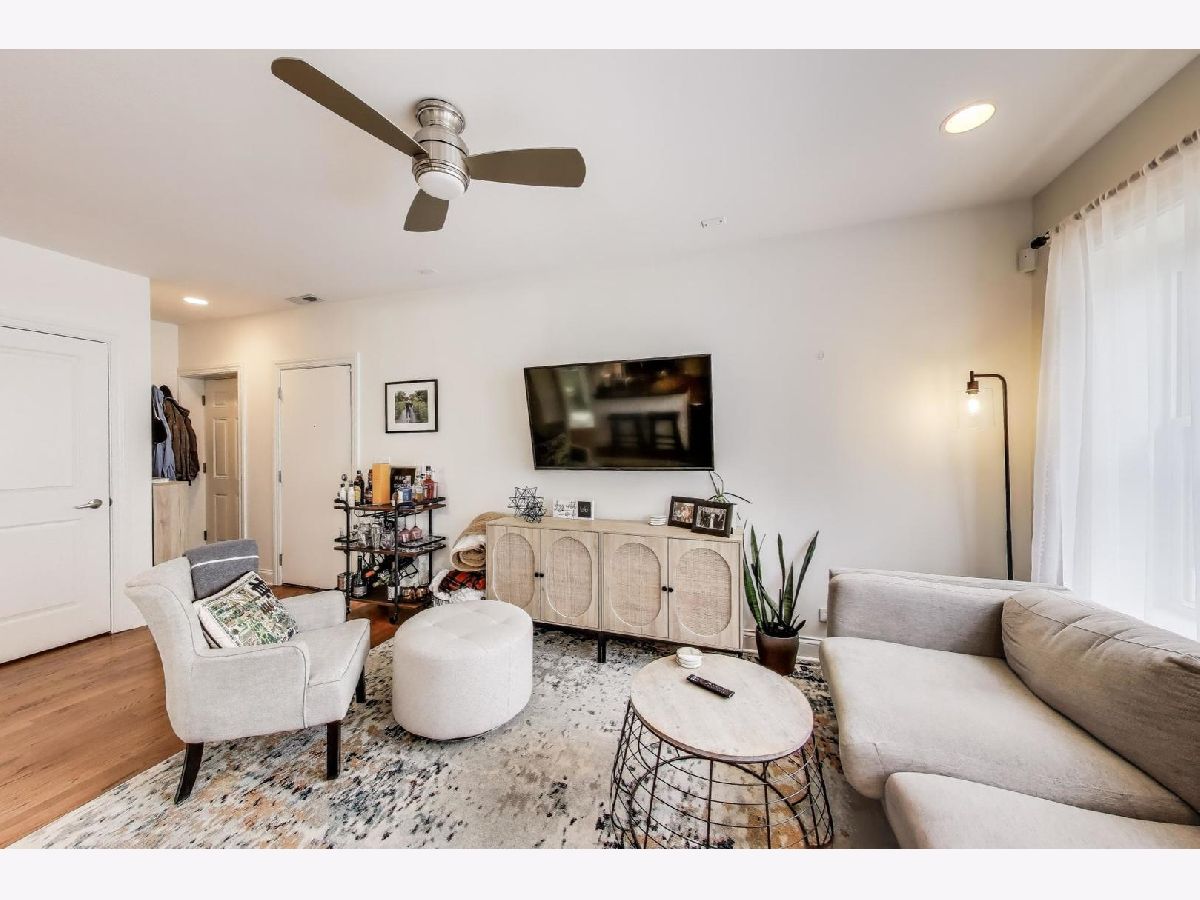 Welcome home to the vibrant North Center/Roscoe Village neighborhood! This charming and quiet two-bedroom, two-bathroom condominium is tucked away from and does not face Addison. The home invites you in with its warm hardwood floors and open-concept living space-ideal for hosting gatherings to watch the big game or simply unwind. The kitchen is a chef's delight with sleek white shaker-style cabinets and stainless steel appliances, making meal prep a breeze. Enjoy the convenience of an in-unit washer/dryer and stay comfortable year-round with central AC and a Nest thermostat. Step out onto your private balcony with Trex decking, where you can savor a morning coffee overlooking the beautifully landscaped courtyard. The HUGE private storage unit in the basement ensures ample space for all your belongings, and additional storage options are available too. This classic all-brick lowrise building offers a bike room and common storage. You'll appreciate the easy access to the 'El' train, as well as the delightful shops and restaurants along Roscoe Street and Lincoln Avenue-all just a stone's throw away. With free and easy street parking on Hamilton and Leavitt Streets, this home truly has it all. Make your move to this fantastic community today!