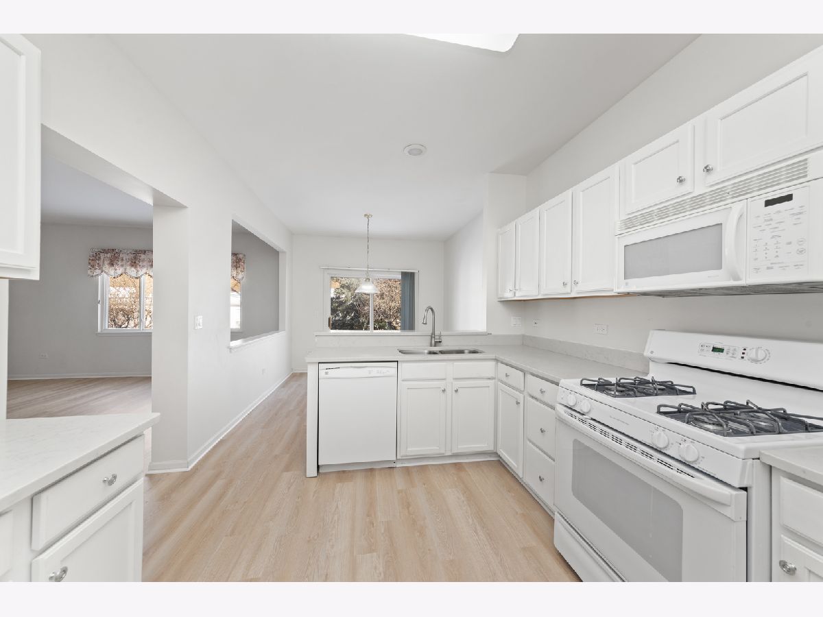 Discover this beautifully updated ranch townhome tucked away in a quiet cul-de-sac within the sought-after Carillon neighborhood. Boasting an open-concept design, this home offers 2 bedrooms, 1 bath, and 1,373 sq ft of thoughtfully designed living space. As you step into the foyer, you're greeted by a spacious great room perfect for a living and dining room combination. The kitchen is a true standout, featuring abundant cabinet space, freshly painted white cabinets, and sleek quartz countertops. Adjacent to the kitchen, the bright breakfast room leads to a private patio through sliding glass doors-ideal for outdoor relaxation. The primary bedroom offers a peaceful retreat with brand-new carpeting and a walk-in closet. The shared master bath has been updated with a stylish new vanity and a convenient walk-in shower. A second bedroom provides versatility for guests, a home office, or additional flexible living space. Living in Carillon means enjoying resort-style amenities, including a clubhouse, fitness center, indoor and outdoor pools, golf, tennis, walking and biking trails, and a full calendar of organized activities. With 24-hour gated security, this community provides both comfort and peace of mind. Conveniently located near I-55, shopping, dining, and entertainment, this townhome is priced to sell and won't last long. Don't wait-schedule your tour today and start living your best life in Carillon!