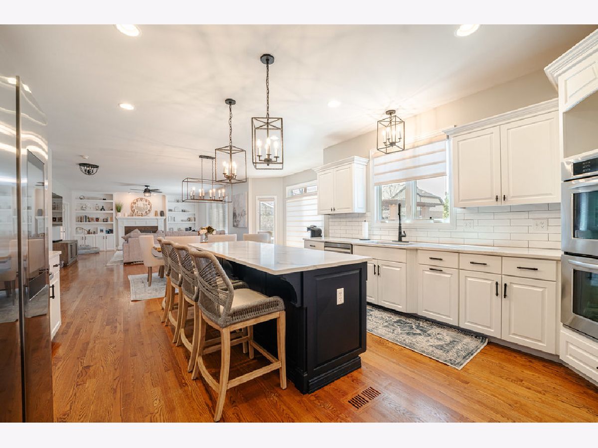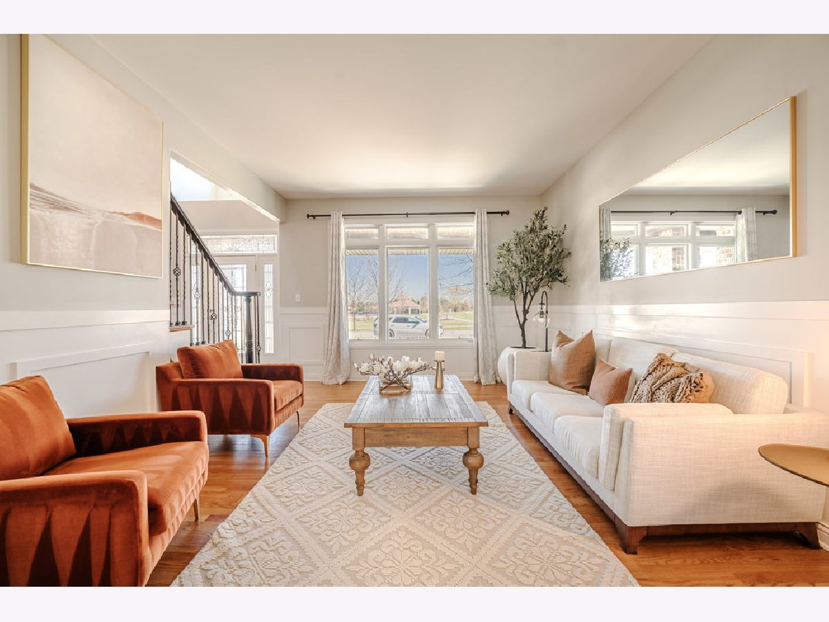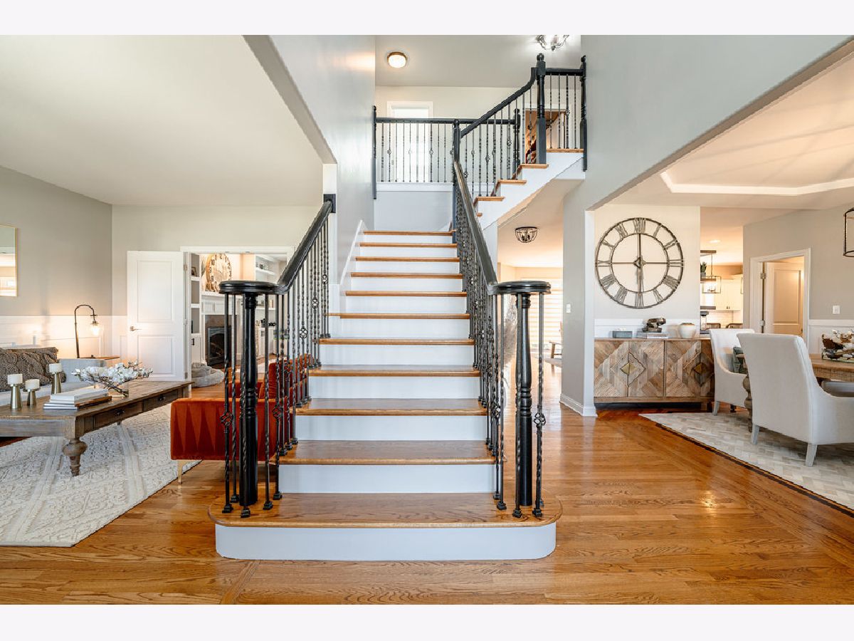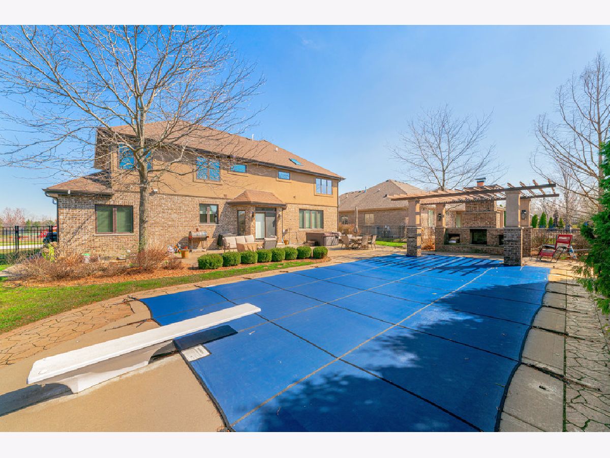 This spectacular, custom built, updated, light and bright, two story home on a premium lot boasts 5 bedrooms and 5.1 baths, with superior, tailor made upgrades from top to bottom, and abundant natural light filling every room. Modernized gourmet kitchen offers quartz countertops, updated appliances and light fixtures, double oven, Hunter Douglas blinds, brand new kitchen refrigerator, and brand new wine fridge in dry bar off spacious dining room. Living room and first floor office boast Closets By Design custom built-ins and cabinetry, updated light fixtures, Hunter Douglas blinds and beautiful hardwood floors throughout the entire main level. Full bath with tiled shower/tub combo, updated powder room, large walk-in pantry, and sizable formal living room complete the first floor. The second level flaunts brand new wood laminate flooring throughout. New light fixtures in hallway, second bedroom, and second bedroom bathroom with refinished vanity and new mirror. The other two upstairs bathrooms have both been gutted and exquisitely renovated from head to toe. The master bath is now equipped with huge walk-in tiled shower with bench, bidet, soaker tub, and freestanding faucet. Gorgeous finished basement with 5th bedroom or additional office space, great custom wet bar with seating for 9, additional family room, seperate workout/play area, and full bath with tiled shower/tub combo, refinished vanity and brand new light fixture and mirror. All bedroom closets, linen closets, and pantry have Closets by Design organizing systems. 3 car attached garage with Closets By Design cabinetry, floor tiles, and wall organizing system. Spectacular outdoor living space with gorgeous heated in ground pool, brand new hot tub, pergola with cascading waterfall, wood burning brick fireplace, and large natural stone and concrete patios. Professionally landscaped, Carefree irrigation system and mist-a-way mosquito system. Conveniently located near shopping, dining, entertainment, parks, Old Plank Trail, Mokena grade schools and award winning Lincoln Way Central highschool. No stone left unturned, all there is to do is move in. Recent upgrades include: 2023 - Master bath and second level hall bath complete gut, maintenance free wood laminate flooring throughout entire second floor, whole house painted, Hot tub, 3 bathroom vanities and stairs/banister refinished, top & front loader washer and dryer, Kitchen refrigerator, 3 mini refrigerators - 2 in basement bar and 1 in upstairs dry bar, second floor hallway, spare bedroom and basement light fixtures, bathroom mirrors, and basement fireplace mantle. 2020 - Pool heater, Radon mitigation system,Closets by design custom closets throughout and custom built ins, Kitchen dishwasher and sump pump 2013 - Finished basement with surround sound, huge custom wet bar with seating for 9, ice maker, dishwasher, microwave, full bath with walk in shower, bedroom with built in storage and Murphy bed 2011 - saltwater pool, brick fireplace, pergola with cascading lights, professional landscaping.