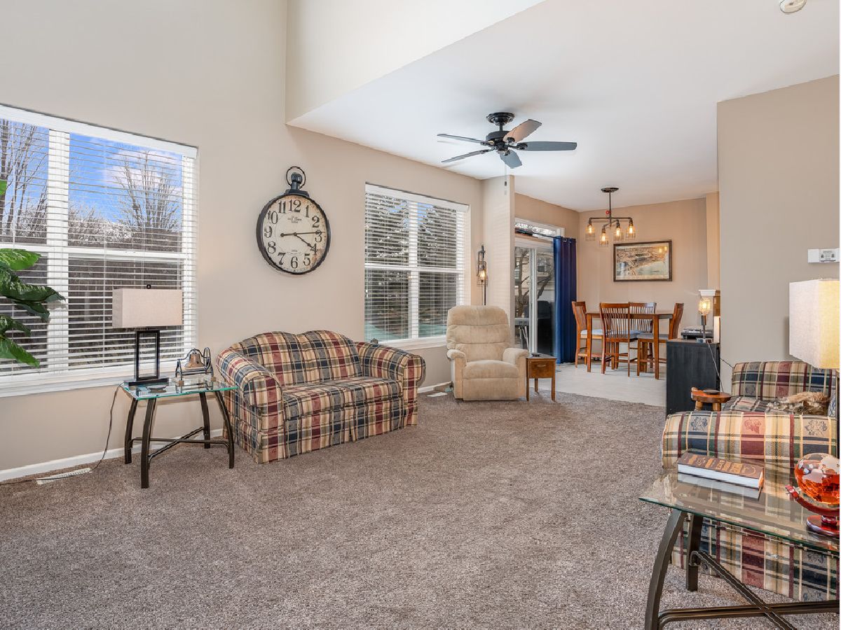 This is the ONE you have been waiting for! Welcome Home! 2149 Sunrise Circle features 2 bedrooms and 2 1/2 bathrooms. The open concept main floor plan is very bright with plenty of room for living and entertaining. As you enter you will find a welcoming foyer and a two story family room leading into a bright kitchen with plenty of cabinets and counter space. Upstairs you will find 2 bedrooms each with private en-suite full bathrooms. The primary bedroom features a sitting area/office nook as well as a bathroom with double sinks. The second bedroom is generously sized with a private bath. On the second floor you will also find the laundry room. The garage is drywalled and painted and nicely sized. Neutral flooring and paint throughout. Located close to schools, a park and ride for the Metra and shopping. Oswego 308 schools.