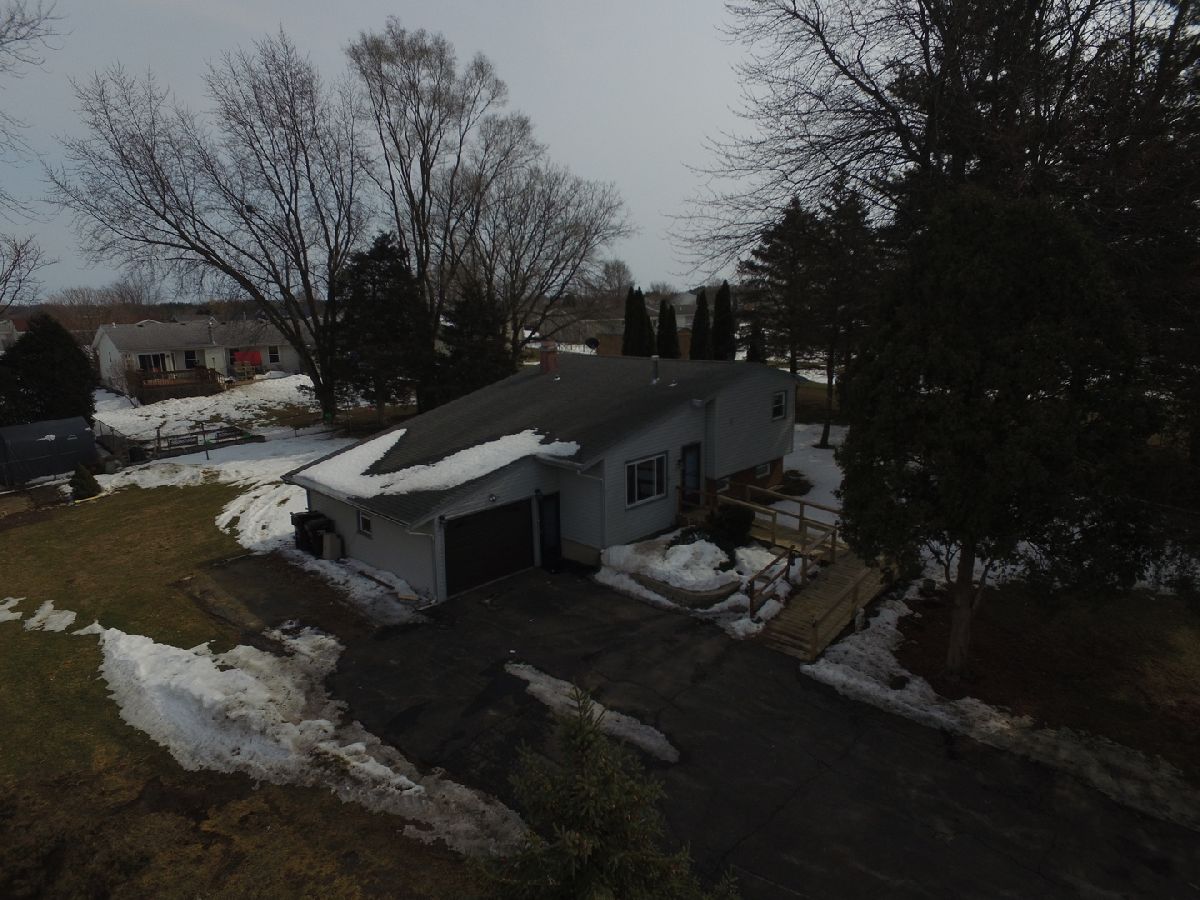 Small town living Beckons with this Tri Level sitting on a 1/2 Lot in right in Capron! Beautiful Mature Trees shade most of Property including the almost New Deck off the Kitchen!! 3 Bedrooms and 1 Full Bath Upstairs, Large Family Room with Fireplace and a convenient 1/2 Bath in the Lower Level. Living Room and a Large Eat In Kitchen leading onto an Attached 1.5 Car Garage with plenty of room to Add on or put up a Detached Garage or Outbuilding. One Block away from the New Casey's Market and just around the Corner from the Dollar General. 10 minute ride to the Metro Train or the Walmart in Harvard. Roof/Furnace/Central Air/Water Heater all within past 10 years or less, Property is an Estate Sale and is being Conveyed "As-Is". See it soon, won't last long!!