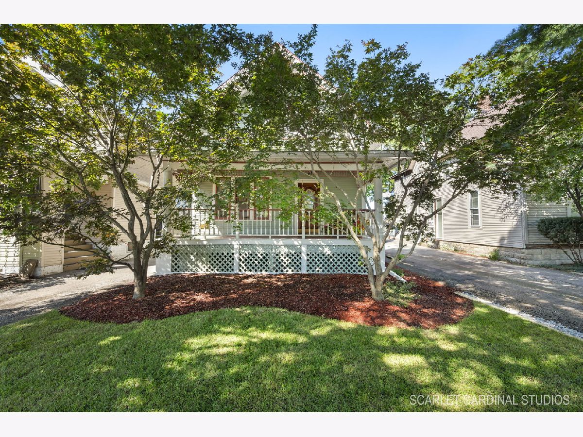 Charming home situated adjacent to the Historic District just moments from downtown Naperville. This home's expansive covered front porch greets you as you approach. Upon entry, you'll immediately notice the custom oak staircase with exposed banister, and bench seat, great for taking on and off shoes. The living room boasts large windows, a chandelier, and extended height baseboards that continue through the home. The separate dining room provides built-in cabinets with glass doors adding a convenient, but rustic touch to the space, and tall windows that fill the space with natural light. Enjoy privacy in the first floor den with closet that could easily be a fourth bedroom and a first floor full bath. Kitchen offers SS appliances and ample cabinet space. Upstairs, the primary bedroom features a renovated, oversized walk-in closet with recessed lighting and marble flooring that leads to the beautifully remodeled full bath, which offers recessed lighting, a cabinet vanity with marble top, and a fully tiled shower with a curved glass door. Two more spacious bedrooms with walk-in closets complete the second level. The backyard includes a paver patio under mature trees and a detached one-car garage with additional storage space. Attends Naperville SD #203 schools, including Ellsworth Elementary, Washington Junior High, and Naperville North High School. A commuter's dream with Metra stop a mere minute away. Acclaimed parks, shopping, dining, and favorite local spots such as the Riverwalk, Centennial Beach and the Nichols library close by. Enjoy all of the local amenities right off your front porch!