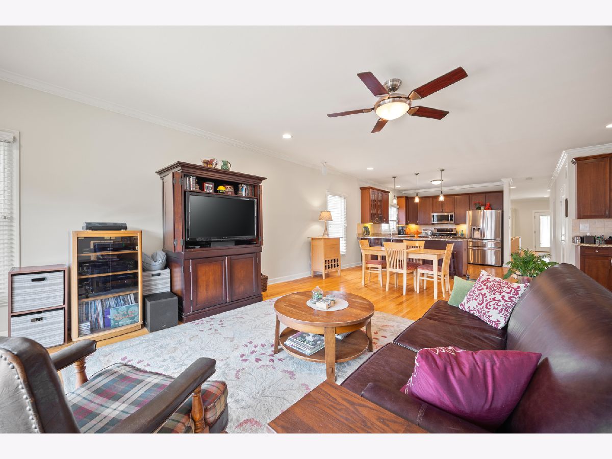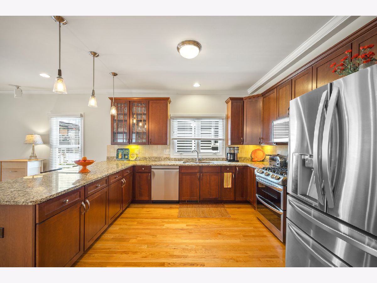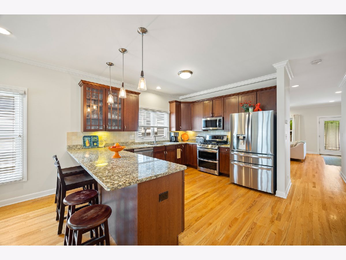 Perfect newer build freestanding single-family home in NorthCenter/Ravenswood featuring a giant kitchen/family room that opens to a deck and fully landscaped back yard. Custom-built for the current owners, the home has a front porch & proper living room with fireplace, open kitchen with granite countertops, breakfast bar, new stainless steel appliances, tile backsplash, adjacent pantry and bar area. 3 Bedrooms, 2 Baths upstairs including a big, bright primary suite with vaulted ceilings, fully-organized walk-in closets, private balcony and a granite/marble clad bathroom with double-bowl vanity, jet tub and separate shower. Hardwood floors throughout 1st and 2nd floors, dual-zoned HVAC systems with new equipment. Full finished basement newly carpeted throughout, with giant family room, wet bar and additional bedroom, bathroom and storage. Nearly $50,000 in recent updates including new appliances, mechanicals, plumbing, carpet and freshly painted. Excellent condition and move-in ready, though owners won't be able to move until October at the earliest. Available to show by appointment with advanced notice.
