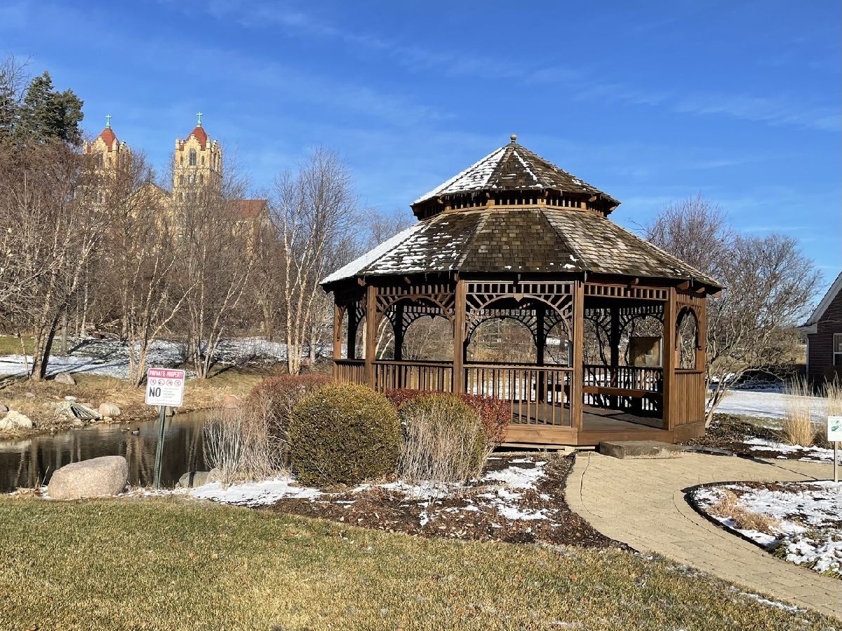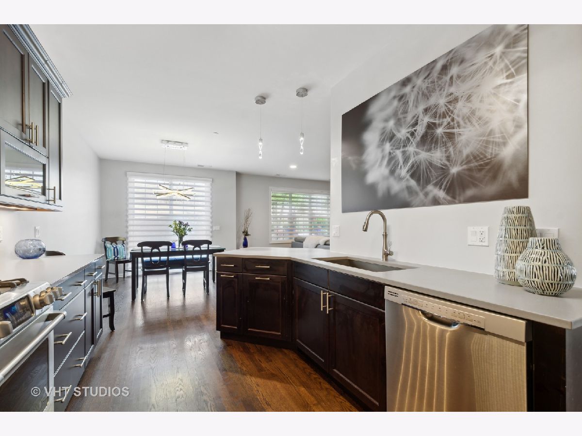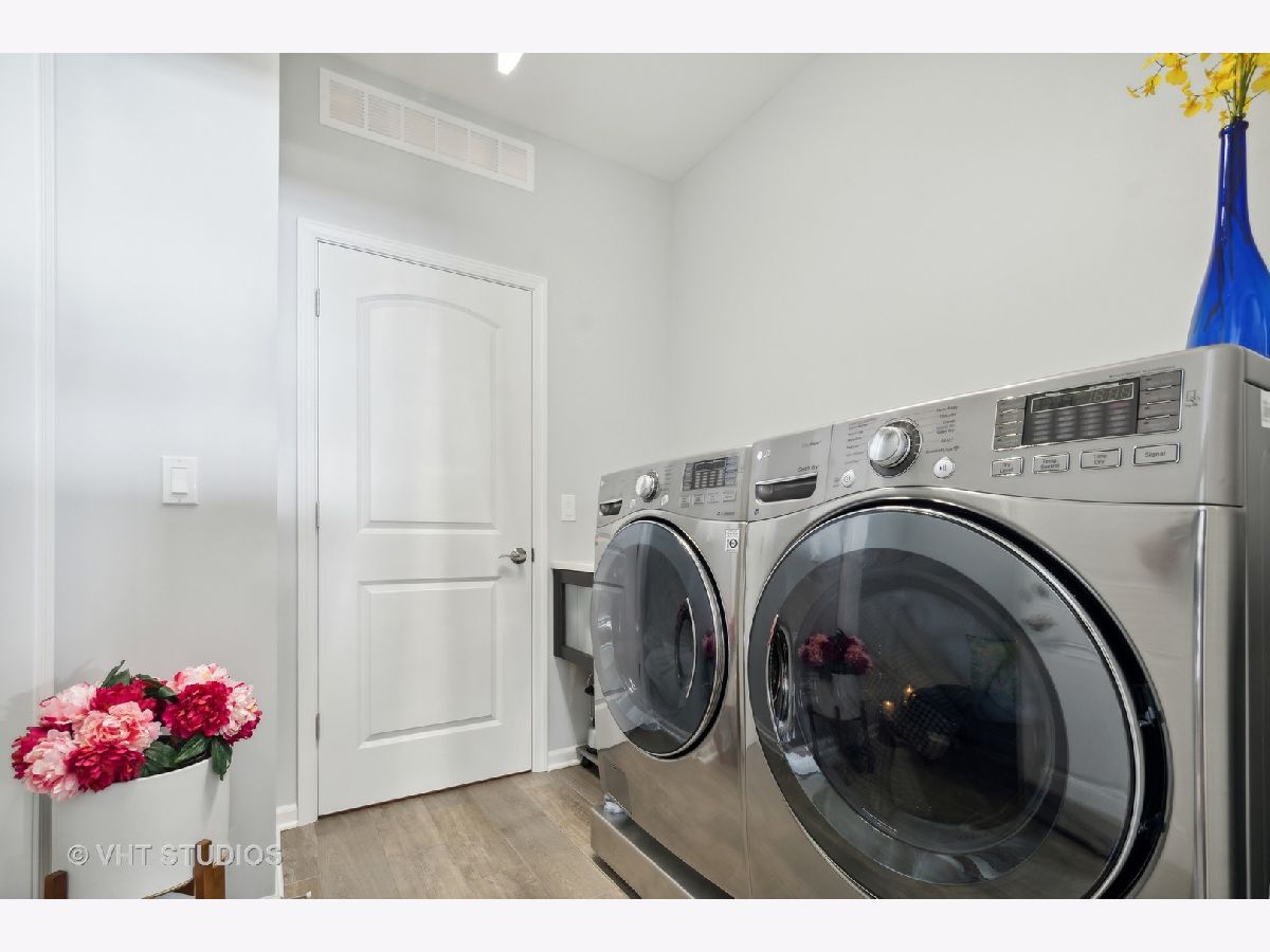 Luxury & location with this gorgeous, upgraded 3 bed + den, 2.1 bath maintenance free townhome situated in Northbrook's prestigious gated community, Meadow Ridge. Walk this home with the 3D video online. Built in 2015, this home offers an open floor plan for easy entertaining and living plus many extras. The expansive first floor living space accentuates the large chef's kitchen with long quartz counters, plentiful custom cabinetry, breakfast bar & stainless steel appliances that adjoins a large living and dining area. Enjoy a private backyard setting & step out onto a patio for tranquil views. Upstairs are 3 large bedrooms including an expansive primary suite with huge walk-in dressing room, organized closet. The elegant primary bath offers double sinks with marble countertop, soaking tub, separate shower with bench & heated floors. A hall bath serves beds 2 & 3 with heated floor and tiled walk-in shower. The 2nd large bedroom features another spacious walk-in, organized closet. Unique to this home is a 2nd floor utility room with storage. Also on the 1st floor is a convenient first floor den/office, welcoming entry foyer, laundry room with cast iron sink, 2 car garage with epoxy floor, powder room and another storage room under the staircase. Sophisticated ...with all beautiful oak hardwood floors, designer custom lighting, Hunter Douglas powerized shades for each large picture window, and a private yard that feels more like a single family home. Feel secure in this gated community with walking trails, charming gazebo & pond with fountain. Ideal locale-1/2 mile to Willow Festival (Whole Foods, CVS, Lowes, HomeGoods), minutes to The Glen, Pinstripes, Costco, Target, restaurants, I-94 expressway & much more. Floor plans included with the photos. Ask about the land lease.