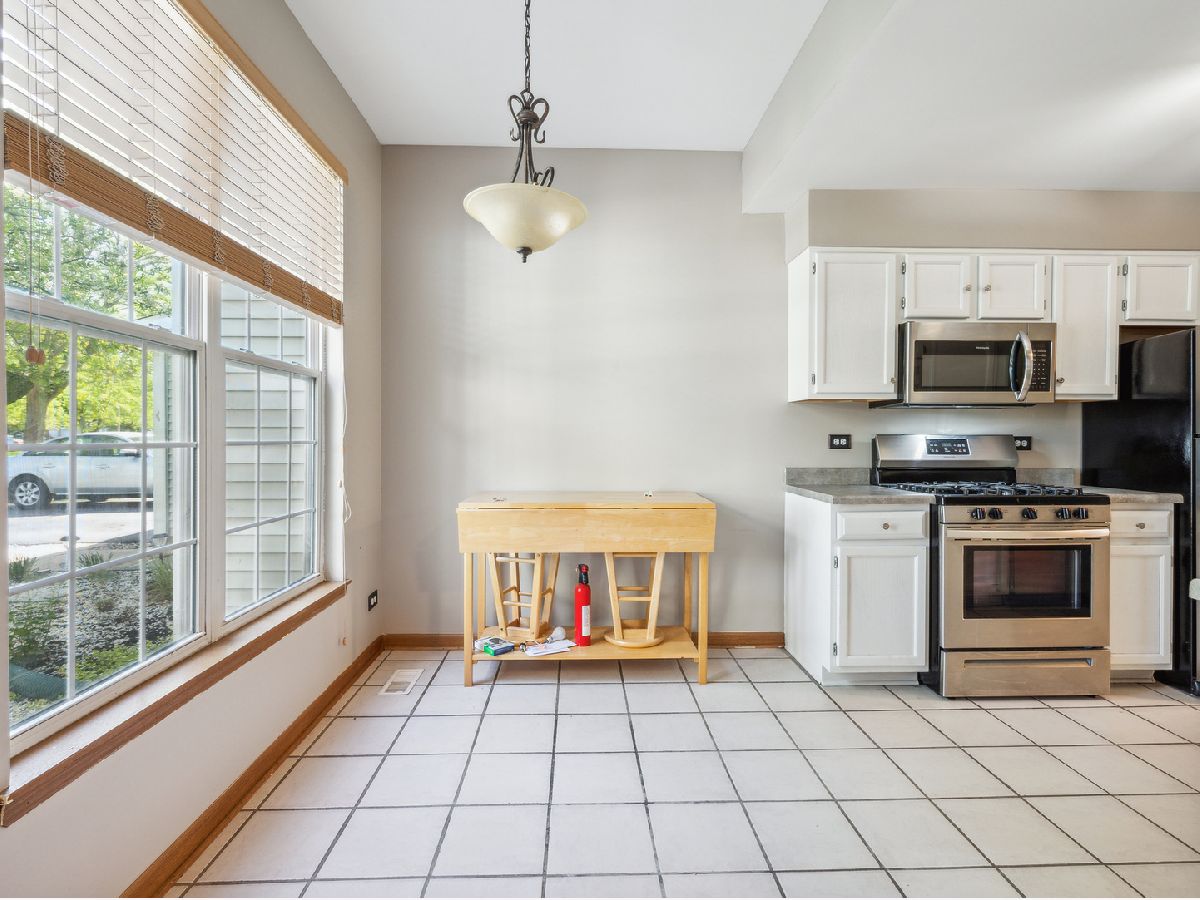 Looking for a beautiful and cozy rarely available end unit town-home in Plainfield then here it is! This light and bright open concept END UNIT townhome has 2 bedrooms, a spacious loft that could be a 3rd bedroom or office, and 1 1/2 baths. This townhomes interior has been freshly painted and it's ready for its new owner! The kitchen has all Stainless Steel Appliances that include a dishwasher, microwave, refrigerator and stove and they all go perfectly with the crisp white kitchen cabinets.This stunning property is situated in a quiet and family-friendly neighborhood, in Caton Crossing, just minutes away from top rated Plainfield school district 202, the beautiful trails and parks of Plainfield, shopping, dining, expressways, etc! This home is perfect for anyone. As you step inside, you'll be greeted by a welcoming foyer that leads to a spacious seperate living room that boast vaulted ceilings, perfect for entertaining with large windows that allows plenty of natural light to flow through. The eat-in kitchen has stainless steel appliances, and plenty of cabinet space. The adjacent dining area is perfect for family meals, and entertaining guest. The second floor features two spacious bedrooms. Other features include a 1 car garage separate from your neighbors. A spacious backyard with a generous patio that backs up to a large common area, and a lake just feet away perfect for that morning sunrise as you sip a cup of coffee. Don't miss your chance to own this beautiful property in desirable Plainfield. Schedule now. Investor friendly. Low HOA that covers exterior, lawn care, and more! This can even be your investment property. Don't miss out on this one! ***Brand New Furnace (April 2023) New A/C (2022), Dishwasher(2022) Upgraded living room lighting (2023). Don't wait!