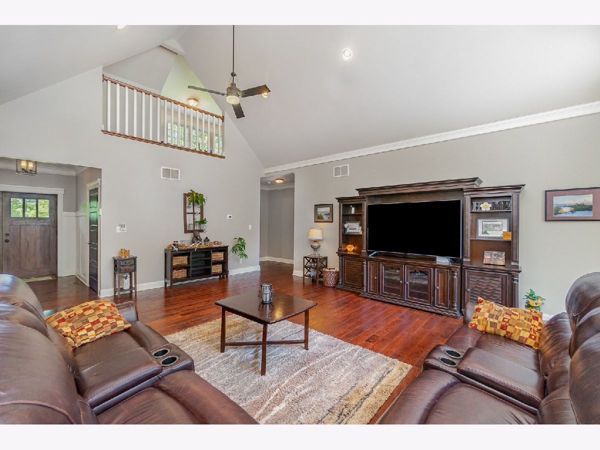 Drive up to this striking custom built home on 4 acres of partially wooded acres. Take the beautiful winding brick pathway to the front covered porch and imported mahogany front door. As you walk in to the foyer you are greeted with beautiful hardwood flooring throughout this open concept space with high ceilings and floor to ceiling windows overlooking deck and serene wooded area. Custom crown molding and pillars throughout. Custom kitchen cabinets with granite countertops, built-in appliances and dining area with beautiful wainscoting. Large Pantry and laundry room with cabinets and sink and entrance area from the garage. Large owners suite with additional sitting area, 2 walk in closets and custom bathroom with garden tub and separate shower, 2 separate vanities and ceramic flooring. Additional bedroom/office with hardwood flooring and ceiling fan. The additional two bedrooms are located on the other side of the home - each have hardwood flooring and full bathrooms. Upstairs you will find an additional bedroom with full bath, loft area with lookout to the lower level and an additional rec-room area all carpeted. Full unfinished daylight basement offers lots of opportunity for growth. Back yard has composite deck with stairs down to patio area with firepit and peaceful wooded views. 3 car finished garage completes this amazing home close to Indiana Dunes State and National Parks, beaches, marinas, South Shore train to Chicago and South Bend, close to major highways with a short 45 minute drive to downtown Chicago as well as being in the award winning Duneland Schools system.