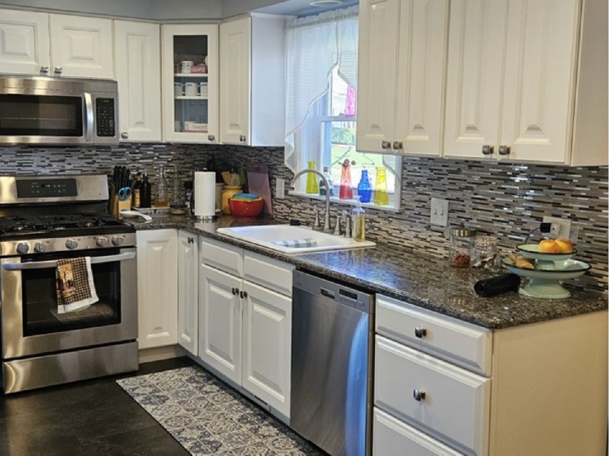 Wow! So much space in this lovely split-level home, ready for a new owner who appreciates creative design! Spacious living room has pocket door leading to kitchen/dining area for privacy when desired. Upgraded kitchen has plenty of cabinets, stainless steel appliances and easily removable floor tiles for cleaning up those spills! Home office on main floor can be converted to extra bedrooms with full bath nearby. Closet in main bedroom upstairs was converted into vanity space, but doors can be replaced if desired. Currently the second bedroom is a beautifully designed dressing room but could be easily converted. All closets have been professionally designed for maximum efficiency. Family room in lower level has plenty of space for various activities, also removable tiles for easy cleaning. Laundry and utility rooms are on lower level also. Owner is hoping to move out of state soon - selling as-is but home warranty is available on request. See it - love it - buy it!