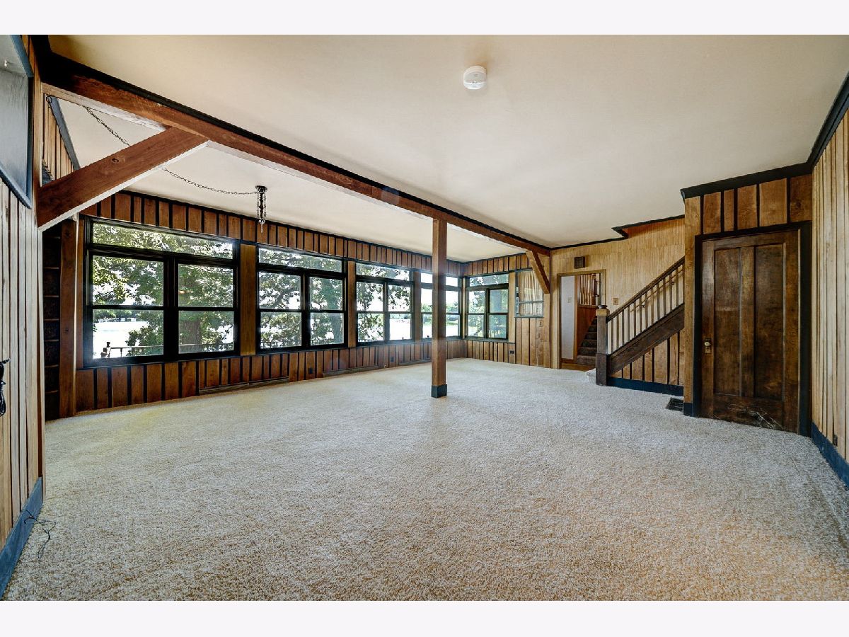 Gorgeous views from home and deck with this one! Several add-ons over the years, including a two car garage used as as one of two musician's spaces, above which a sprawling family room with fireplace plus Florida room and full bath. Seller converted 2 bedrooms into one large primary bedroom, could be restored to original. Small workspace with exterior access might be an office or musical instrument repair space. The lot lines do not go to the lake but the area between the house and the lake is protected. So, no flood zone and also reasonable taxes, the views are fantastic! PINs 0234103008 0234103009