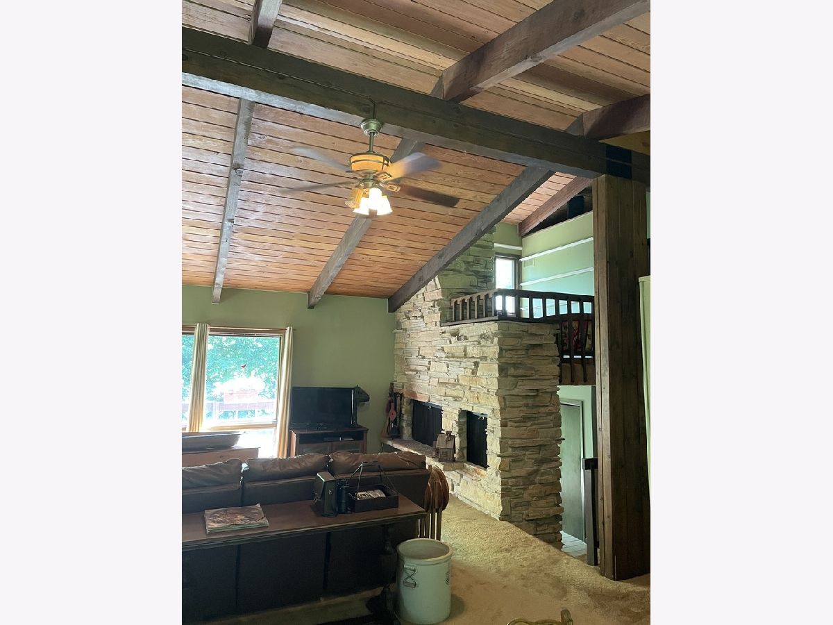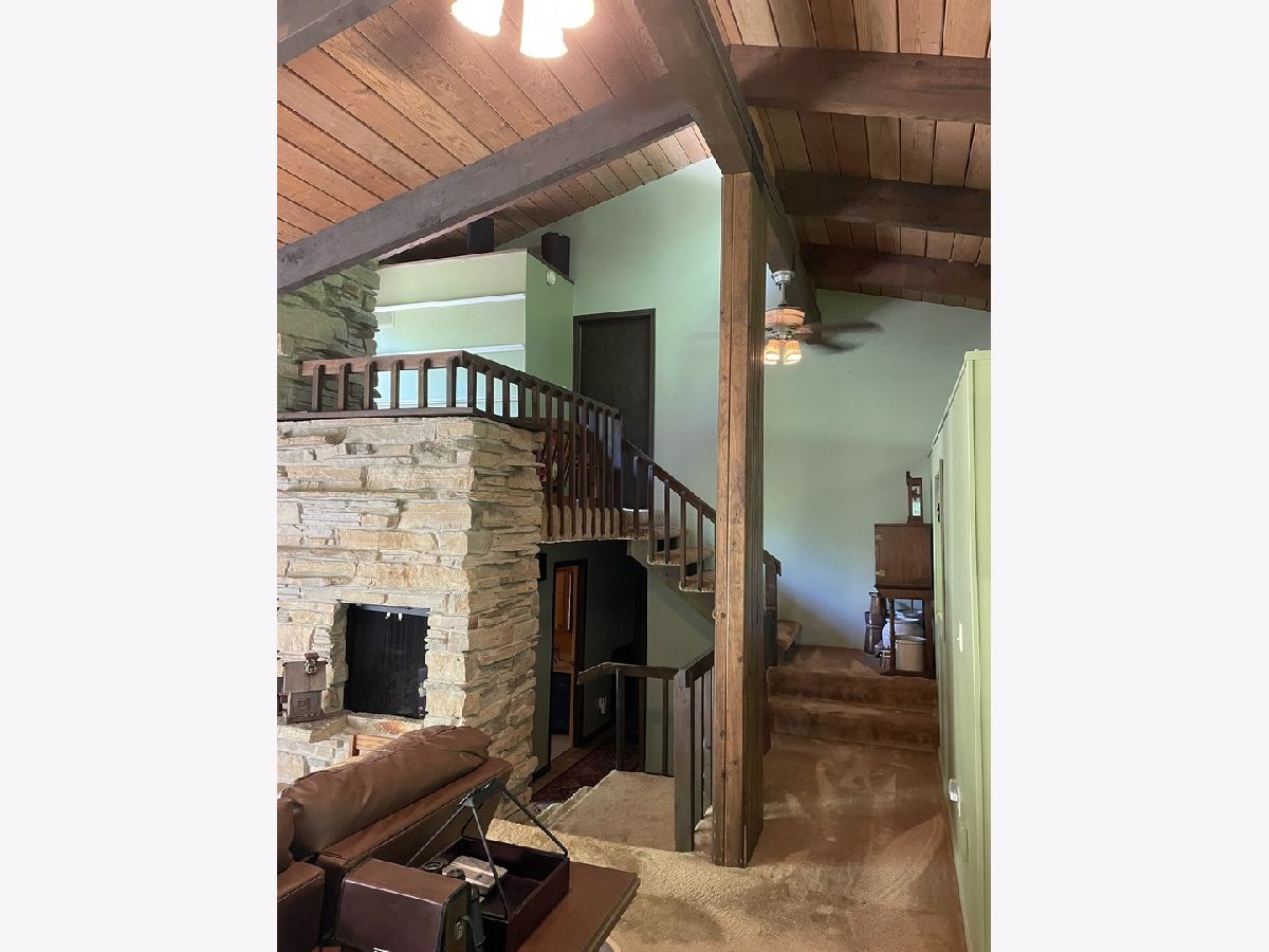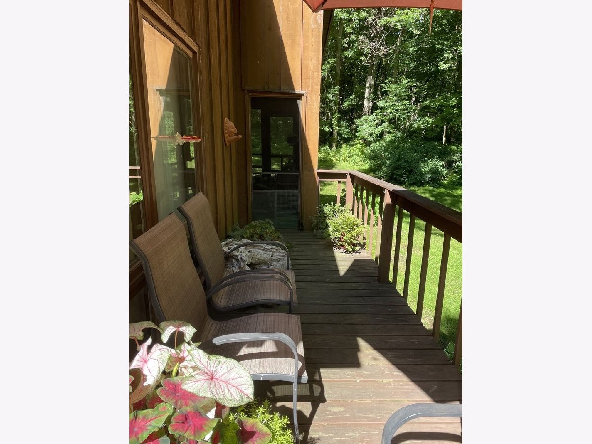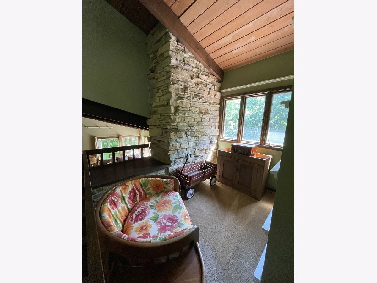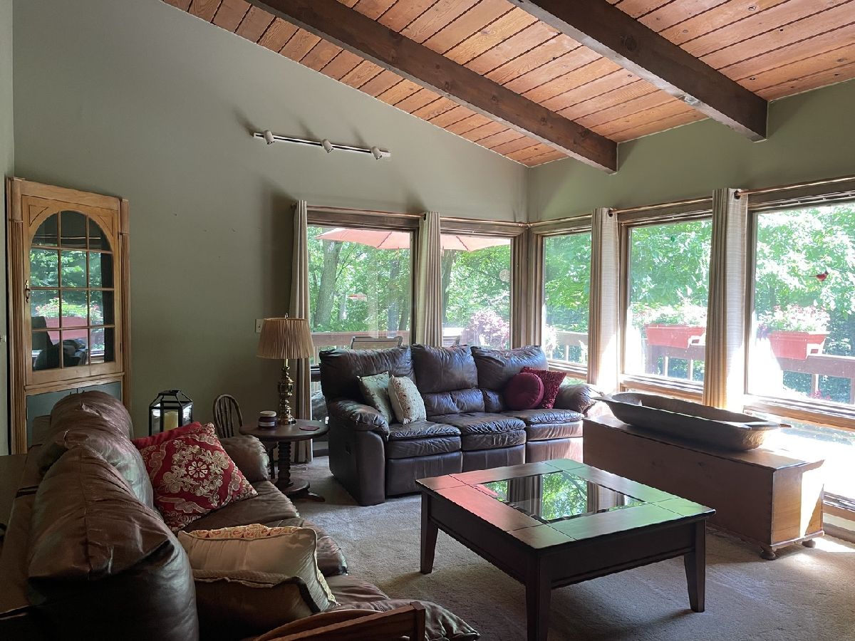 Frank Lloyd Wright style contemporary house nestled among the trees for ultimate privacy in a park like setting. What's not to love here? This 2 story home with walkout basement has 4 spacious bedrooms & 3.5 baths. An open concept from kitchen to living room and dining room with lots of windows and 2 skylights. This area also has vaulted ceilings with wooden exposed beams, beautiful limestone wood burning fireplace, bonus room for library, music or exercising and access to the screened porch. Kitchen has newer dishwasher, stove top, and marble cutting board. The master suit has a shower, jacuzzi tub and 3 large closets. The secluded large bedroom upstairs has its own bathroom. Their are 2more main floor bedrooms next to the laundry closet. The huge family room has plenty of room to entertain and a gas fireplace. Lots of storage in the basement and garage too. Home has newer A/C, furnace, hot water, well and pressure tank, and 2 Raynor garage doors. Great space and room outside the home as well. Lots of wildlife and colors to see in the spring, summer and fall. It's your move!