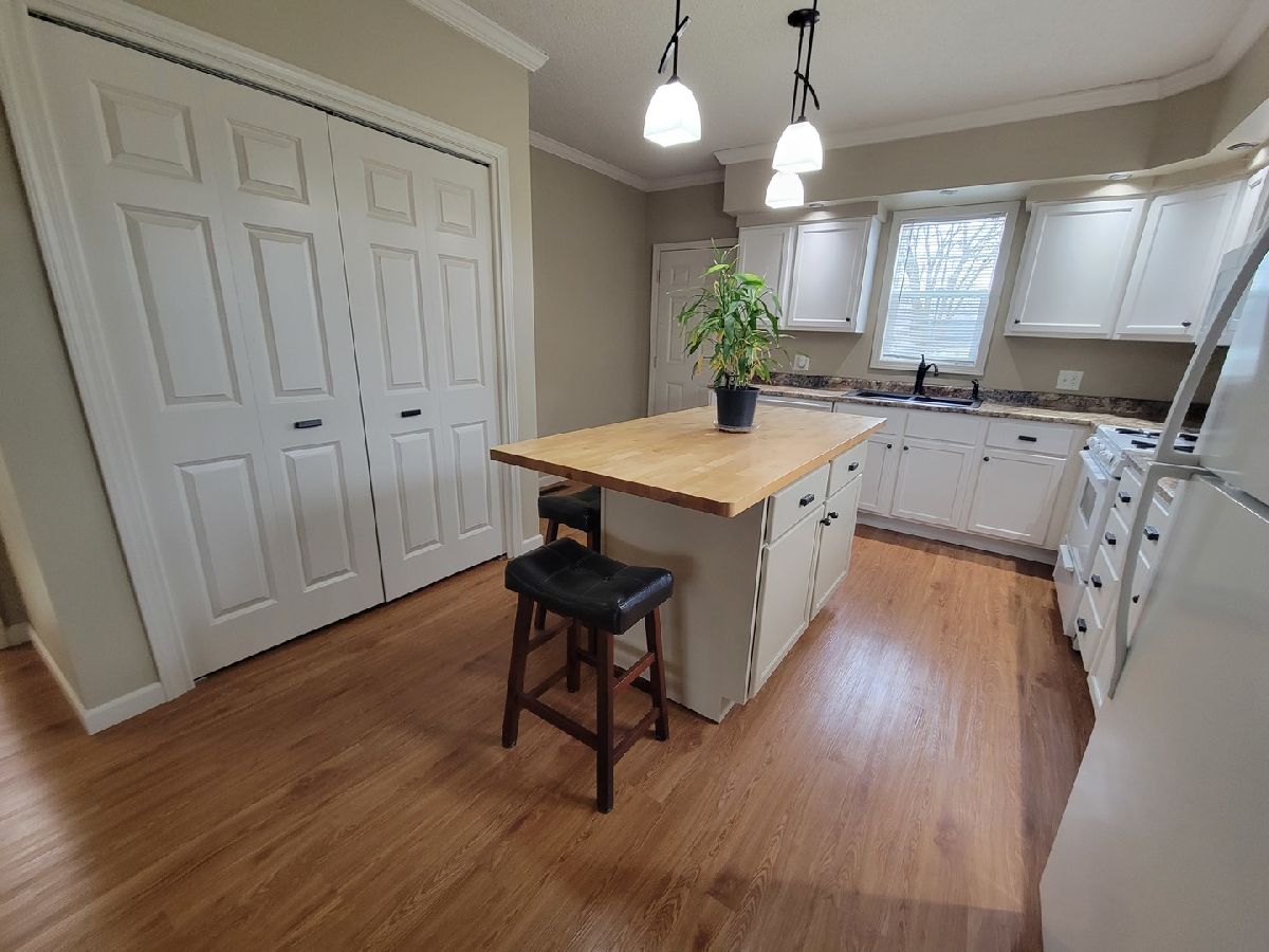 Completely remodeled 2 bed with 1 bath home which includes all appliances; Stove, Refrigerator (2019), Microwave (8/21), Dishwasher (Bosch), Washer, and Dryer. In the kitchen is an island that is moveable, the top is a nice butcher block countertop. You will also find a nicely updated bathroom with a corian countertop. In the large backyard there is a nice sized 12x16 shed, great for storage. Small vehicles could fit in there such as motorcycles, etc. There is also a nice sized parking area in back and room for a buyer to build a garage if the desire is there, with permits as needed, of course. In the front is a small covered porch too! Located near the end of the street ,very quiet area, low traffic. There is also a partial basement that would be good for storage. The water heater is dated at 2013 mol.