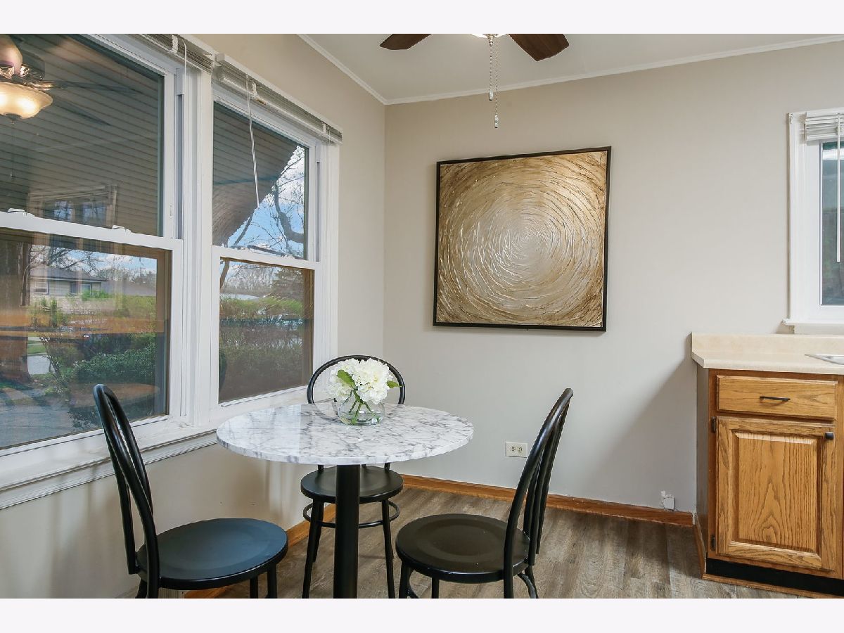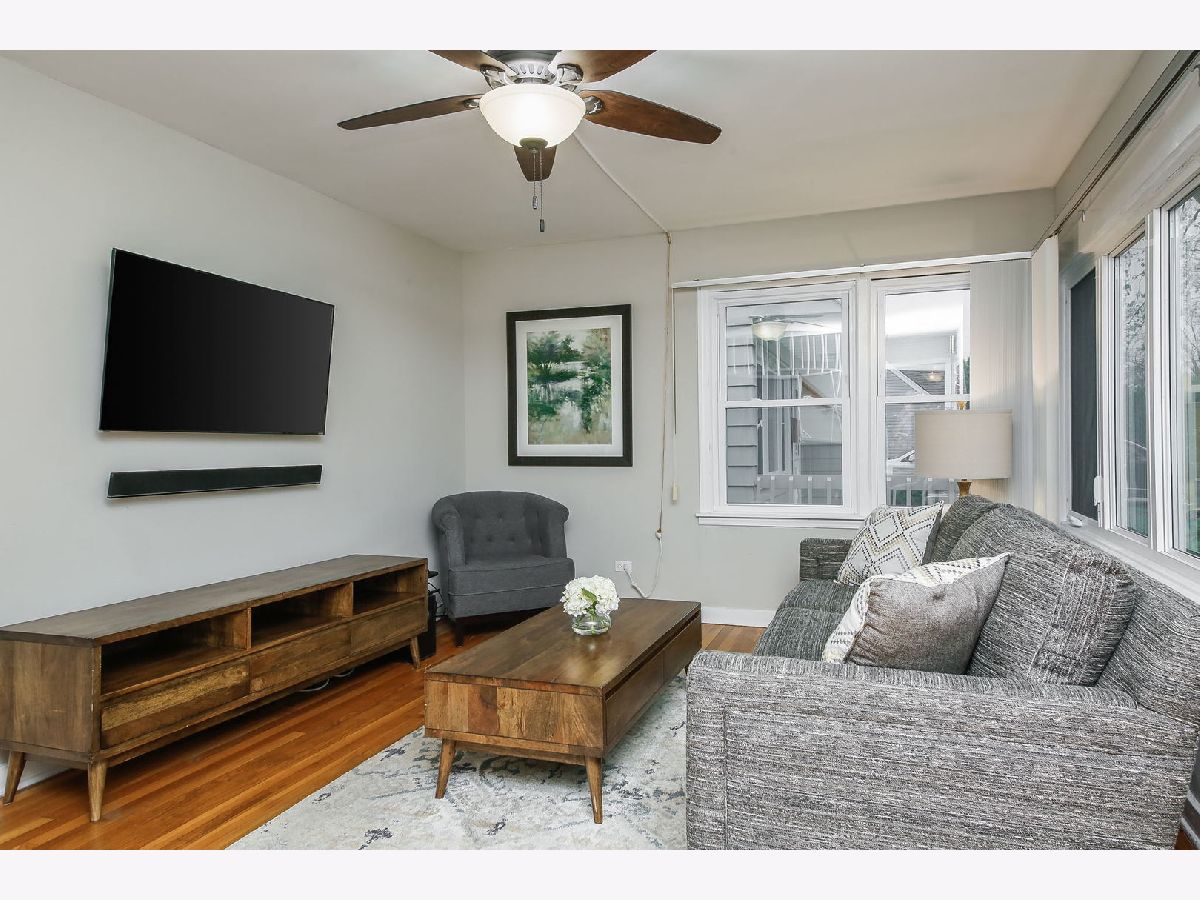 Welcome home to this charming Cape Cod! First floor highlights Oak Hardwood floors throughout living room and first floor bedroom. Wall-mounted TV and Sound Bar in living room stay! Updated full bath with soaking tub and large first floor master bedroom with generous closet space. Kitchen/dining room combo features updated vinyl plank flooring, and adjacent laundry/utility room with rear exit to spacious back yard and patio. Plenty of closet space on first floor and throughout! Second floor features 2 more bedrooms and bonus room off of one, perfect for playroom or office! Retreat to the large backyard with concrete patio and plenty of space for entertaining & gardening! Large side driveway with deep 1 car garage! Walk to North Terrace Park & Villa Park Skate Park and close to Jefferson Pool, downtown Villa Park & Lombard! Windows/Roof/Siding all replaced within last 10 years. Welcome home!