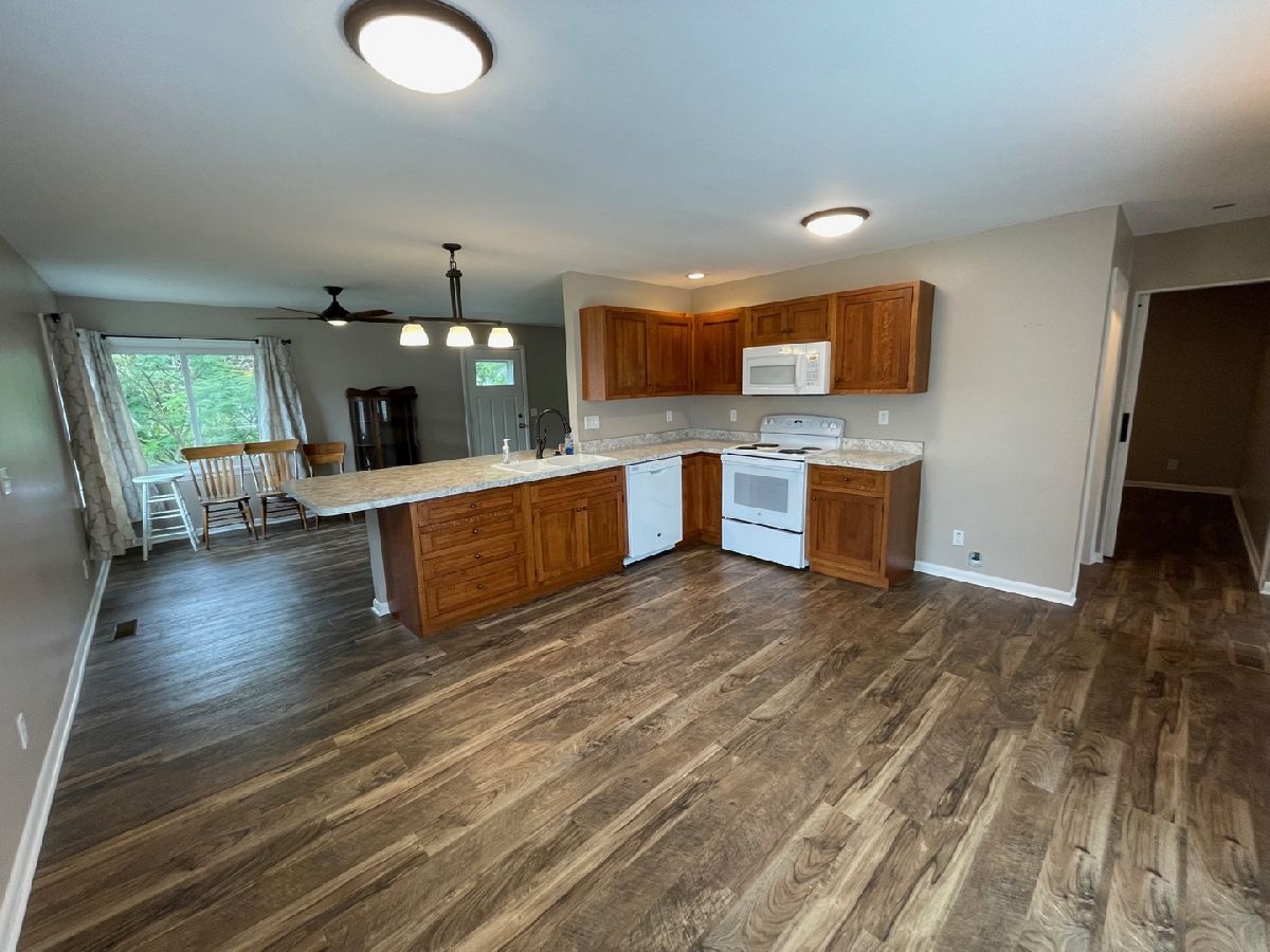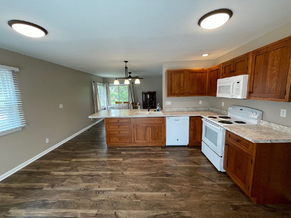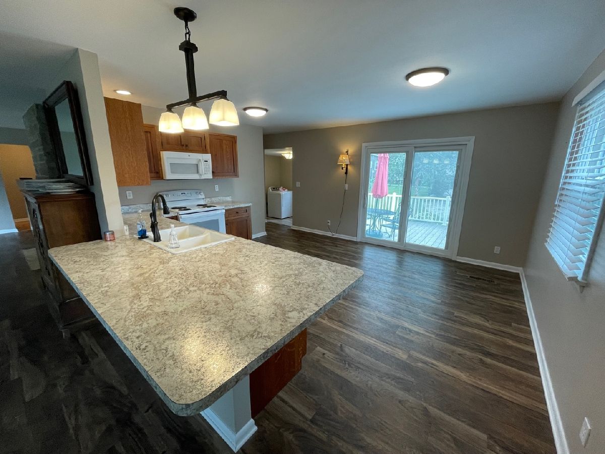 Beautifully remodeled home near downtown Arthur! Kitchen has been completely redesigned and remodeled and features Wilson cabinets with new countertops, flooring and appliances (oven/range, dishwasher and microwave). The wall between the dining room and kitchen was removed to allow for an island addition and a sliding glass door was added to the south wall. An en-suite full bathroom was added to the primary bedroom in 2020. All hardwood floors have been refinished and brand new LVT flooring was added in living, dining, kitchen, bathrooms and 1 bedroom. The central air conditioner was replaced in 2021. Plumbing was updated in 2020. The garage features new electric garage doors on the north and south entrances. Come see this home today!