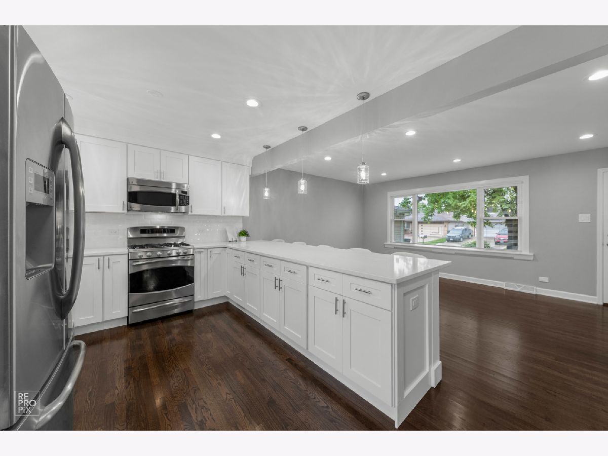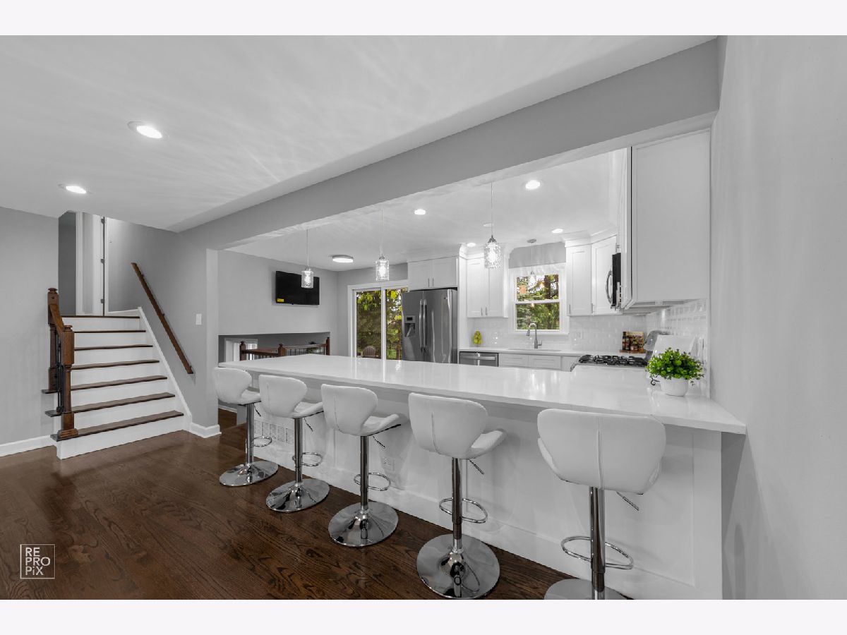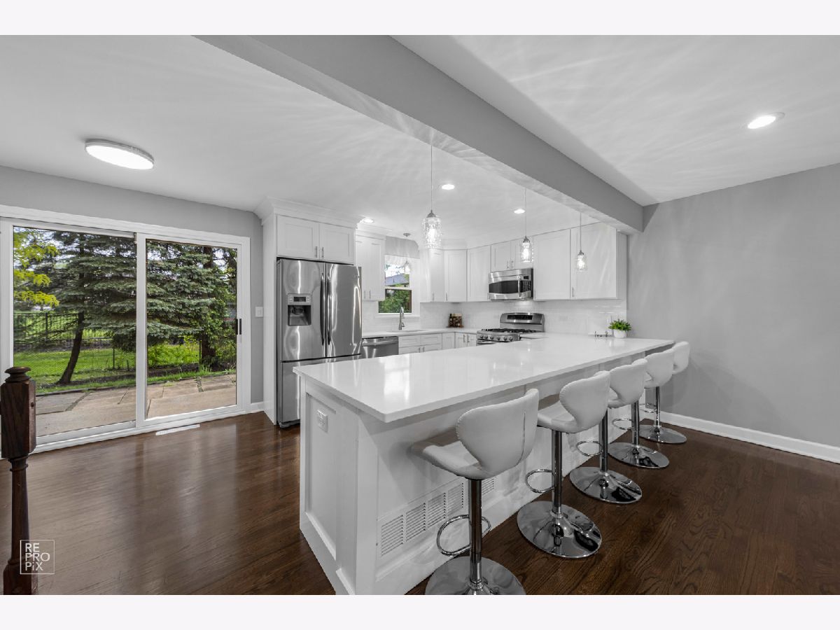 Absolutely gorgeous professionally remodeled 3 bedroom home in a desirable neighborhood in Palatine. New stunning kitchen with white cabinetry, oversized bar, luxurious quartz, SS appliances, light fixtures and ceramic tile backsplash. Hardwood/wooden floors throughout the house. Completely new two bathrooms. Large family room with the gas fireplace, dry bar and vine cooler. Brand new roof & new windows! Private fence backyard with mature trees, fire pit and big patio area for grilling and entertainment. Excellent location, conveniently located near the expressway, shopping, restaurants. * Waiting for your family! Just unpack and enjoy summer BBQs!