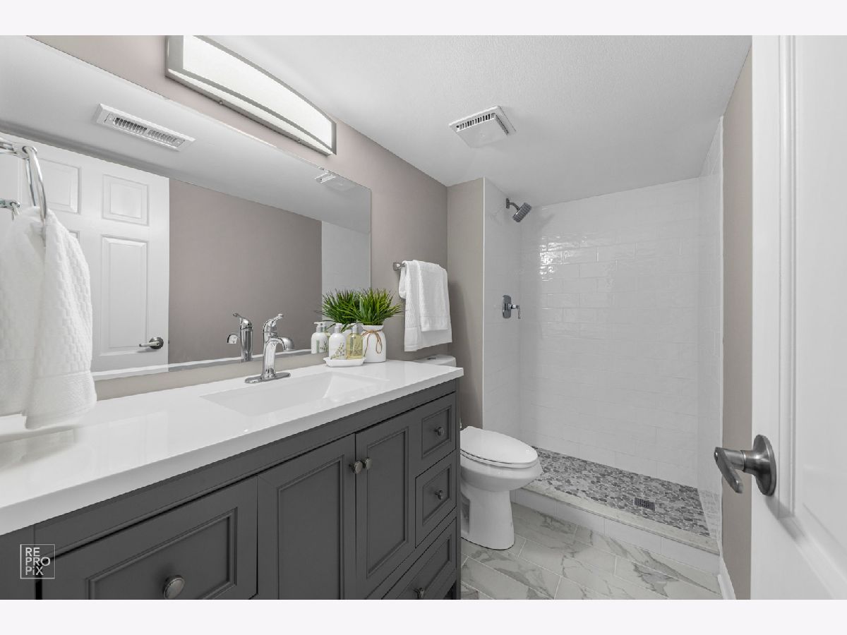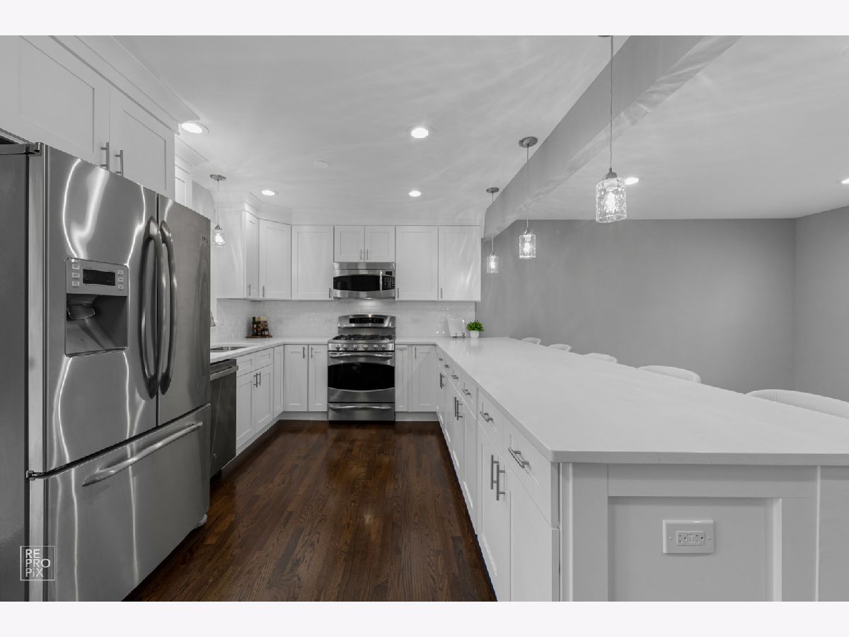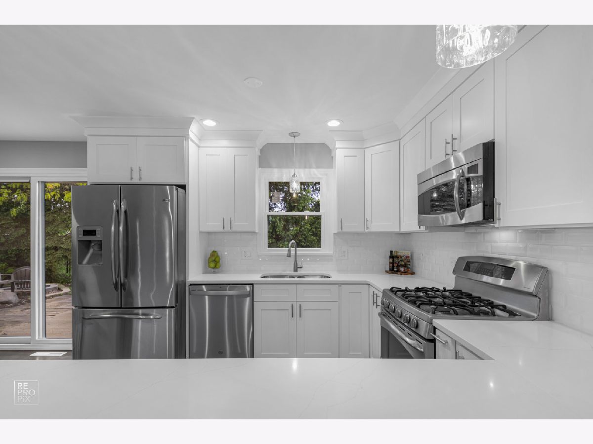 Absolutely gorgeous professionally remodeled 3 bedroom home in a desirable neighborhood in Palatine. New stunning kitchen with white cabinetry, oversized bar, luxurious quartz, SS appliances, light fixtures and ceramic tile backsplash. Hardwood/wooden floors throughout the house. Completely new two bathrooms. Large family room with the gas fireplace, dry bar and vine cooler. Brand new roof & new windows! Private fence backyard with mature trees, fire pit and big patio area for grilling and entertainment. Excellent location, conveniently located near the expressway, shopping, restaurants. * Waiting for your family! Just unpack and enjoy summer BBQs!