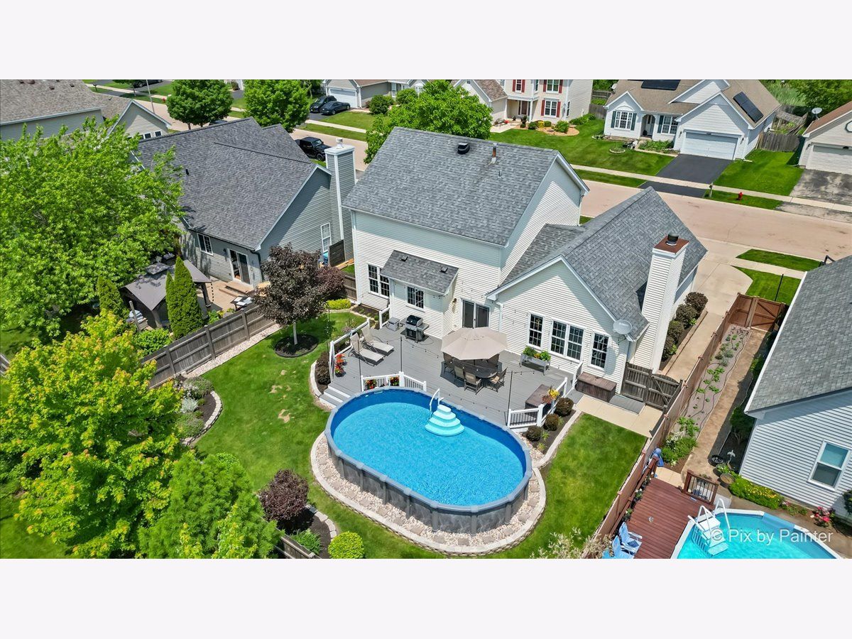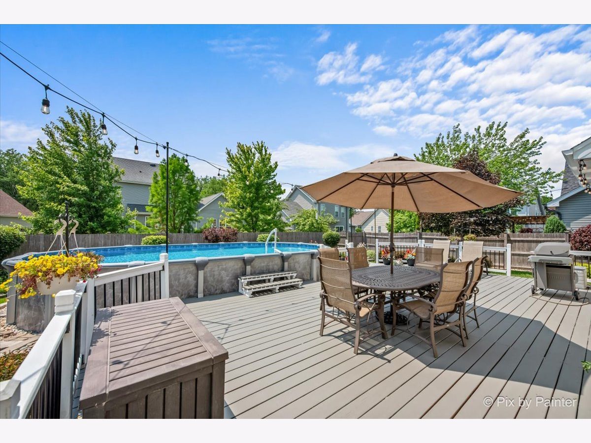 Welcome to the highly desirable Four Pointes subdivision in Kane County, within the sought-after Oswego School District 308! This beautifully updated 3-bedroom, 2.5-bath home offers nearly 2000 sq. ft. of living space and is move-in ready. The open-concept first floor features 9-foot ceilings and dark Pergo flooring, creating a warm atmosphere. Enjoy a separate living room, dining room with wainscoting, and a spacious family room-ideal for both formal and casual living. The updated kitchen is equipped with modern appliances, soft-close cabinets, and a cozy dinette area. A half bath and brand-new washer and dryer add convenience. Step outside to your private oasis with a spacious deck, perfect for morning coffee or summer BBQs. The new '23 above-ground pool, deck lights, and attached natural gas grill create the ultimate outdoor space for entertaining. With a 2-car garage and ample parking in the driveway, there's plenty of room for guests. Upstairs, you'll find 3 spacious bedrooms and 2 full baths, including a master suite with an updated shower. The fenced-in yard and beautifully landscaped exterior provide the perfect outdoor setting. With no HOA fees and easy access to parks, shopping, dining, and top-rated schools, this home offers comfort in an unbeatable location. Make a splash with this one-of-a-kind home!