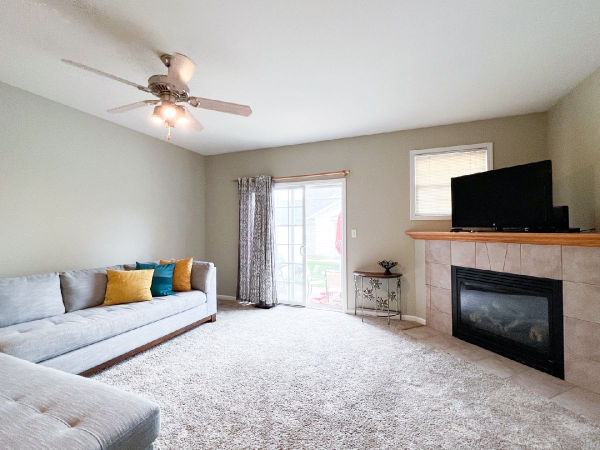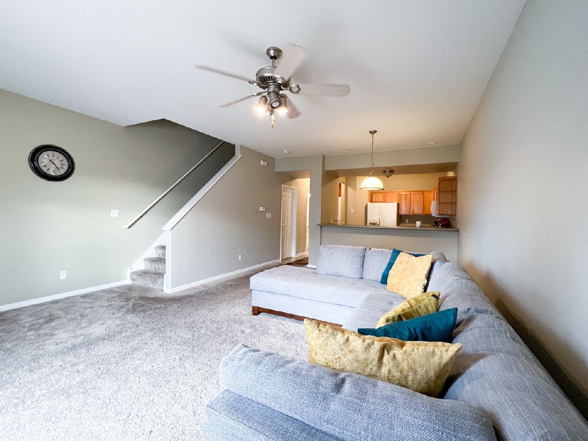 Welcome Home to this beautiful townhome!! First floor freshly painted!! Large recreation room in the finished basement with rough-in for a bathroom and spacious storage room. Great room with fireplace, cathedral ceiling and access to patio. 2nd Floor boasts, 2 Bedrooms with cathedral ceilings and double closets, laundry room and bathroom with primary suite access as well as hallway access. Southside of DeKalb with easy access to Rt88. Come check it out today!!
