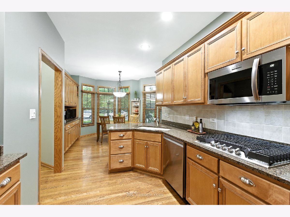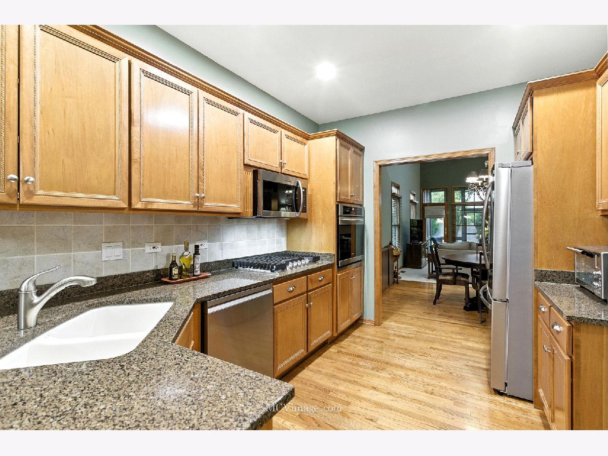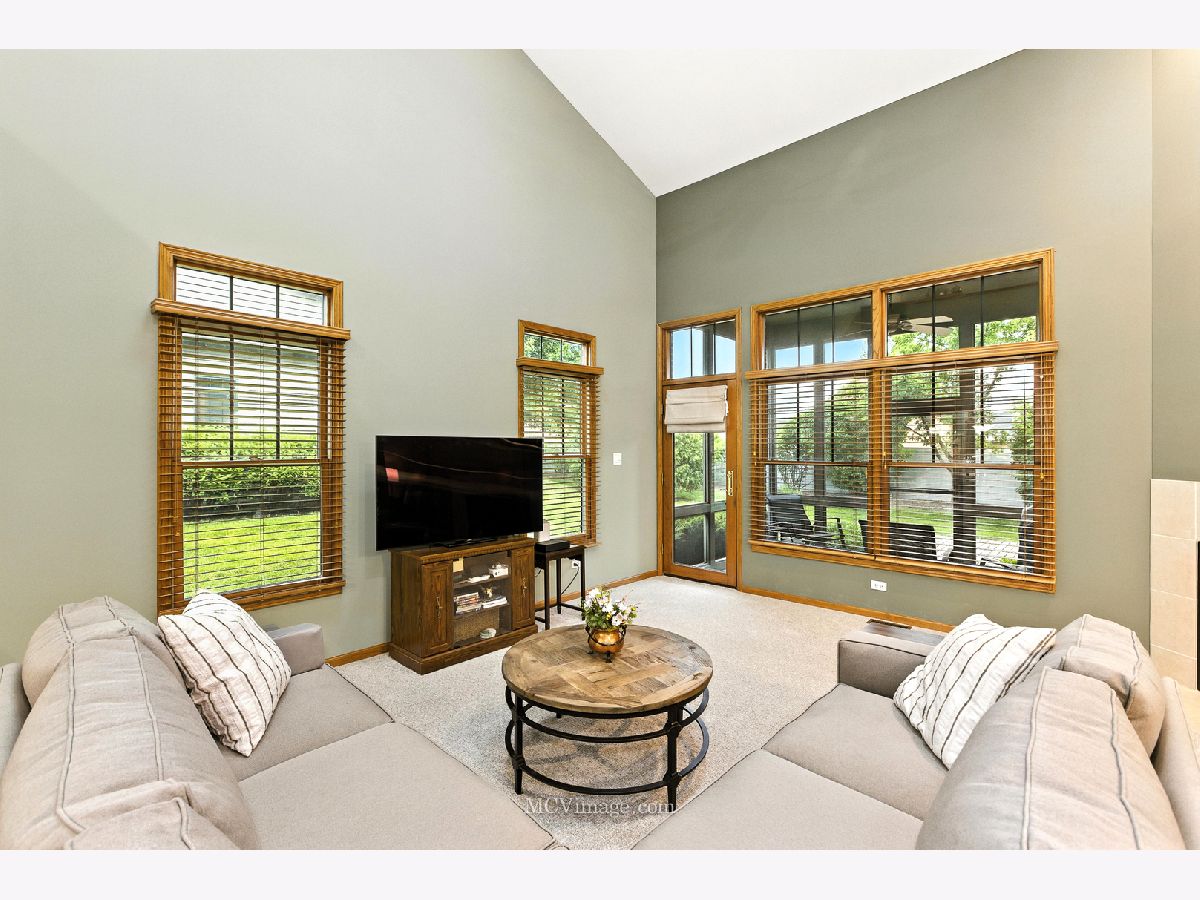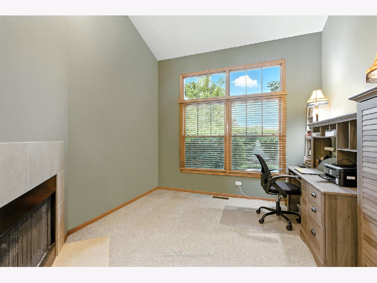 Charm, character and unique architectural details captivate you from the very first glance of this stunning, incredibly spacious END-UNIT townhome. Enjoy Founders Place, a picture-perfect subdivision that evokes all the feels of a "Hallmark" movie, complete with gorgeous neighboring homes, tree lined streets, charming gazebos and a serene ponds all just minutes from vibrant downtown Frankfort. The curb appeal is sure to impress, featuring a gated entry with elaborate brick posts and copper flashing on the front and side bay windows. This incredibly spacious, sun-filled home has dramatic vaulted ceilings, 9-foot ceilings on the main level and elegant glass transoms on the windows. There are 3 huge bedrooms with NEWER carpet (2024) (including a 1ST FLOOR PRIMARY SUITE), 2.5 bathrooms with NEWER toilets (2024). The incredible living room showcases soaring ceilings with skylights, a cozy multi-sided gas-log fireplace, and a convenient wet bar. The open-concept dining room flows seamlessly into the living area, making entertaining a breeze. Gorgeous eat-in kitchen boasts an abundance of cabinetry including a peninsula with seating for 2, granite countertops and NEWER Frigidaire stainless-steel appliances (2024). A sunlit dining nook features panoramic views and a full wall of cabinetry with a built-in serving station. Retreat to the expansive 1st floor primary suite, complete with a generous walk-in closet and a private bath featuring an oversized double-sink vanity with a makeup area, relaxing whirlpool tub, and separate shower. A multipurpose sitting room or den, located adjacent to the primary bedroom suite, is warmed by a cozy fireplace. Upstairs, a sizeable loft provides flexible living space for a family room, library or den and two additional large bedrooms, each with spacious closets. Zoned heating and cooling on the second floor ensures comfort throughout the home. You'll love unwinding in the inviting, lovely three-seasons room perfect for enjoying the outdoors in comfort. Step outside to enjoy the brick paver patio, surrounded by plenty of green space with mature trees and landscaping for privacy and tranquility. Hot water heater (2022), furnace and air conditioner (2017) carpet replaced throughout-out home (2024). Kitchen appliances and washer and dryer (2024) Sought-after neighborhood in incredible Frankfort location near downtown to enjoy shopping, dining and festivals - don't miss out!