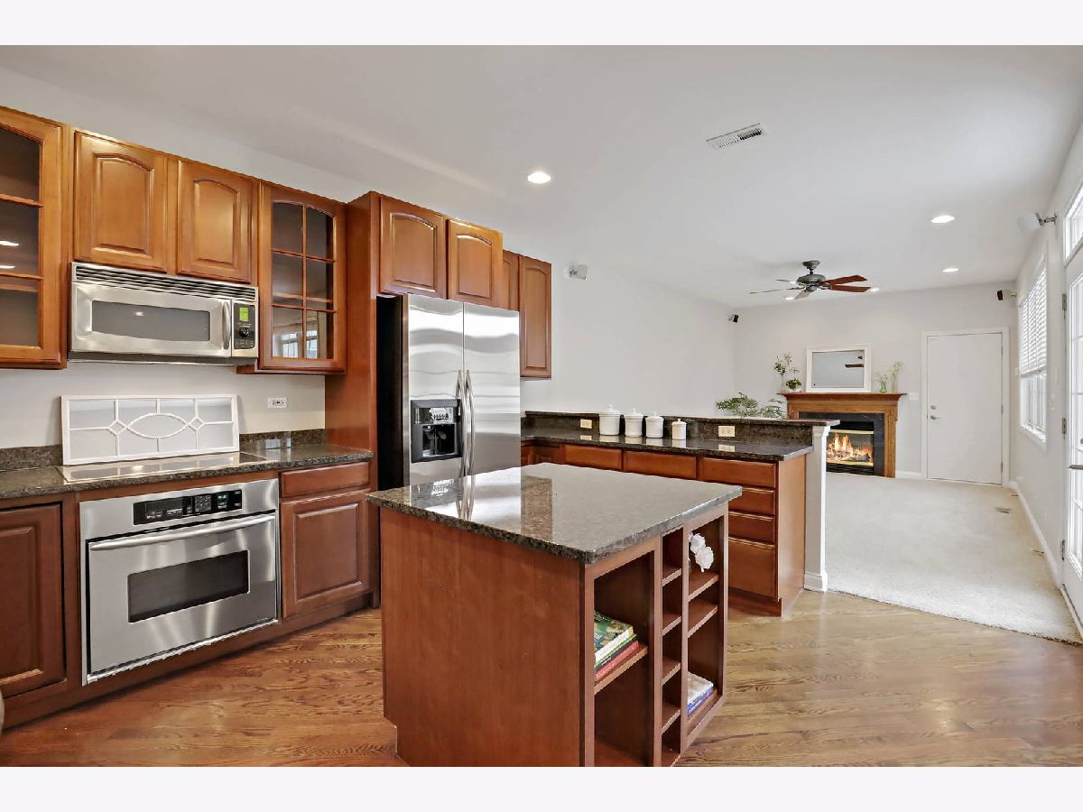 Gorgeous Townhome in sought-after location in The Glen. Steps away from restaurants, shops, train, school, park, tennis courts, Glenview paddle club, golf course, jogging paths, Kohls Children's Museum and so much more. The moment you enter the front door you will be impressed by the sprawling sun-drenched living room and dining room with gorgeous hardwood floors creating the perfect space for entertaining. The living room/dining room flows into the incredible chef's kitchen with stainless steel appliances, granite countertops, island with built-in shelving and seated breakfast bar completely opening to the beautiful family room with fireplace and creating the perfect floor plan for today's lifestyle. The family room opens to the private outdoor patio making warm weather entertaining effortless. There is an amazing large eat-in area with built-in cabinetry, granite countertop and wall of windows overlooking the patio. The 1st level also includes an updated bath, walk-in pantry closet and guest closet. The 2nd level primary bedroom suite is jaw-dropping! You will not run out of space in this incredible 25x15 primary bedroom features a stunning tray ceiling, lots of beautiful windows, and a large office/sitting room area. The spacious spa bath features a double vanity sink, separate shower, and soaking tub. The huge walk-in closet completes this incredible space. There are 2 additional bedrooms, full bath, and a convenient 2nd-floor. Just when you think it cannot get better, welcome to the sprawling basement with enormous recreation room, playroom area, beverage bar w/built-in fridge, 4th bedroom, full bath, and loads of storage. Attached 2 car garage. Don't Miss This One!