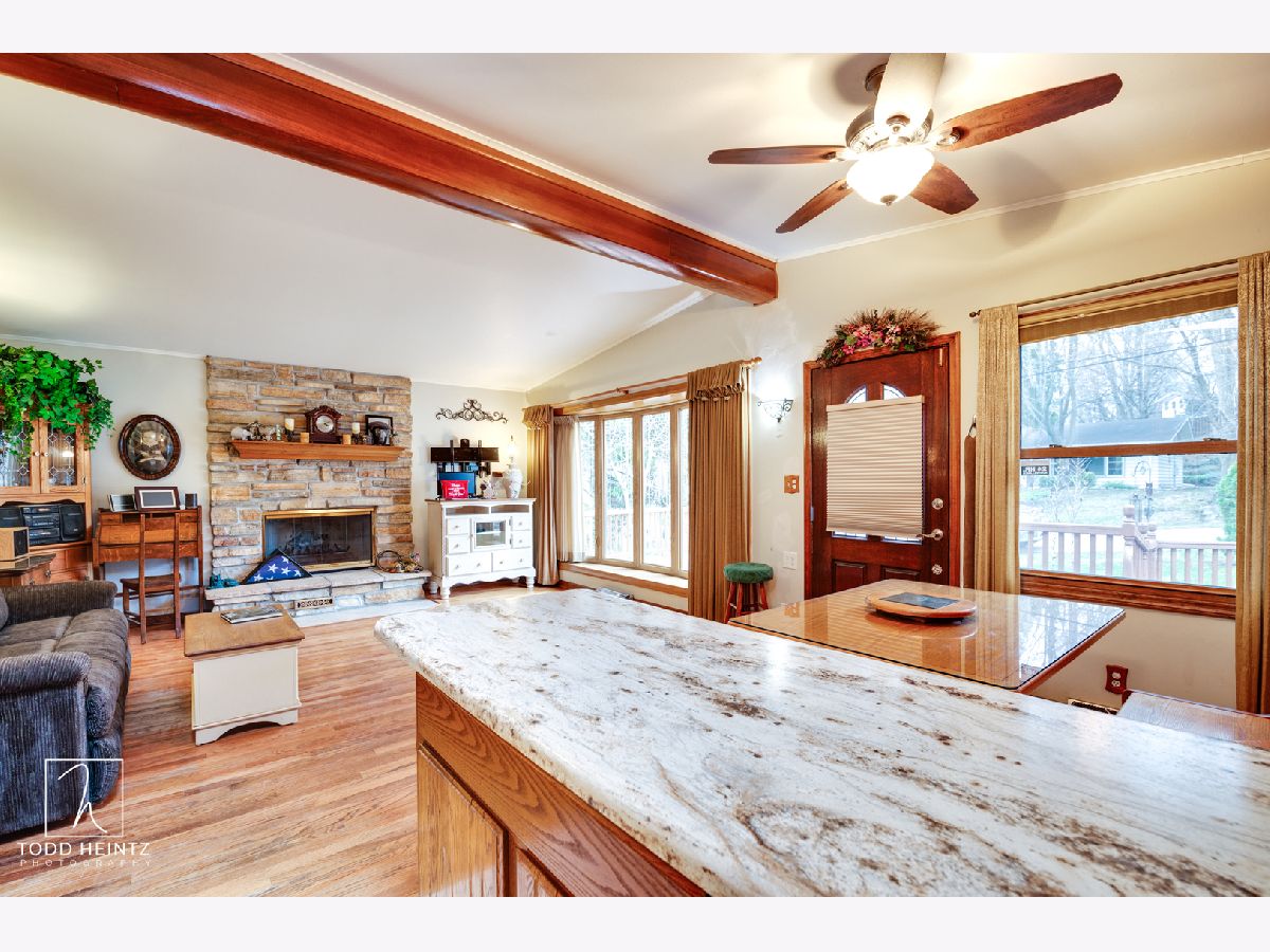 Beautifully cared for 3 bedroom home in Fox River Grove. Kitchen features solid wood cabinets with pull out drawers, skylight brightens the space, deep double Corian sink, new ceramic tile floor. Family room features gorgeous wood burning fireplace, bay window and hardwood floors. Bathroom features newly rehabbed floors and shower (2019). Newer Traco Windows. Full unfinished walkout basement with newer washer and dryer, utility sink, and working plumbing with lavatory that can easily be turned into a bathroom. (Approximate dates) New A/C (2020), Lennox Furnace (2018), Vinyl siding (2017), Water softener (2014), Water Heater (2016). Close to shopping, parks, train station and Norge Ski Jump.