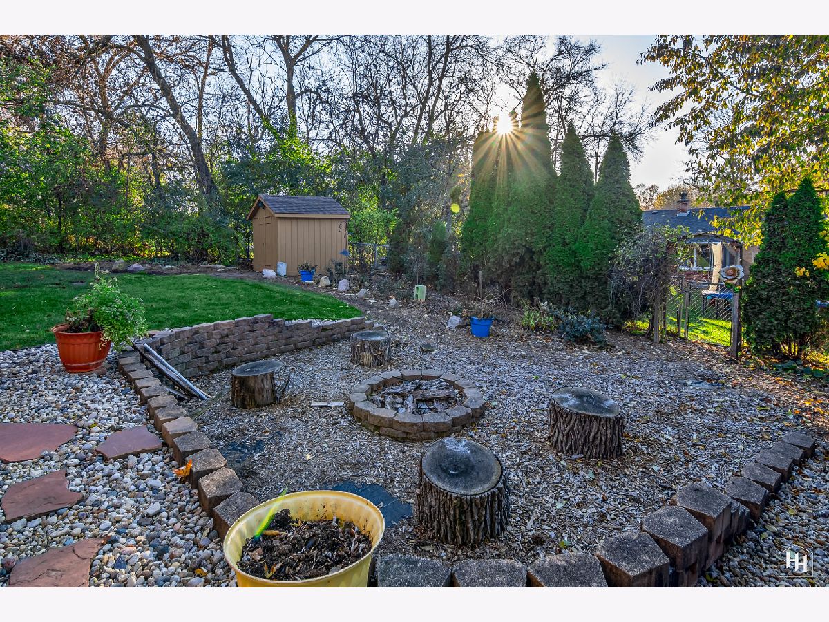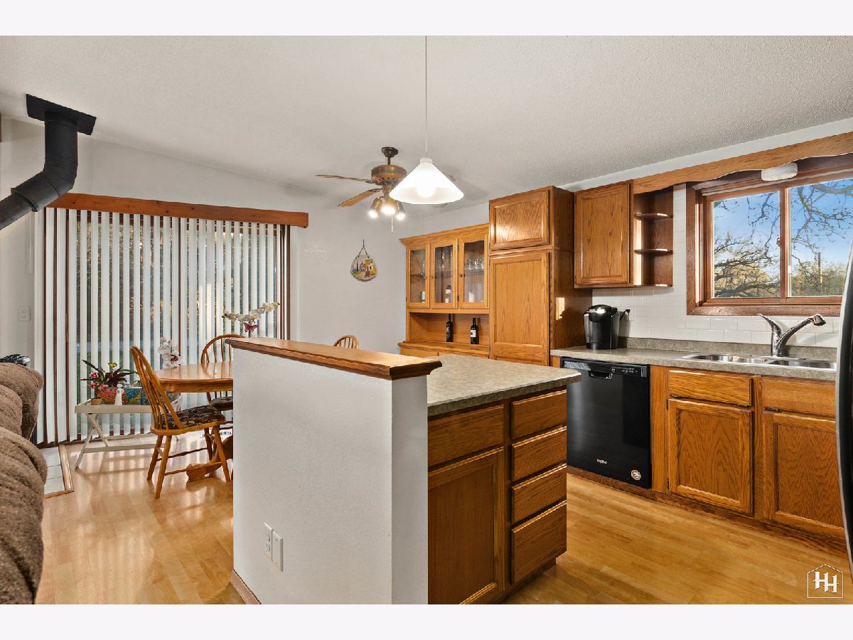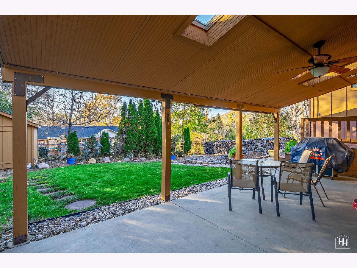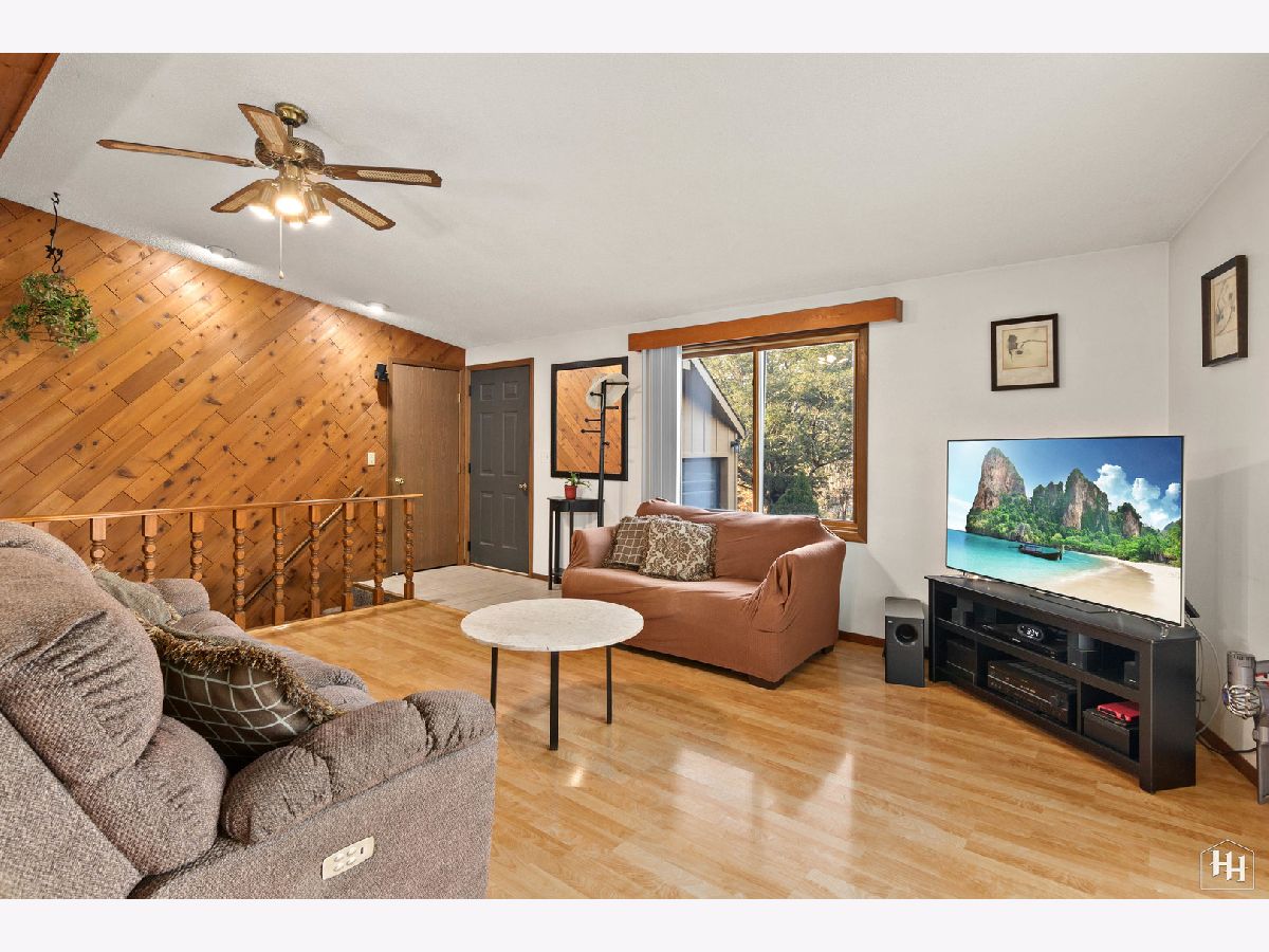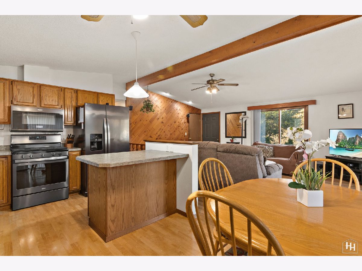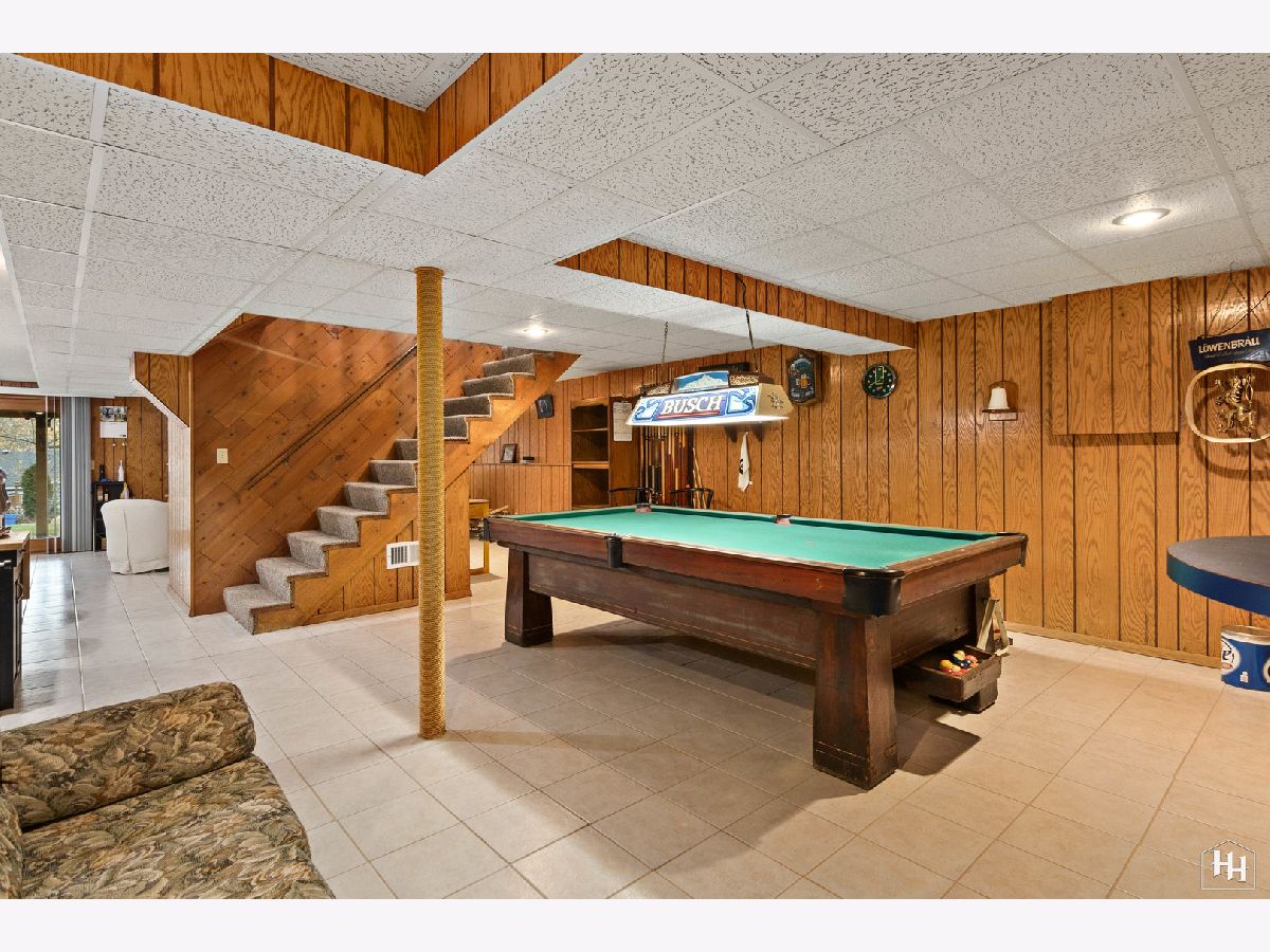 This 2 Bedroom 2 Bath ranch with finished walkout basement and 2 car heated garage sits on a lovely wooded lot. The main floor offers a great open floor plan with vaulted and beamed ceilings and wood laminate flooring. Beautiful open kitchen features a wood burning stove and center island, plus a dining area with backyard views. An adjacent living room offers tons of natural light. The primary bedroom includes carpeting and shares a spacious full bathroom with the second bedroom. Fabulous walkout lower level features a spacious family room with gas fireplace, comfortable wet bar, and game room that makes a great entertaining space. Walk right out to the large covered patio with ceiling fans and skylights, and beautiful backyard with a fire pit and garden shed. Lower level also includes a laundry room and full bathroom. Near downtown Fox River Grove with Metra train station, schools, parks, and outdoor recreation opportunities.