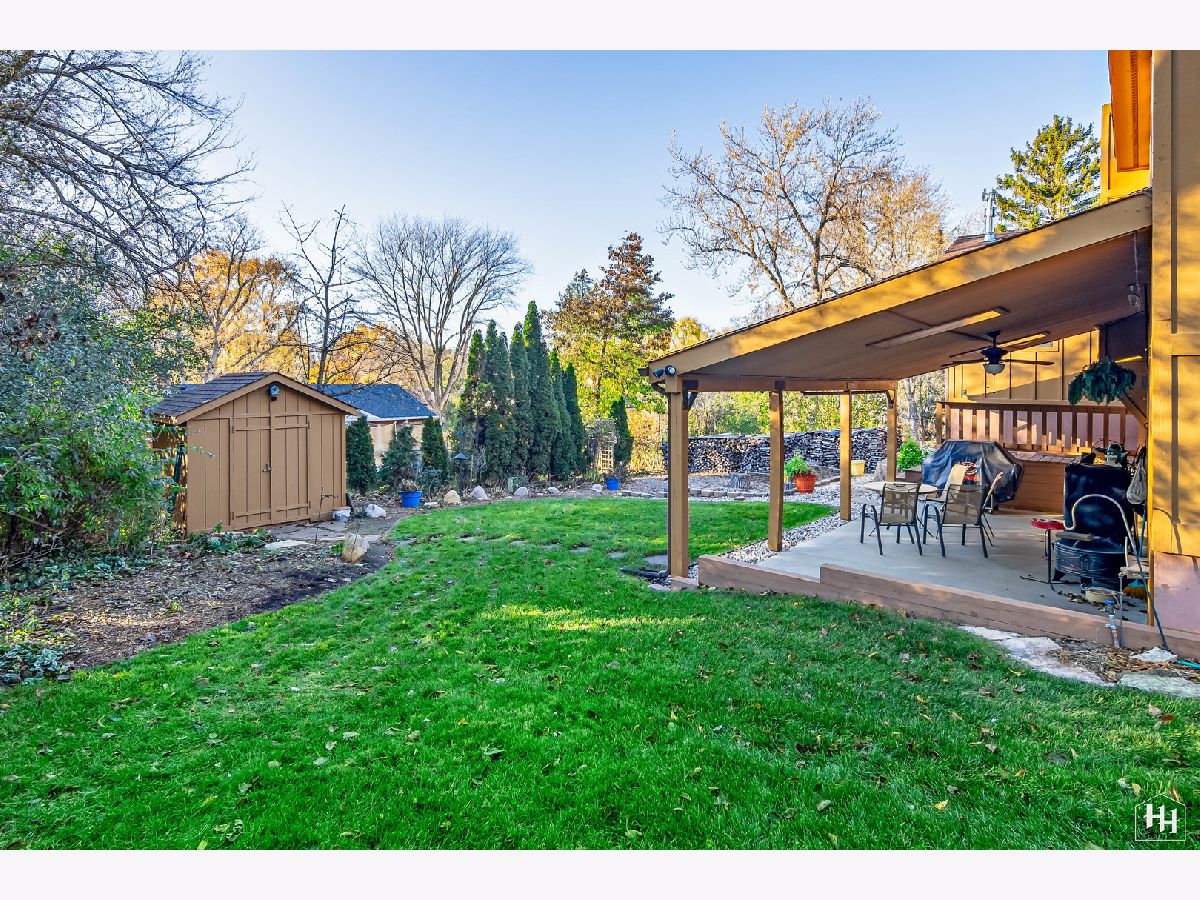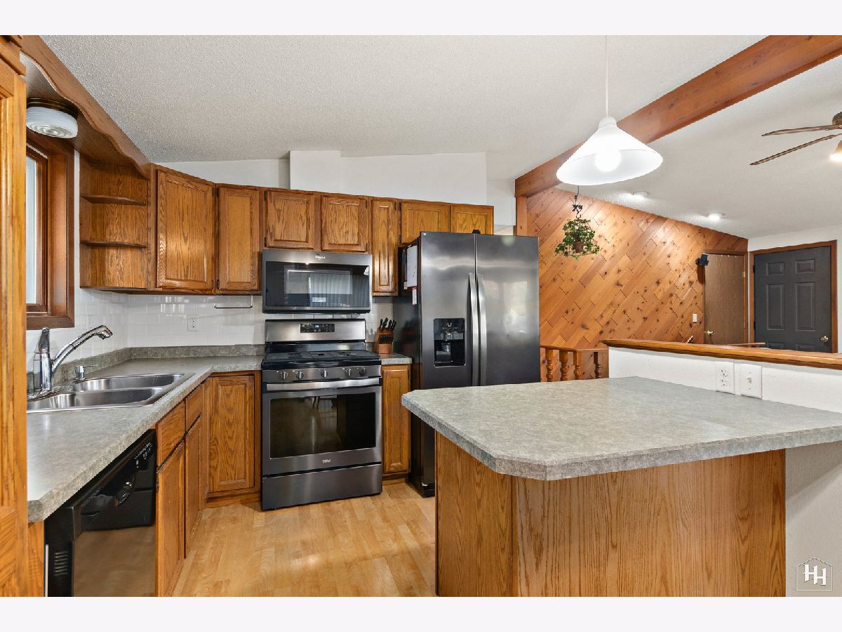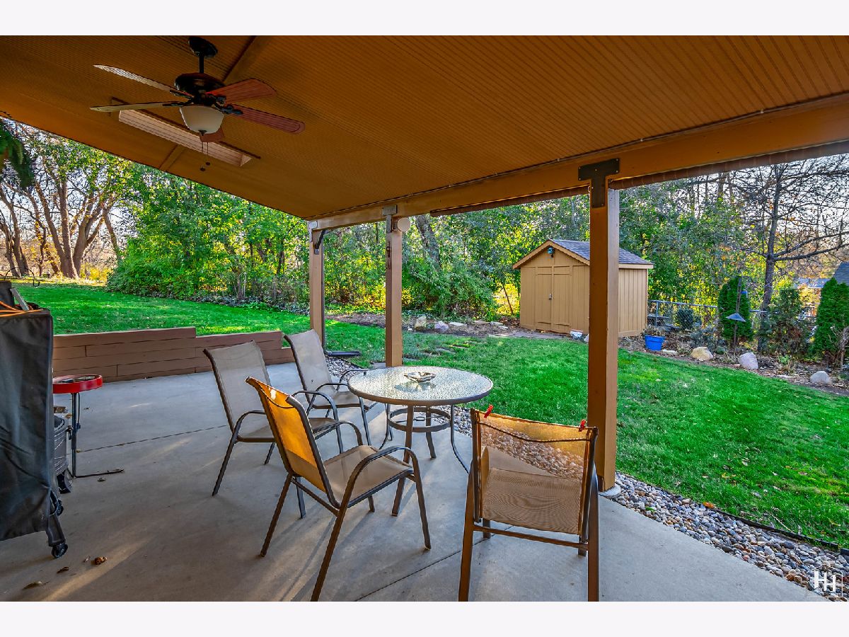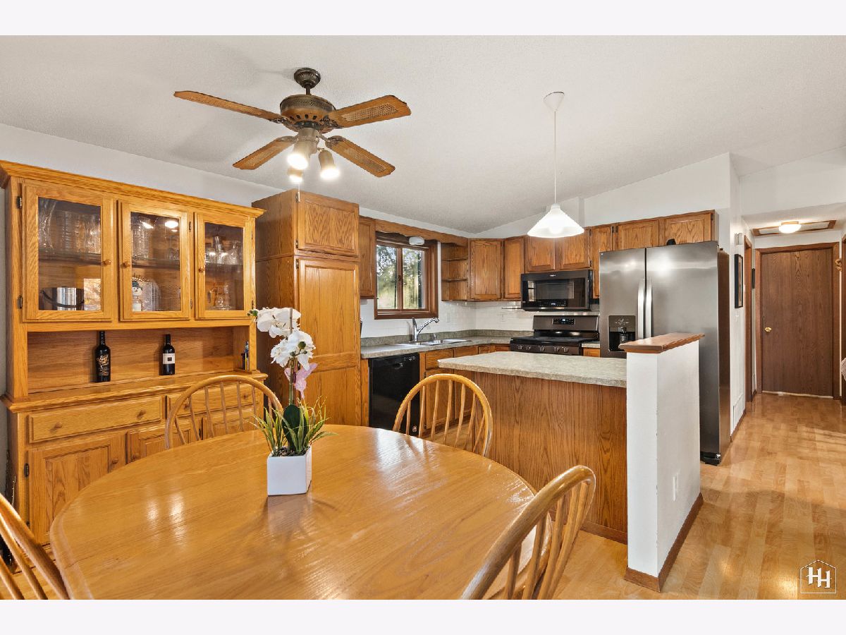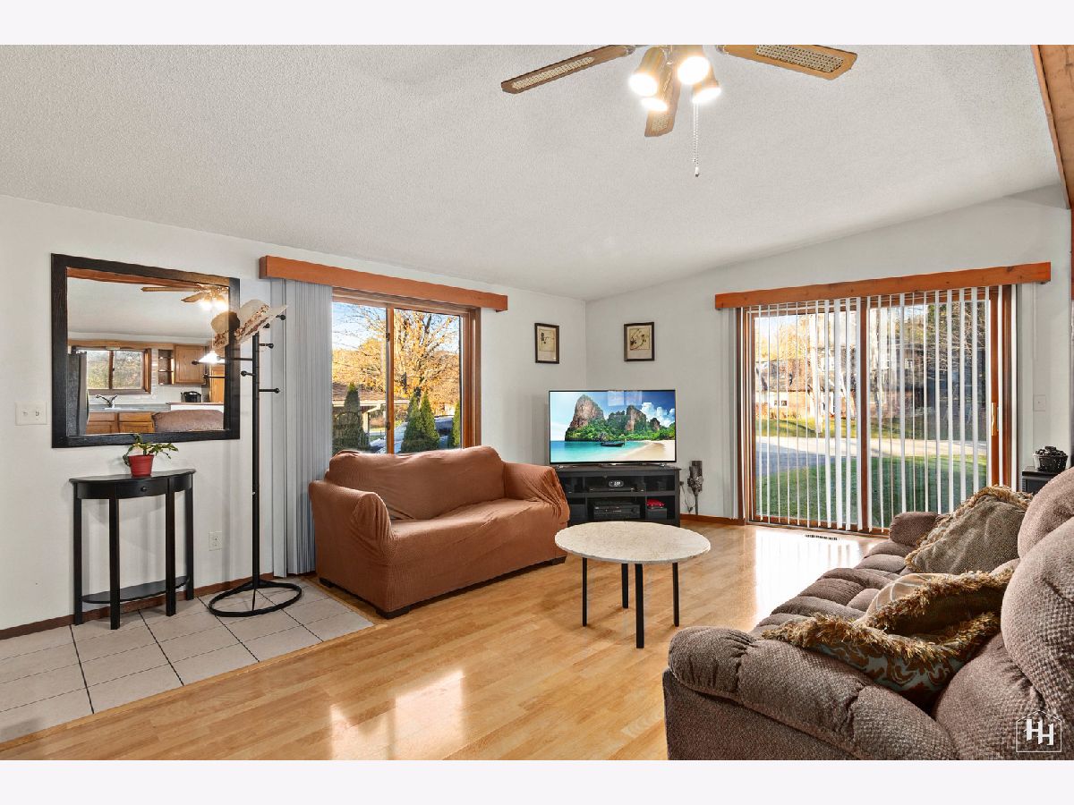This 2 Bedroom 2 Bath ranch with finished walkout basement and 2 car heated garage sits on a lovely wooded lot. The main floor offers a great open floor plan with vaulted and beamed ceilings and wood laminate flooring. Beautiful open kitchen features a wood burning stove and center island, plus a dining area with backyard views. An adjacent living room offers tons of natural light. The primary bedroom includes carpeting and shares a spacious full bathroom with the second bedroom. Fabulous walkout lower level features a spacious family room with gas fireplace, comfortable wet bar, and game room that makes a great entertaining space. Walk right out to the large covered patio with ceiling fans and skylights, and beautiful backyard with a fire pit and garden shed. Lower level also includes a laundry room and full bathroom. Near downtown Fox River Grove with Metra train station, schools, parks, and outdoor recreation opportunities.