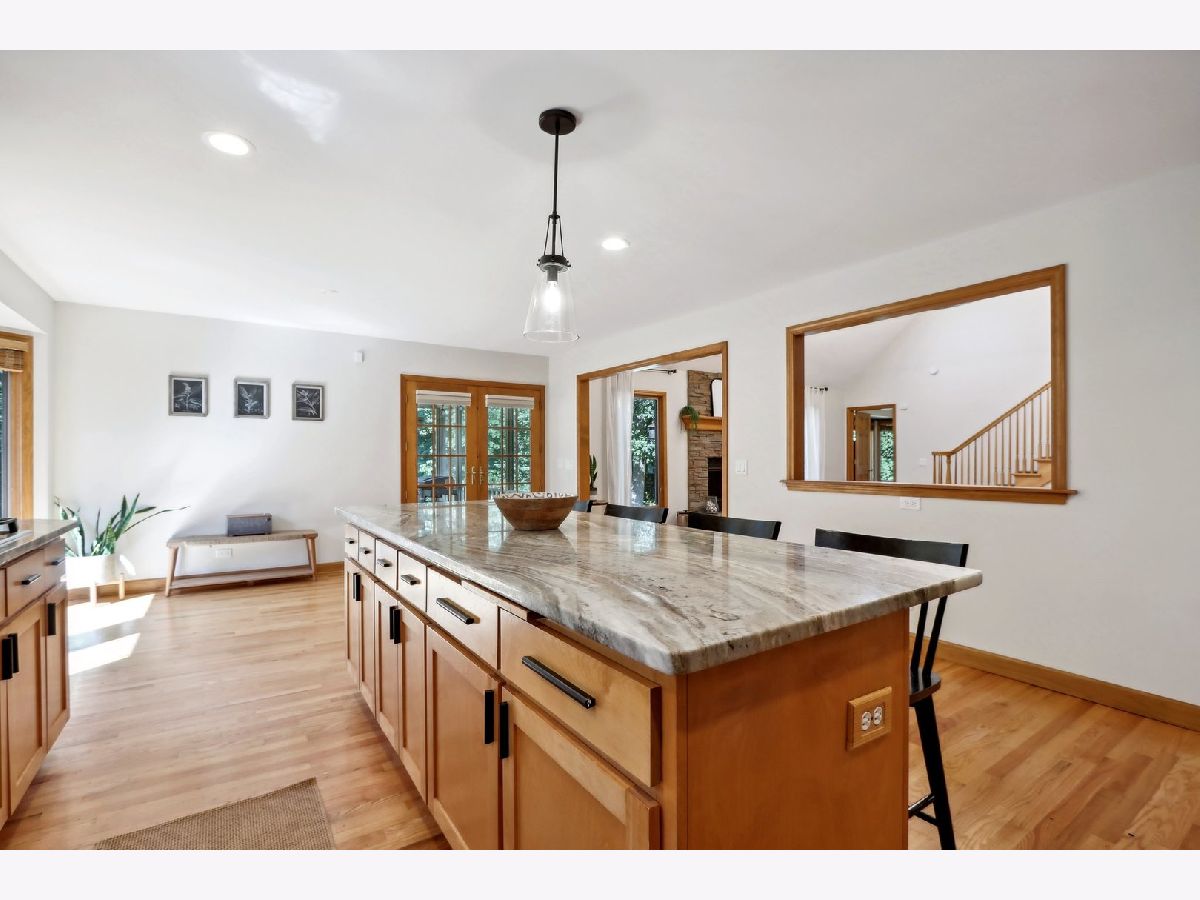 Discover your dream home in the coveted Koda Ridge subdivision of Marengo, IL. Situated on just over five acres of heavily wooded land, this property offers unparalleled privacy and tranquility. The estate is professionally landscaped providing both beauty and functionality. Three car garage with extra parking. Step inside to an expansive open-concept living space with cathedral ceilings that seamlessly connect the living room, formal dining room, and recently updated kitchen. The kitchen is a chef's delight, boasting granite countertops, maple shaker cabinets, and a premium GE Profile appliance package. The main level hosts three spacious bedrooms, including a luxurious first-floor master suite. The master bathroom has been thoughtfully updated to create a spa-like retreat, complete with a large walk-in closet featuring custom built-ins. New lighting throughout the home add to the modern feel. A large open loft offers flexible space, perfect for adding another bedroom, office, or any other need you may have. The loft also includes a half bathroom that can easily be converted into a full bath if desired. The full, unfinished basement is a blank canvas, featuring three egress windows, a new water filtration system, and upgraded electrical, ready for future expansion. Enjoy the outdoors in style with a newly rescreened and painted screened-in porch, an accent ceiling, and a brick paver patio equipped with an electric hookup, perfect for entertaining or simply soaking in the serene surroundings.Don't miss this opportunity to own a slice of paradise in Koda Ridge-your private sanctuary awaits! Agent Owned.