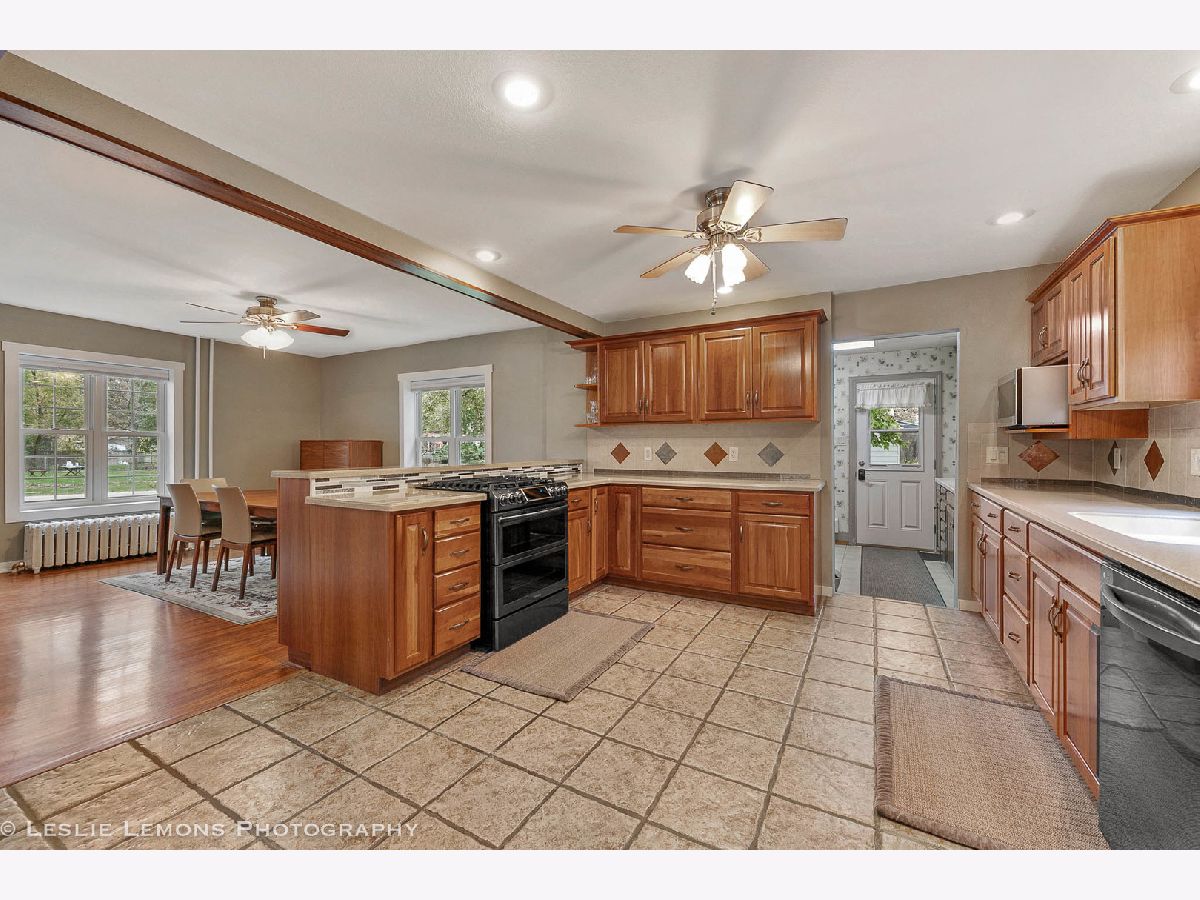 What a simply beautiful home! Nothing to do but move right in. Home boasts almost 1900 sq feet of living space with 3 large bedrooms, 1 and 1/2 updated modern bathrooms. Home is very spacious with a large living room, 2 dining areas, plus a bonus room that could be used for that home office, playroom, or just use it as a sitting room. Possibilities are endless. The new kitchen is open concept to the dining areas and includes new appliances, Corian countertops, heated floors, and soft close cabinetry. You will love to cook in this kitchen! The back entrance opens to the laundry room/mudroom with counter space for folding and a sink for soaking clothes or washing up. The oversized 2 car garage has a workshop area to the back for your hobbies or extra storage. Home has newer windows and newer roof. Windows are set up to allow that beautiful sunshine in. Yard is perfectly manicured with loads of perennials that come up each year. This home has been perfectly maintained and only high quality items have been used to update throughout the sellers many years of ownership. Enjoy small town living with the park right across the street and the school within walking distance. Schedule your showing today!!