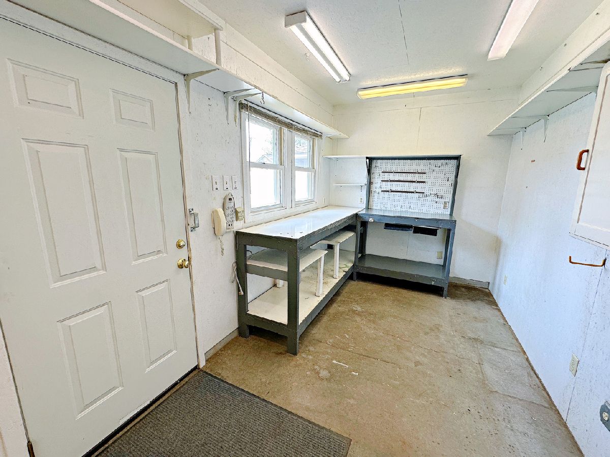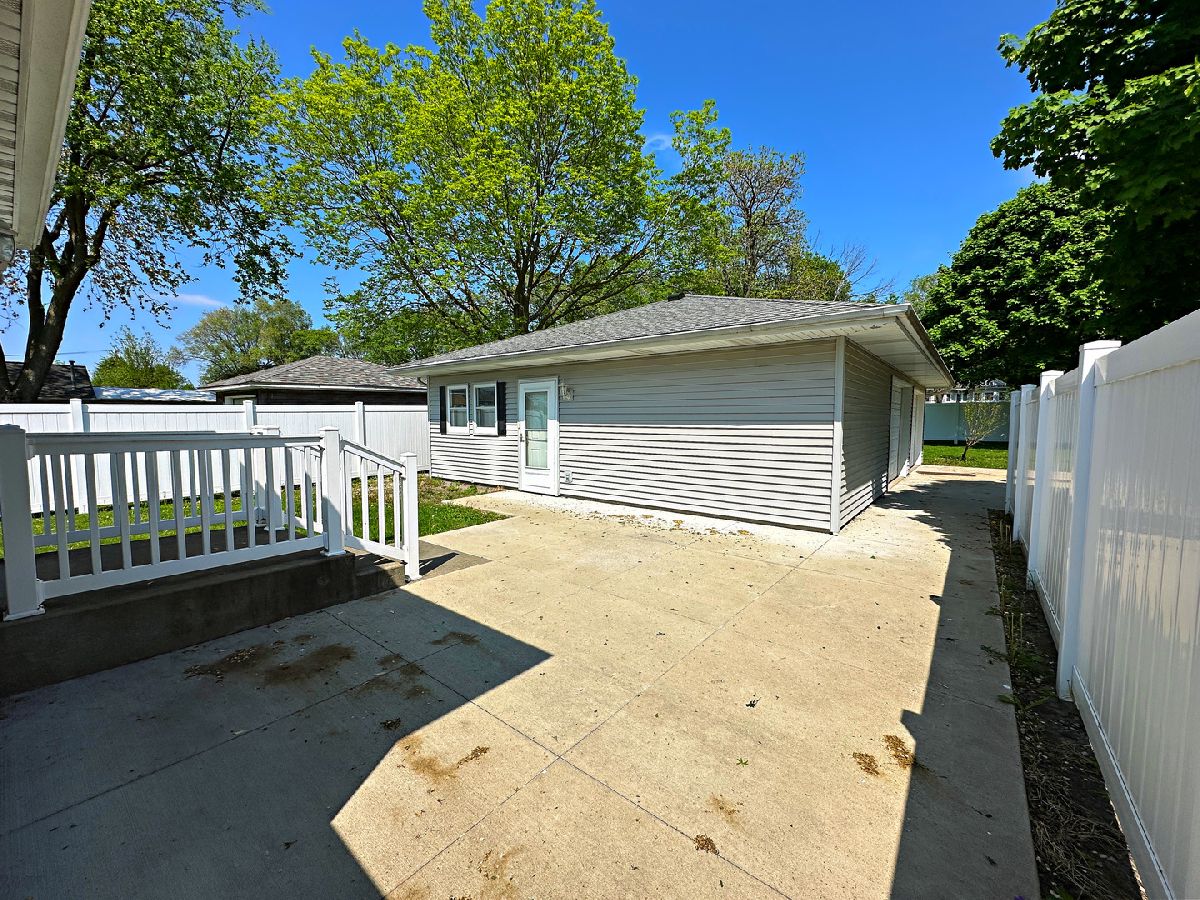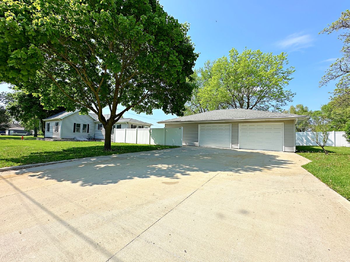Welcome to this spacious and updated 2 bedroom, 1.5 bathroom home boasting over 1,200 sq ft of living space on a desirable corner lot. This charming residence features impressive curb appeal with an updated exterior, a covered front porch, privacy fencing, a private concrete patio, and a newer concrete driveway. Inside, you'll find oak woodwork, 6-panel doors, newer flooring, and updated windows throughout. The welcoming foyer opens to a large living room, while the generously sized kitchen offers abundant cabinetry, ample counter space, a breakfast bar, and included appliances. The oversized master bedroom features a private half bathroom, and the second bedroom connects to a remodeled full bathroom with a walk-in shower. A spacious family room with large closets rounds out the living area. The full basement provides excellent storage and includes a washer, dryer, and utility sink. Completing the property is a standout 2 car garage with a dedicated workshop or hangout area perfect for hobbies or entertaining and conveniently located next to your private backyard patio. Come experience the appeal of this home for yourself!