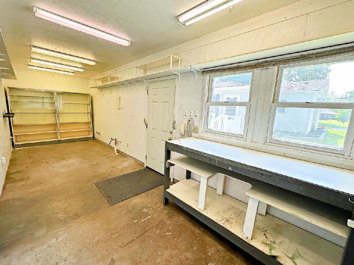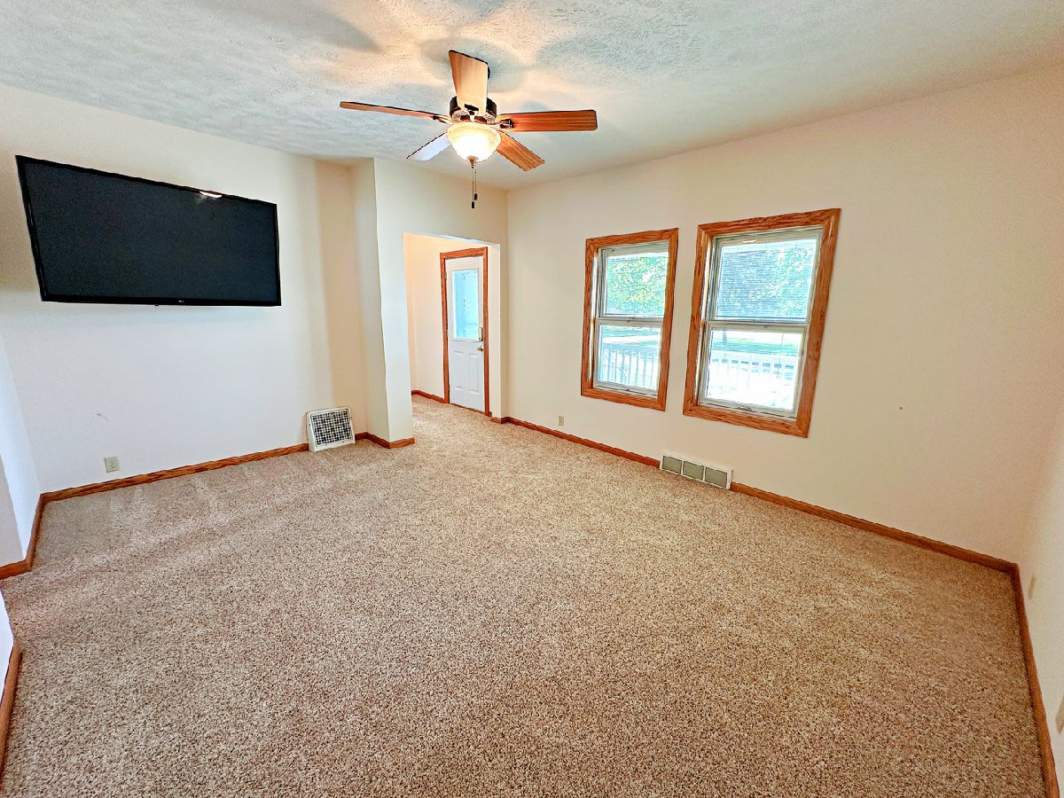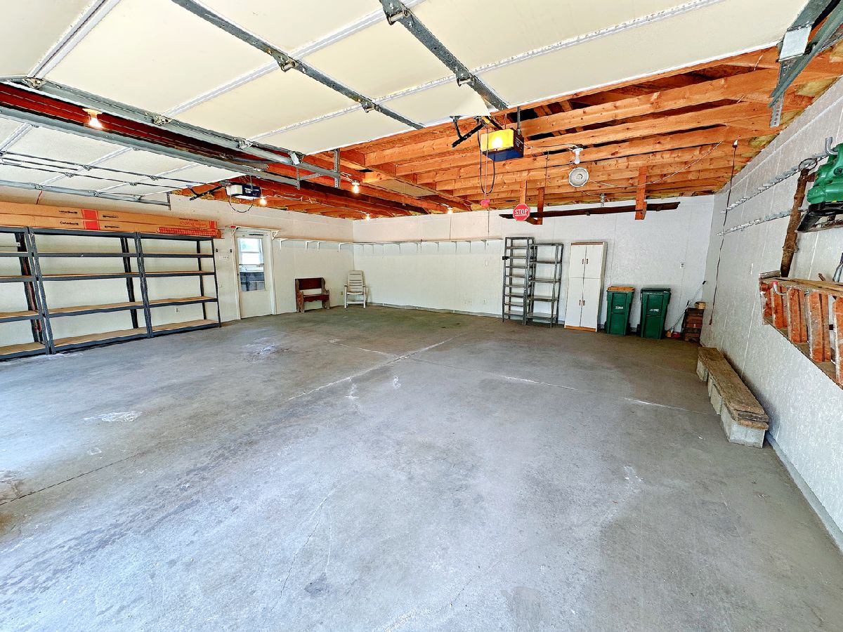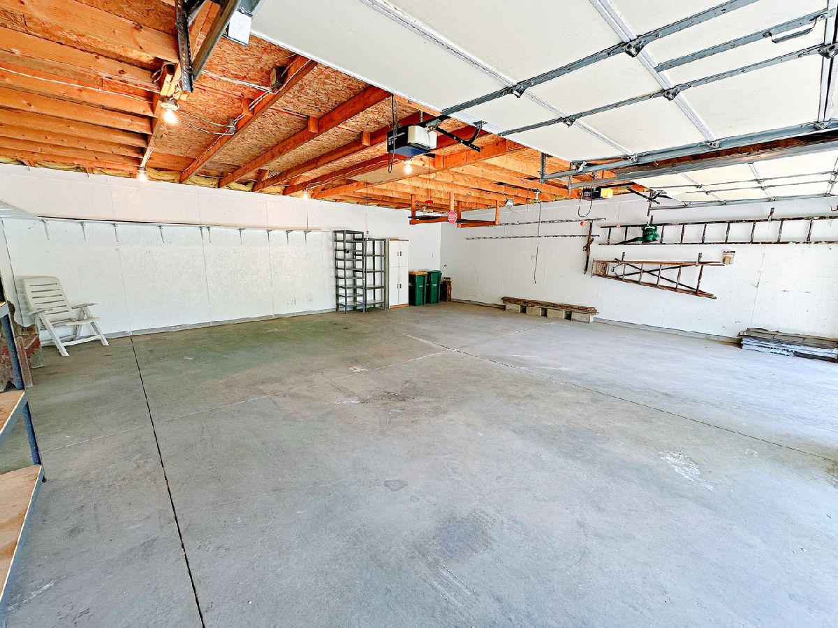 Welcome to this spacious and updated 2 bedroom, 1.5 bathroom home boasting over 1,200 sq ft of living space on a desirable corner lot. This charming residence features impressive curb appeal with an updated exterior, a covered front porch, privacy fencing, a private concrete patio, and a newer concrete driveway. Inside, you'll find oak woodwork, 6-panel doors, newer flooring, and updated windows throughout. The welcoming foyer opens to a large living room, while the generously sized kitchen offers abundant cabinetry, ample counter space, a breakfast bar, and included appliances. The oversized master bedroom features a private half bathroom, and the second bedroom connects to a remodeled full bathroom with a walk-in shower. A spacious family room with large closets rounds out the living area. The full basement provides excellent storage and includes a washer, dryer, and utility sink. Completing the property is a standout 2 car garage with a dedicated workshop or hangout area perfect for hobbies or entertaining and conveniently located next to your private backyard patio. Come experience the appeal of this home for yourself!