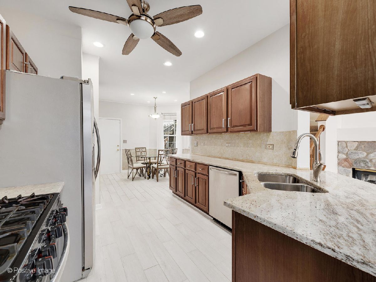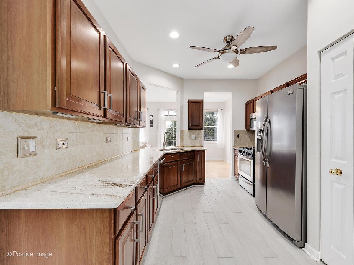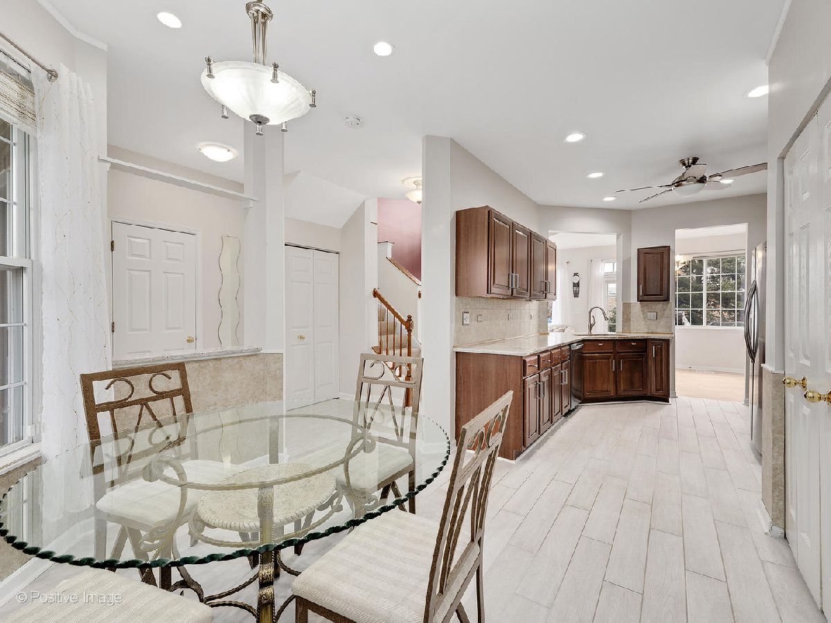 Beautiful home in Glendale Heights! Powder room and Guest Bathroom recently renovated. Kitchen with Stainless steel appliances, maple cabinets and stone countertop & backsplash. New recessed LED lights in kitchen and eating area. Hardwood floor in first floor living room. New tile in the kitchen and entry area. In-unit washer and dryer. Roof is about 2 years old. Exterior has been recently painted. Patio with amazing pond view. Minutes to Metra, shopping, restaurants, and schools. Attached one car garage.