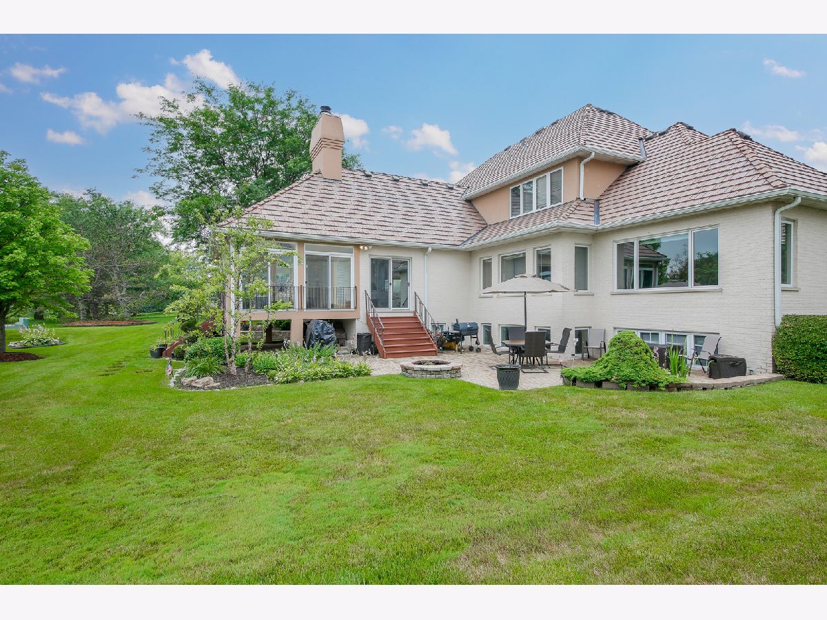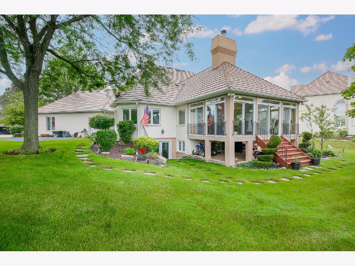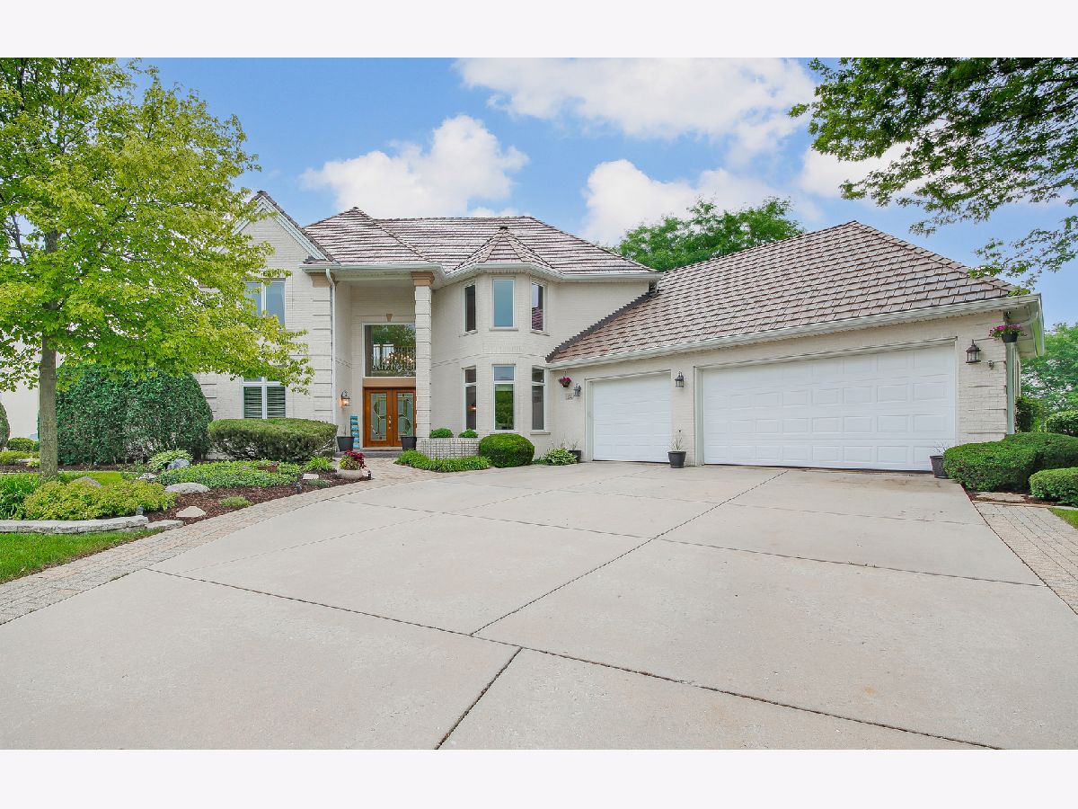 Custom all brick, 6 bedroom, 3 full and 1 half bathrooms estate home on a cul de sac in Ruffled Feathers private gated golf community with breathtaking views of the Pete Dye designed golf course. The moment you step through the newer custom front door into the two story foyer you are drawn to the panoramic views. Entertainers chef's eat- in kitchen with massive island, cooktop, granite countertops, ceramic tile flooring, great cabinet space, newer all stainless steel appliances, glass tiled backsplash, huge pantry, built-in desk space, large light filled eat-in area. Spacious family room with wet bar, tray ceiling, and gorgeous travertine gas fireplace. Double french doors lead to the bright sunroom flanked with floor to ceiling sliding doors & panoramic views of the golf course, tiled gas fireplace, & vaulted ceiling. Step through the double doors to the first floor owner's suite with tray ceiling, large custom walk-in closet, full ensuite bathroom with double vanities, walk-in shower, large jetted soaking tub, and water closet. Dining room, living room, half bath and laundry/mud room with new wood inspired ceramic tile and freshly painted (2021) complete the first floor. Oversized crown molding and 6 panel doors throughout. Freshly painted. The double staircase leads you upstairs to 4 spacious bedrooms all with great closet space and full bathroom with tons of counter space, double sinks, walk-in shower, & linen closet. Fully finished walkout English basement is massive with two recreation areas, full bar with tons of seating, wine refrigerator and mini refrigerator, new (July 2021) luxurious full bathroom with massive custom tiled walk-in shower, rain and full body sprayers, custom tiled flooring, and beautiful vanity. Exercise room, and possible 6th bedroom/office. 3 car garage with newer door (2015) & sports court. Fully landscaped premium lot overlooks the tee off box on the 6th hole. Enjoy entertaining outside on the spacious brick paver patio with brick fire pit. Newer roof with 50 year warranty (2018). 2 furnaces (2018/2019), 2 A/C units (2019). 24 hour guard house. Close to shopping, restaurants, the largest outdoor adventure park The Forge, Lemont blue ribbon schools, parks, restaurants, downtown Lemont & minutes to 355 expressway. This is a must see luxury home!