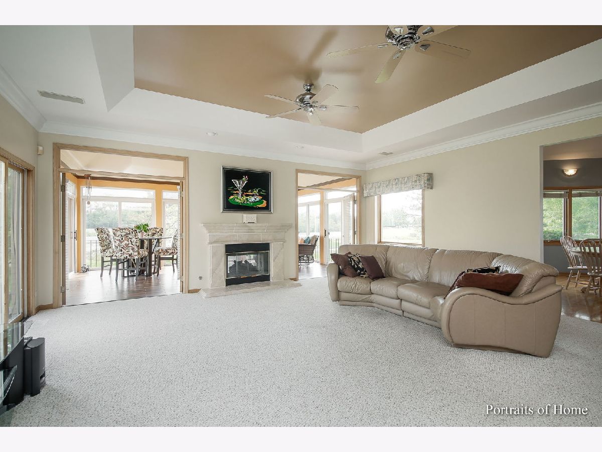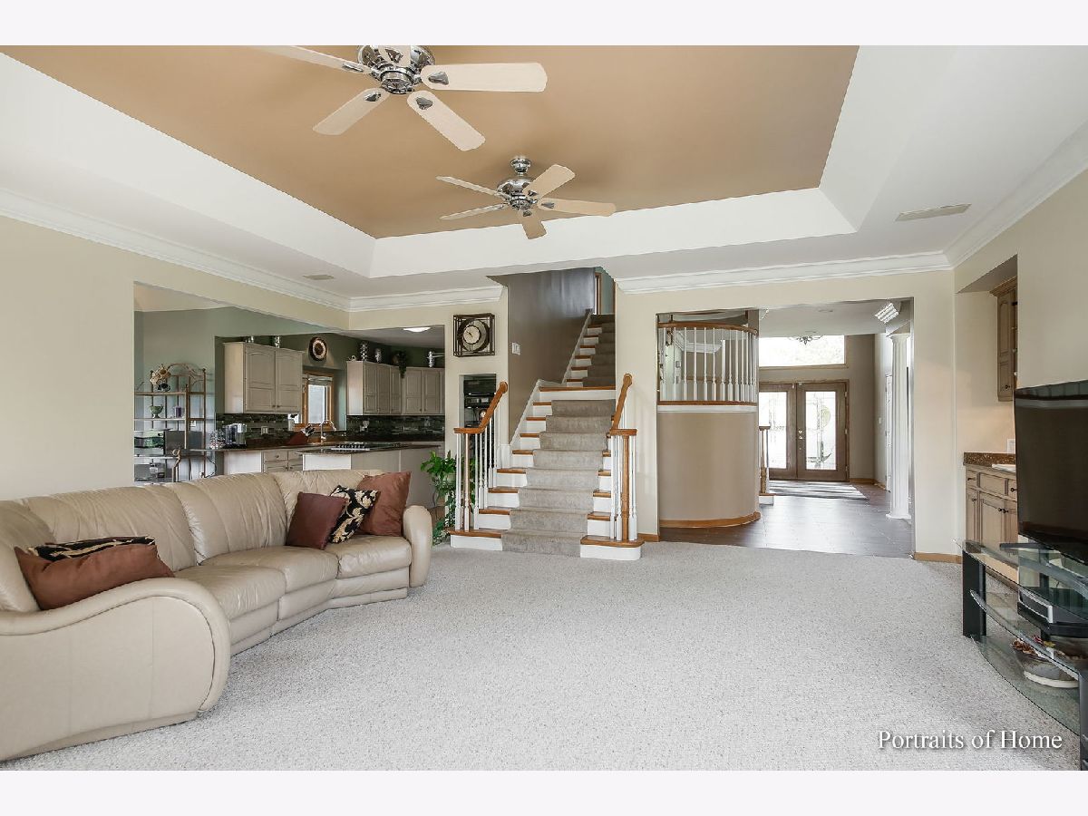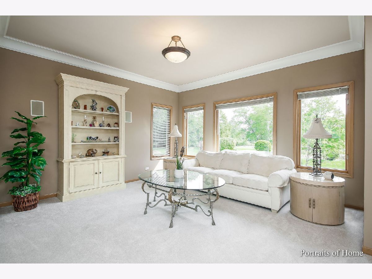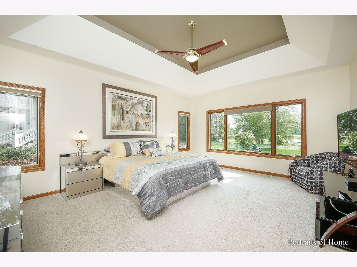 Custom all brick, 6 bedroom, 3 full and 1 half bathrooms estate home on a cul de sac in Ruffled Feathers private gated golf community with breathtaking views of the Pete Dye designed golf course. The moment you step through the newer custom front door into the two story foyer you are drawn to the panoramic views. Entertainers chef's eat- in kitchen with massive island, cooktop, granite countertops, ceramic tile flooring, great cabinet space, newer all stainless steel appliances, glass tiled backsplash, huge pantry, built-in desk space, large light filled eat-in area. Spacious family room with wet bar, tray ceiling, and gorgeous travertine gas fireplace. Double french doors lead to the bright sunroom flanked with floor to ceiling sliding doors & panoramic views of the golf course, tiled gas fireplace, & vaulted ceiling. Step through the double doors to the first floor owner's suite with tray ceiling, large custom walk-in closet, full ensuite bathroom with double vanities, walk-in shower, large jetted soaking tub, and water closet. Dining room, living room, half bath and laundry/mud room with new wood inspired ceramic tile and freshly painted (2021) complete the first floor. Oversized crown molding and 6 panel doors throughout. Freshly painted. The double staircase leads you upstairs to 4 spacious bedrooms all with great closet space and full bathroom with tons of counter space, double sinks, walk-in shower, & linen closet. Fully finished walkout English basement is massive with two recreation areas, full bar with tons of seating, wine refrigerator and mini refrigerator, new (July 2021) luxurious full bathroom with massive custom tiled walk-in shower, rain and full body sprayers, custom tiled flooring, and beautiful vanity. Exercise room, and possible 6th bedroom/office. 3 car garage with newer door (2015) & sports court. Fully landscaped premium lot overlooks the tee off box on the 6th hole. Enjoy entertaining outside on the spacious brick paver patio with brick fire pit. Newer roof with 50 year warranty (2018). 2 furnaces (2018/2019), 2 A/C units (2019). 24 hour guard house. Close to shopping, restaurants, the largest outdoor adventure park The Forge, Lemont blue ribbon schools, parks, restaurants, downtown Lemont & minutes to 355 expressway. This is a must see luxury home!
