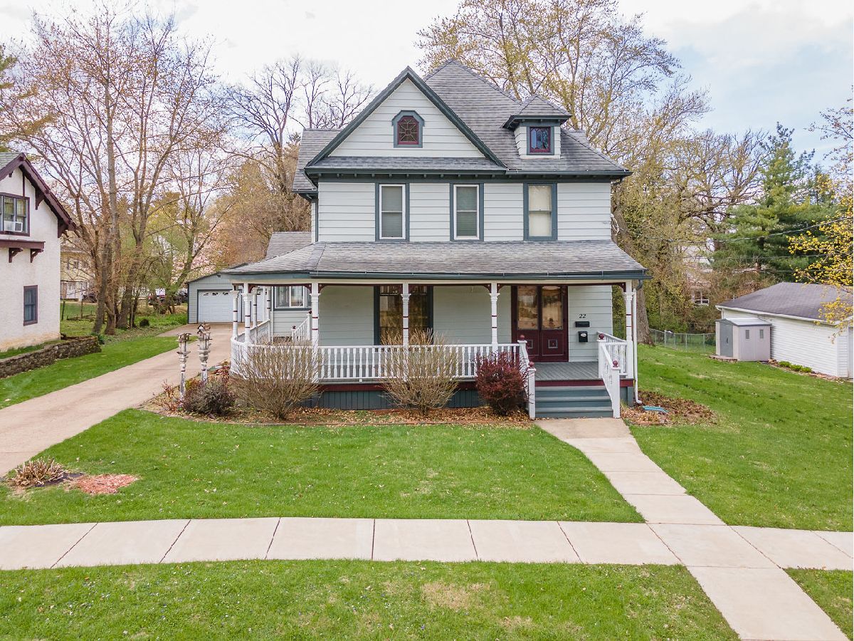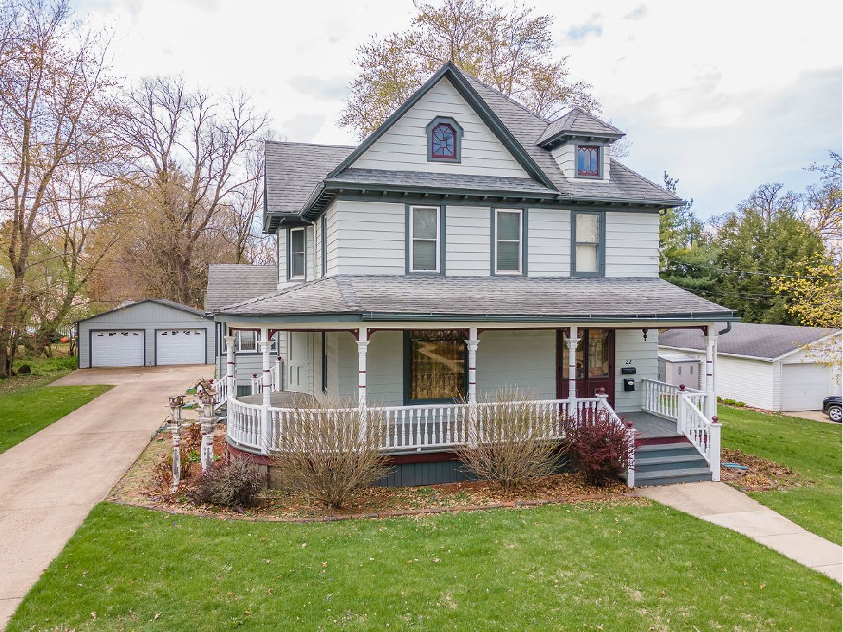 This beautiful 2 story home with wrapped around porch has 4 Bedrooms, 2 Full bath and main floor laundry room. Large Living room, family room , dining room and kitchen. 3 sets of pocket doors. Beautiful wood work through out the house. Plenty of closets . Furnace 2012 - Whole house fan, central air, 2 stall garage. Nice back yard.